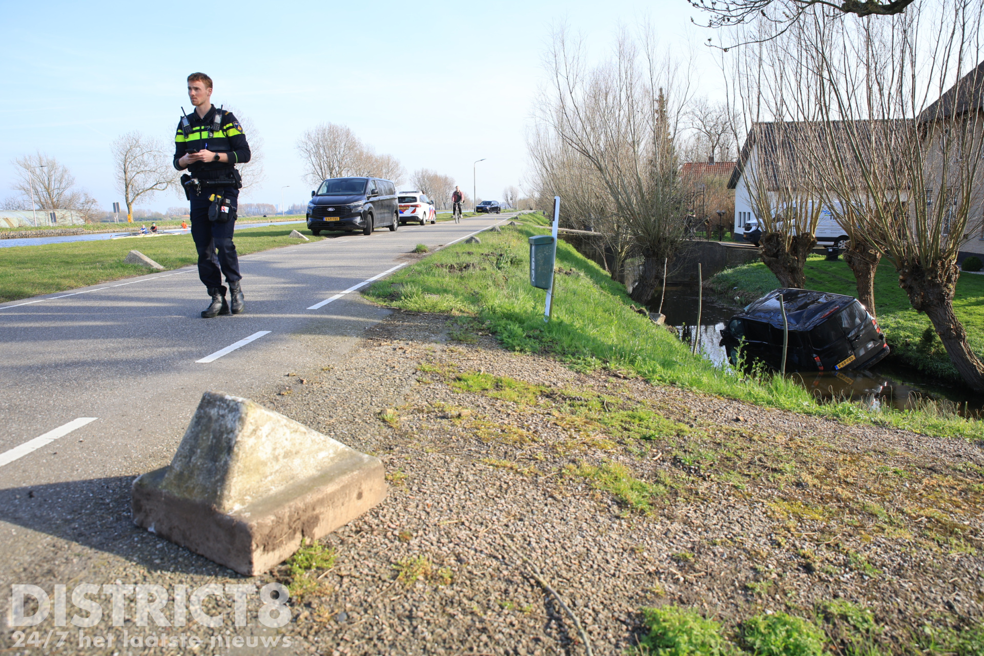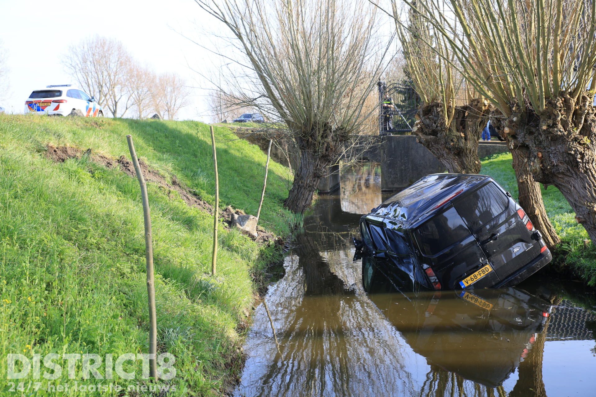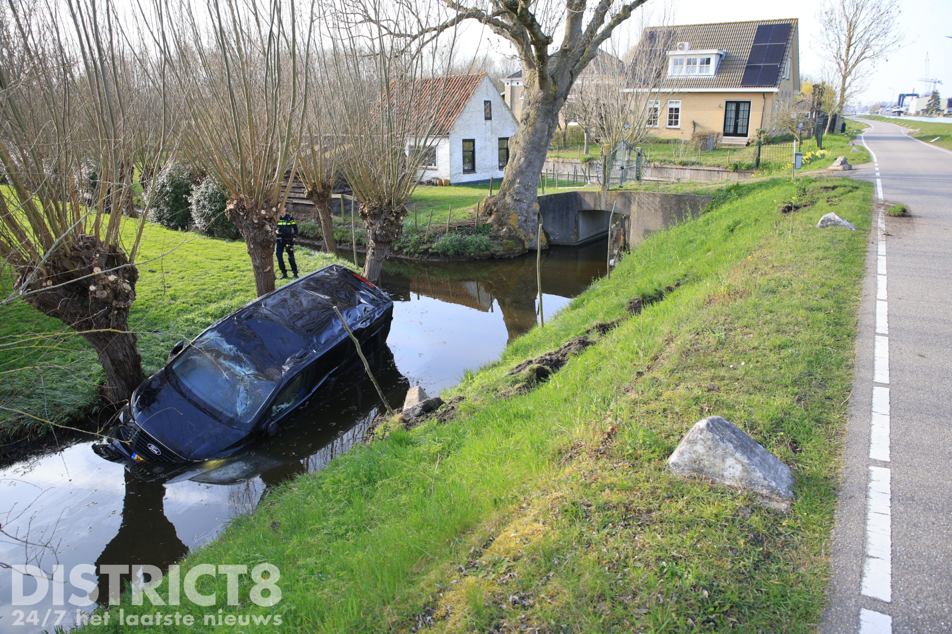 Delft – De politie kreeg maandagmiddag een melding van een voertuig te water langs de Schieweg tussen Delft en Rotterdam. Ter plaatse bleek dat een bestuurder met zijn busje twee schrikblokken had geraakt en vervolgens met het voertuig in het water was beland.