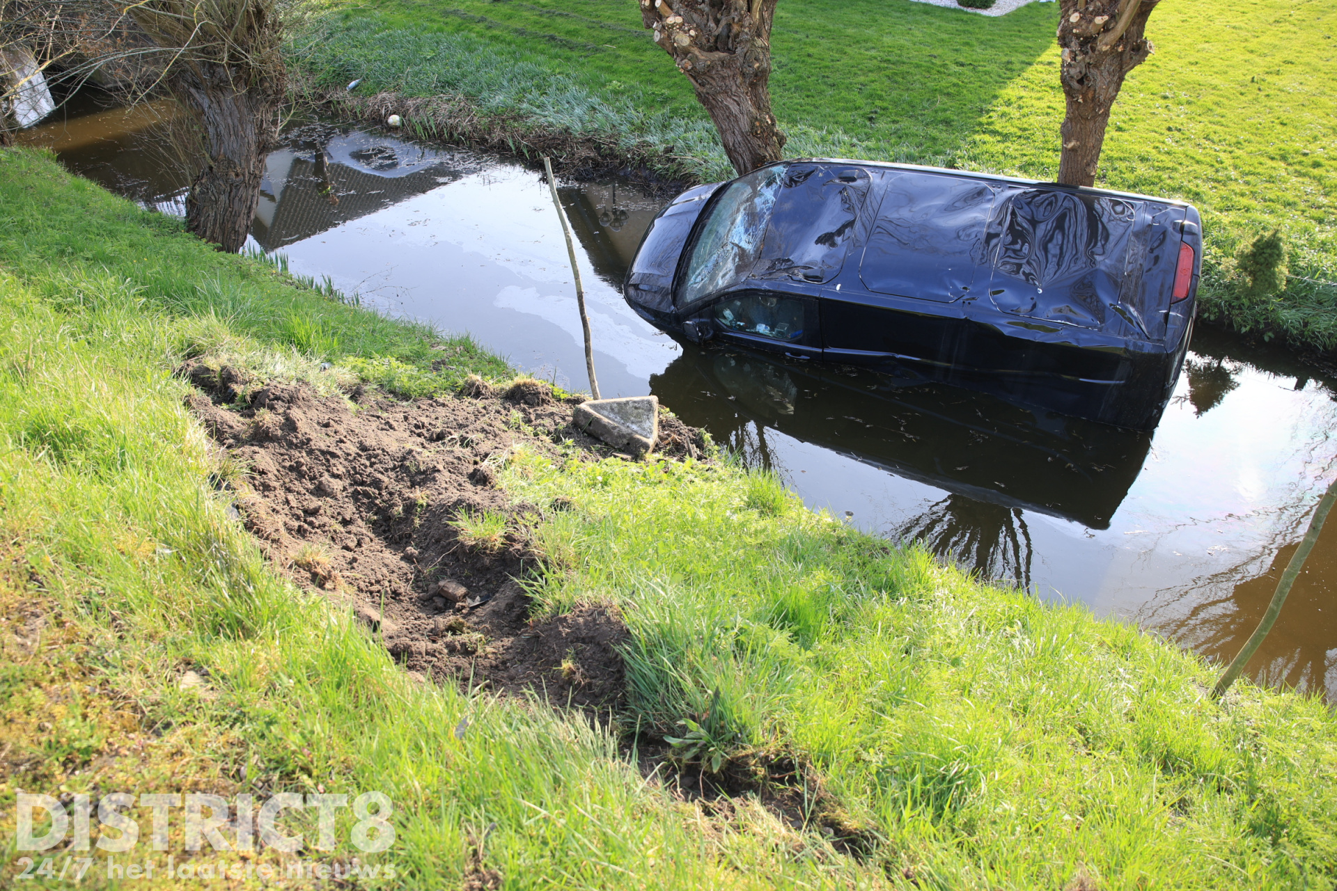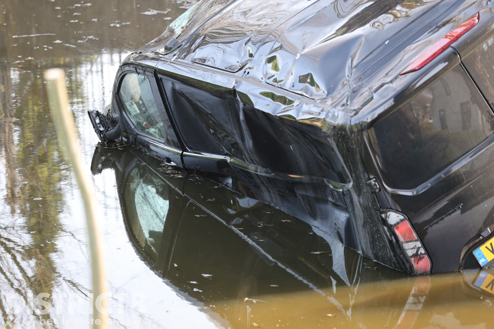 Een bergingsbedrijf zal het busje uit het water takelen.