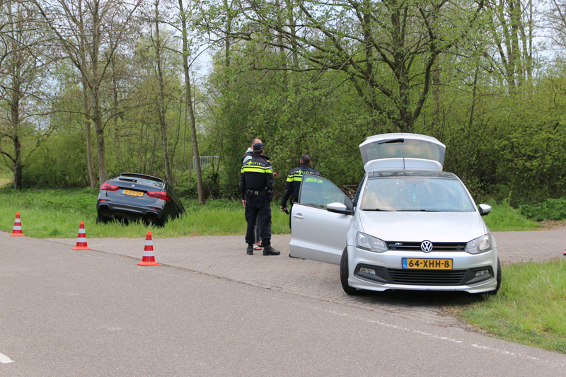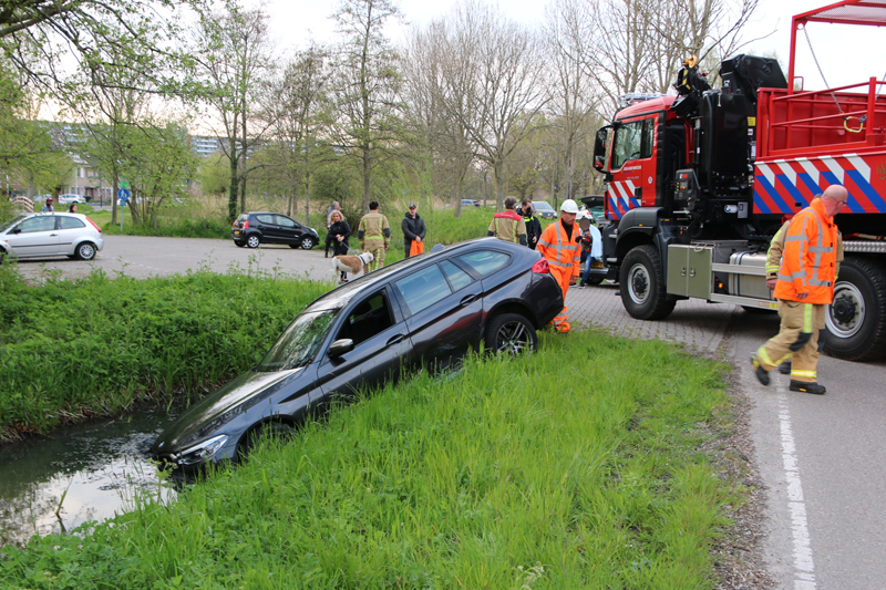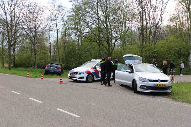 Een berger zal op een later moment ter plaatse komen om het voertuig uit de sloot te halen.