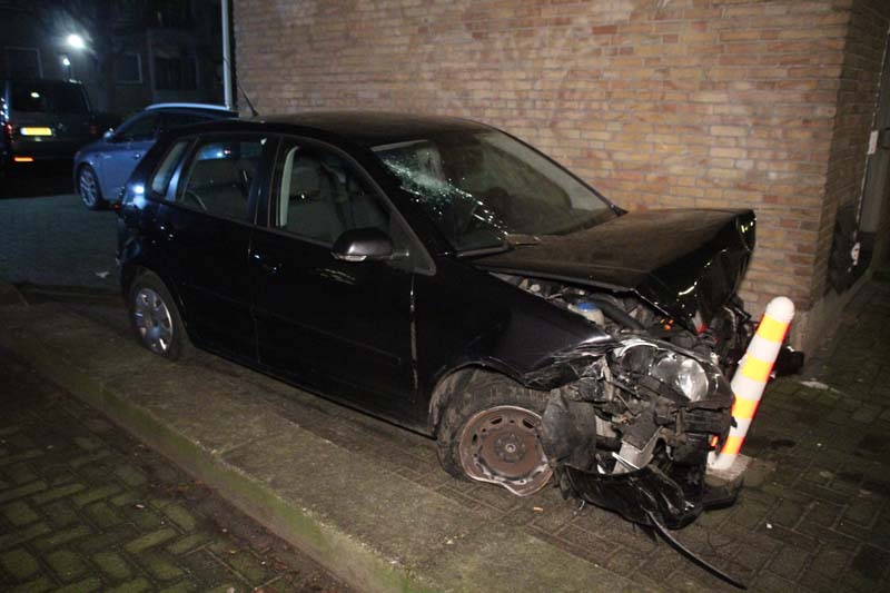 Nadat de auto in de steeg tot stilstand kwam sloeg de bestuurder op de vlucht. Of hij inmiddels is aangehouden is nog onbekend.