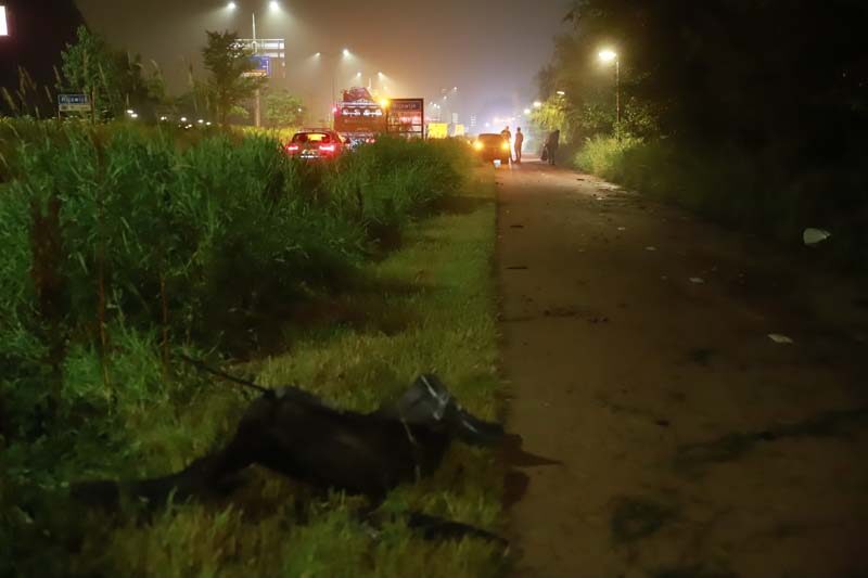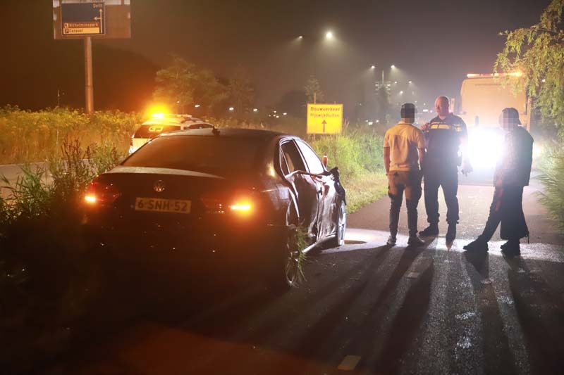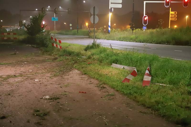 Na het uitwijken reed de automobilist door een geleiderail, in de volksmond ook wel een vangrail genoemd. Hierna raakte hij een lantaarnpaal, miste op een haar na een boom en kwam vervolgens enkele tientallen meters verder op het fietspad tot stilstand. De ravage was groot en overal lagen brokstukken.