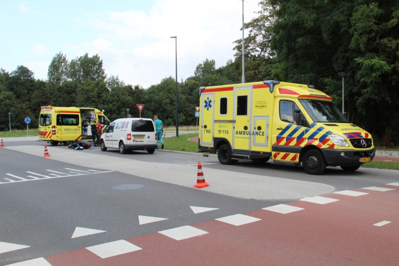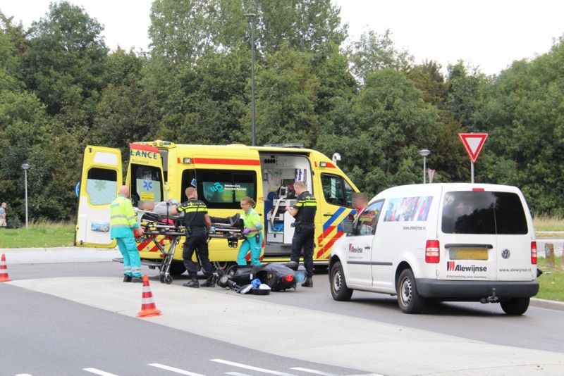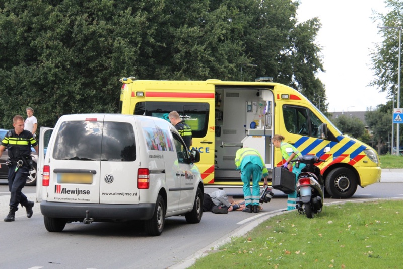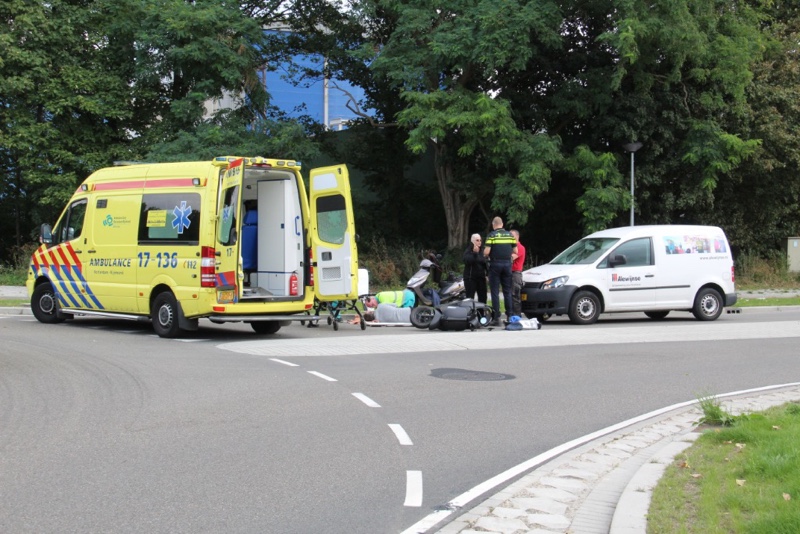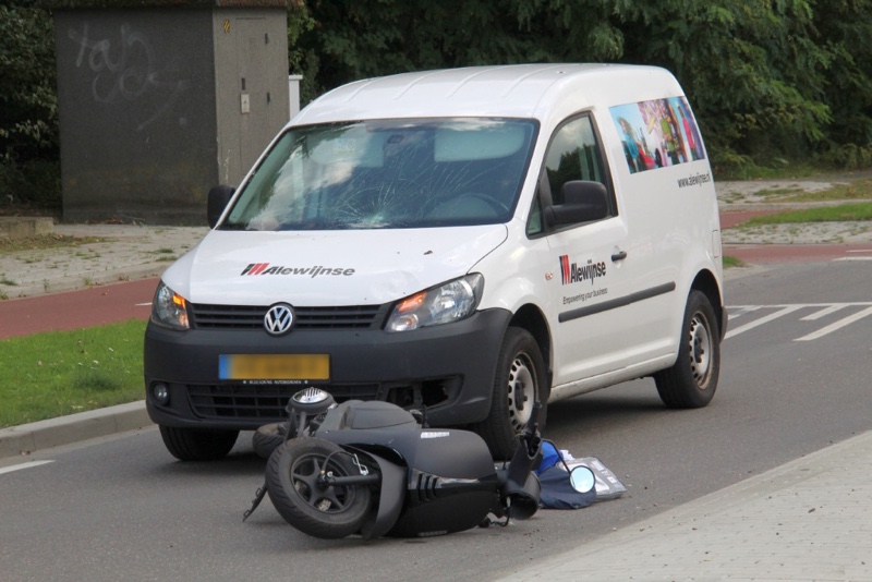 Schiedam – Na een aanrijding met een auto is donderdagmiddag een bestuurder van een snorscooter gewond geraakt op de Admiraal de Ruyterstraat.