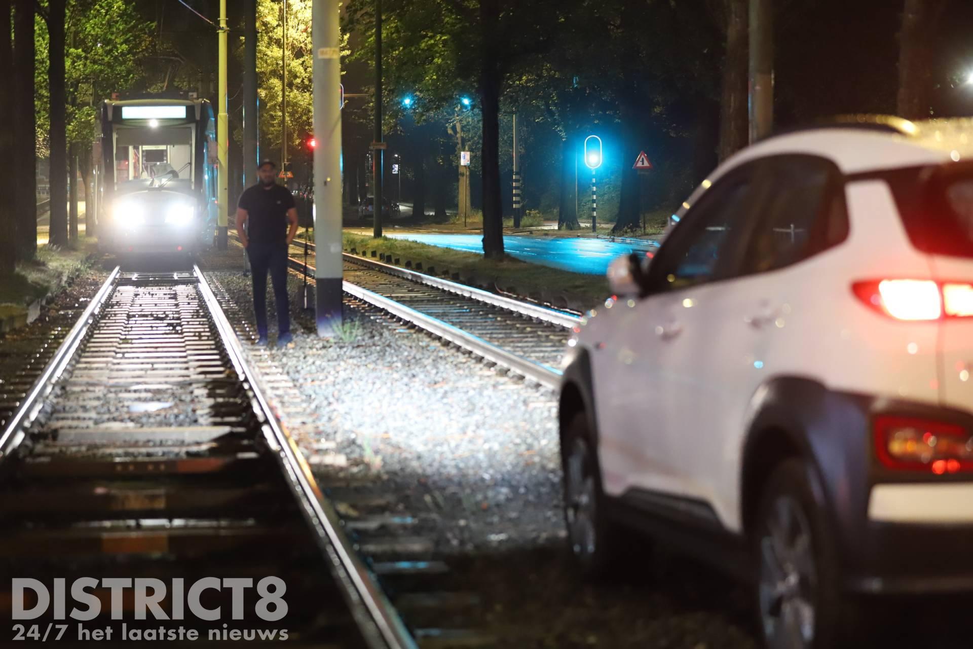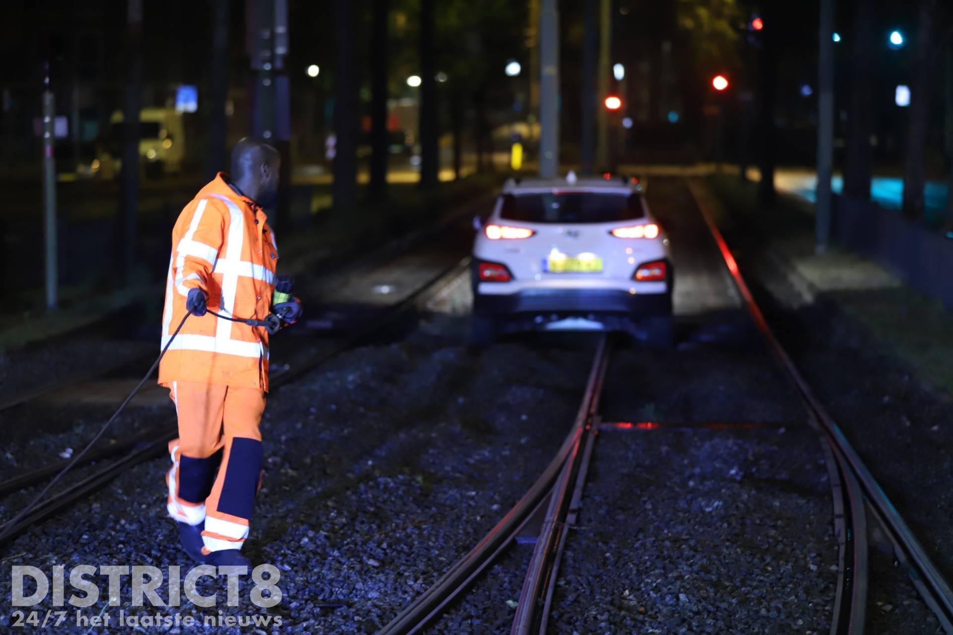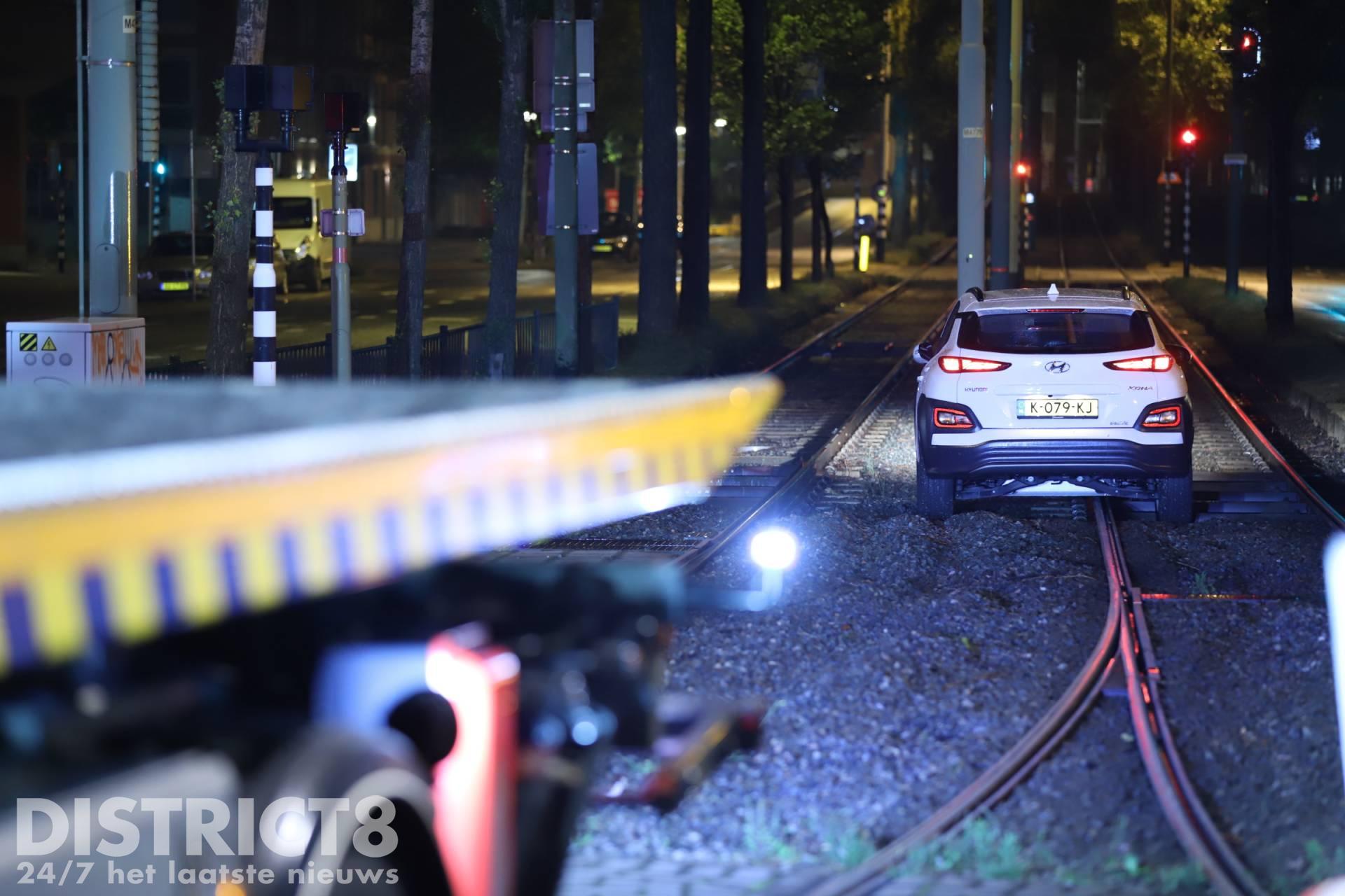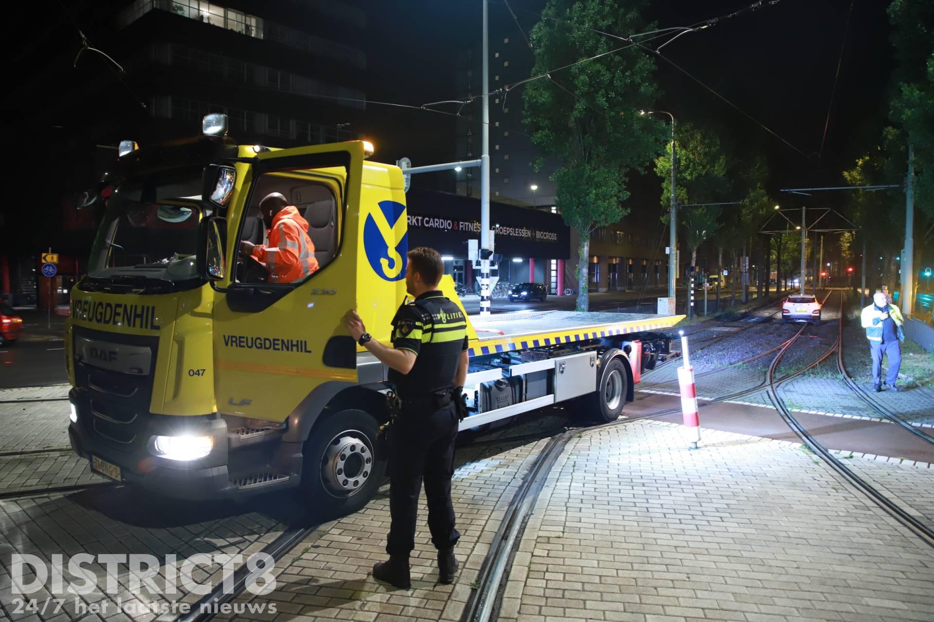Den Haag – Op de Noord-West Buitensingel in Den Haag is in de nacht van zaterdag 25 op zondag 26 juni een auto vast komen te staan op de tramrails.