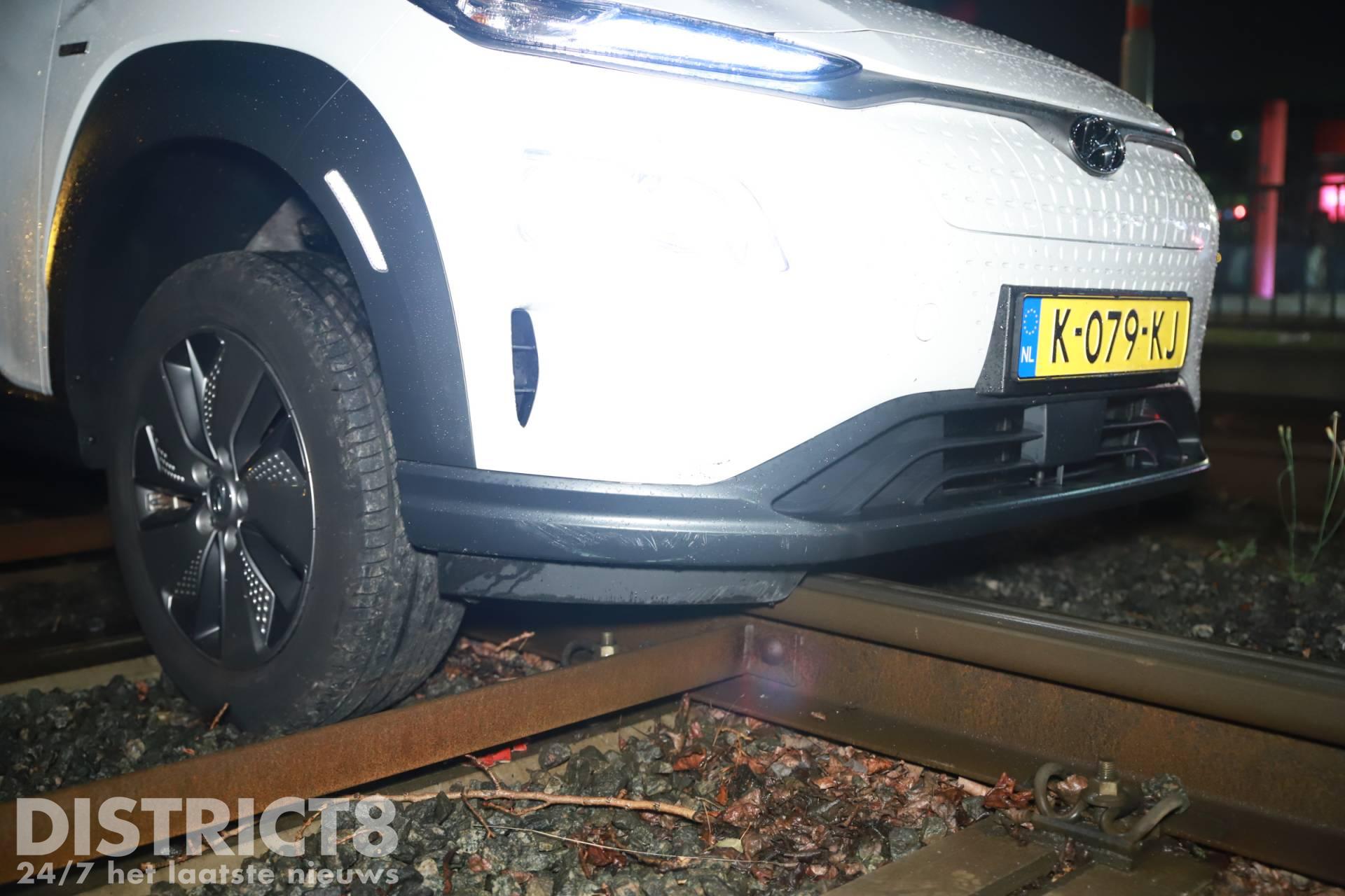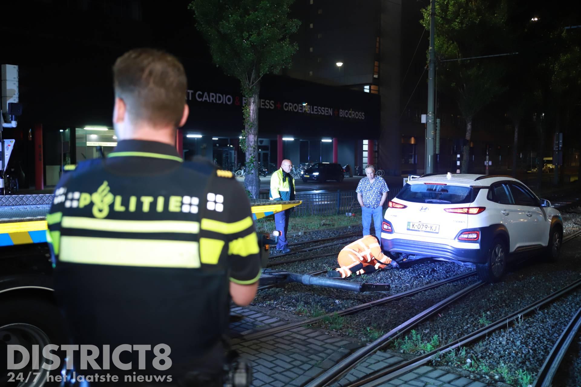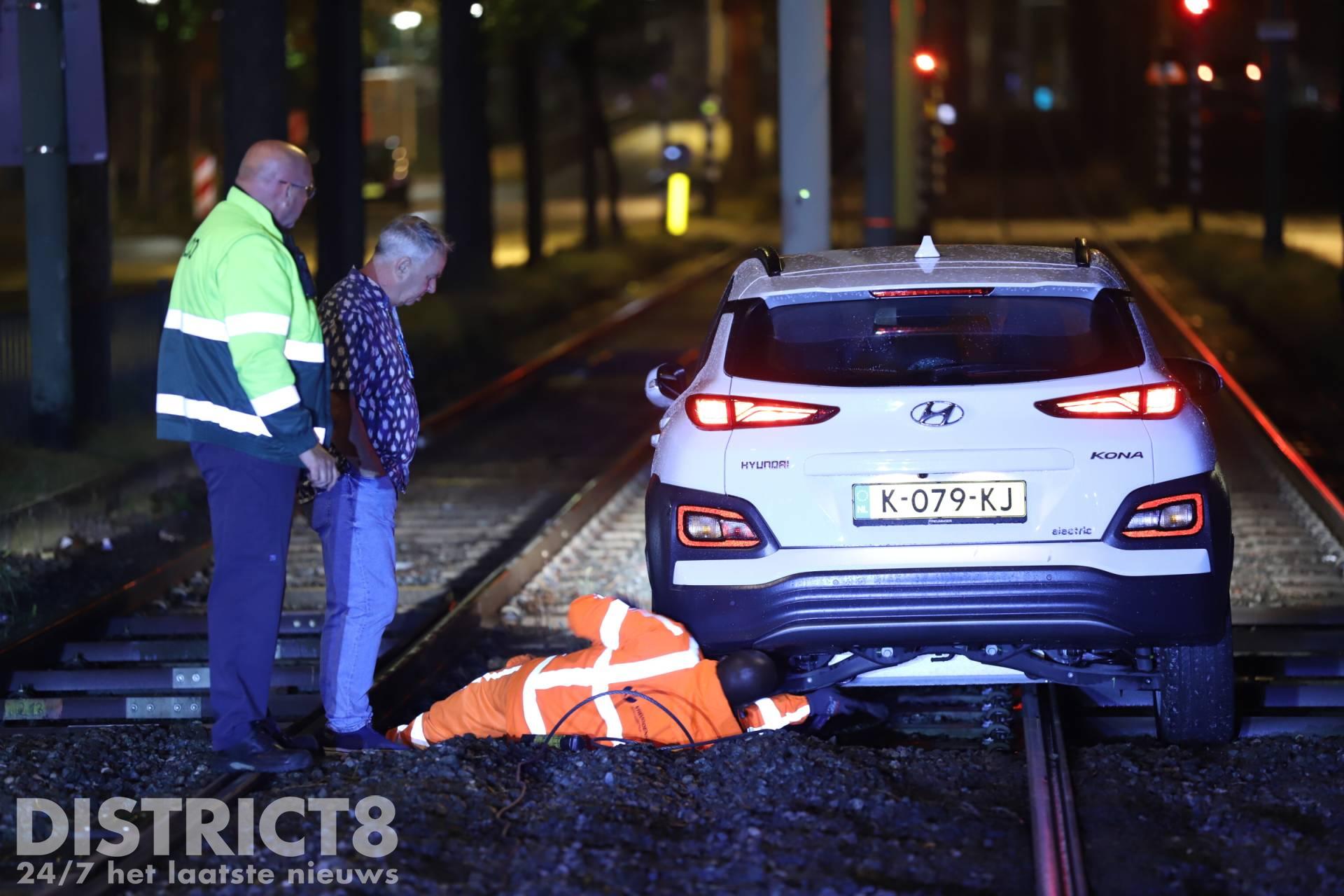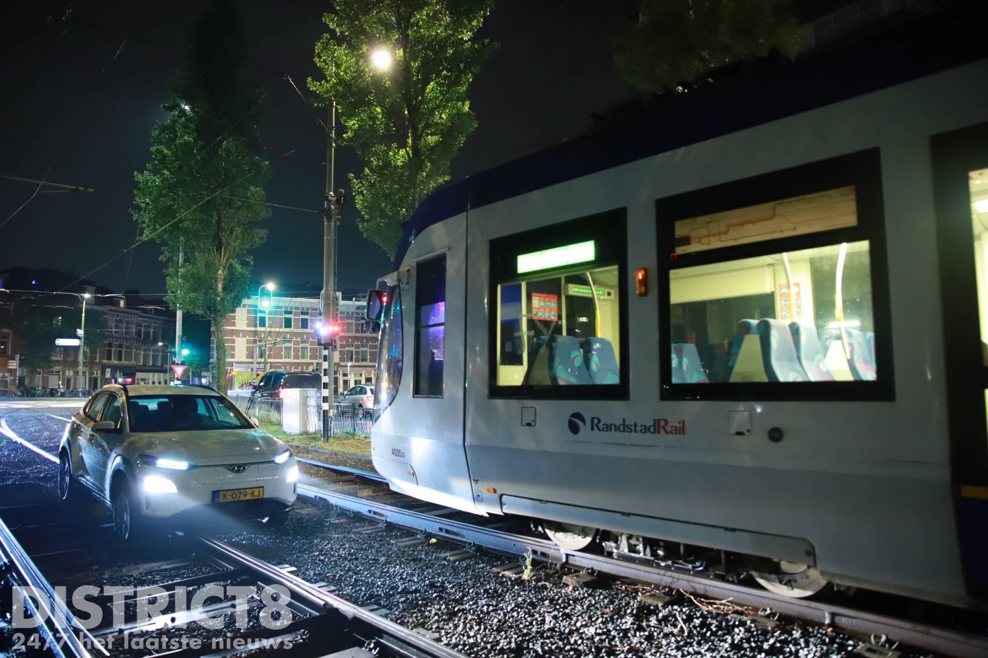 Den Haag – Op de Noord-West Buitensingel in Den Haag is in de nacht van zaterdag 25 op zondag 26 juni een auto vast komen te staan op de tramrails.