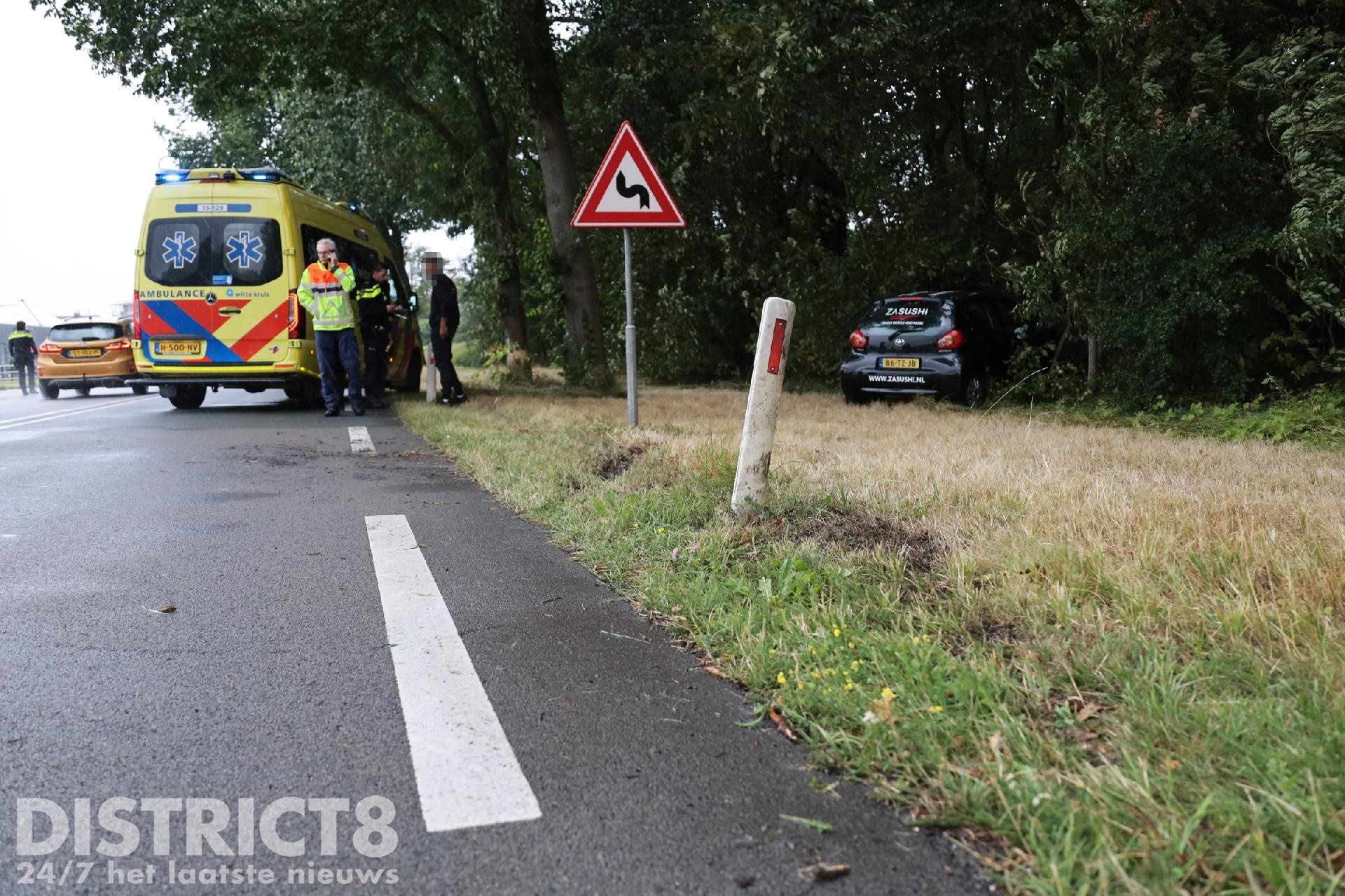 ‘s-Gravenzande – Op de N467 – Naaldwijkseweg is zaterdagavond door nog onbekende oorzaak een auto van een Sushi-bedrijf van de weg geraakt.