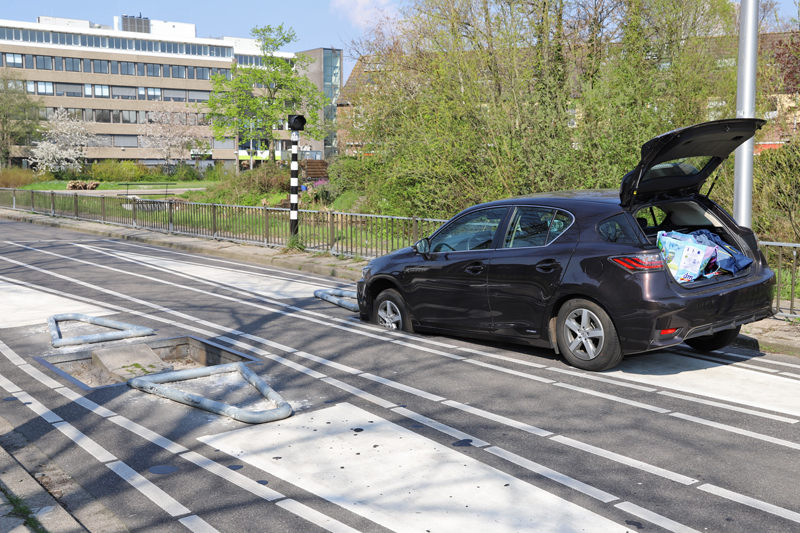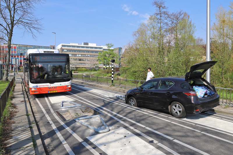 Delft – Zondagmiddag 7 april heeft een bestuurder van een voertuig zichzelf vastgereden in een bussluis aan de Kalfjeslaan in Delft.