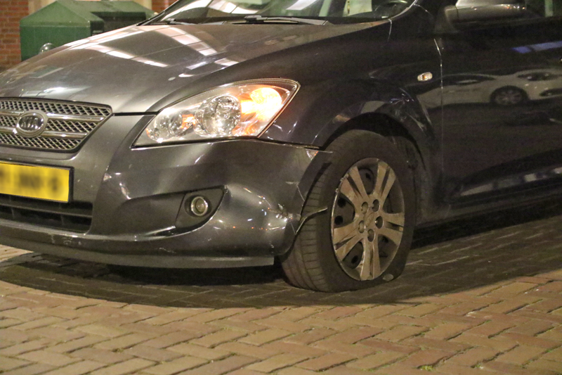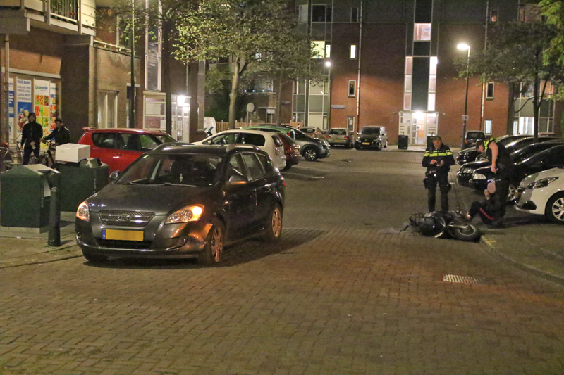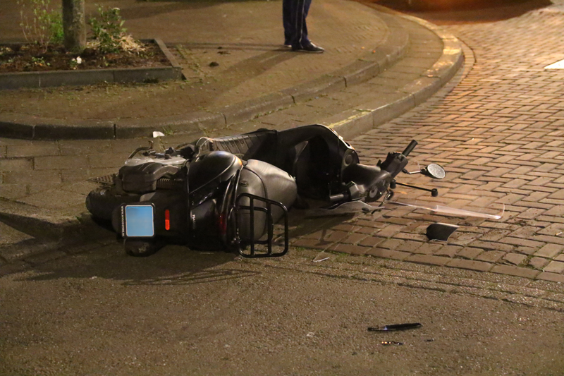 De scooter raakte flink beschadigd. Ook de auto liep schade op bij de aanrijding.