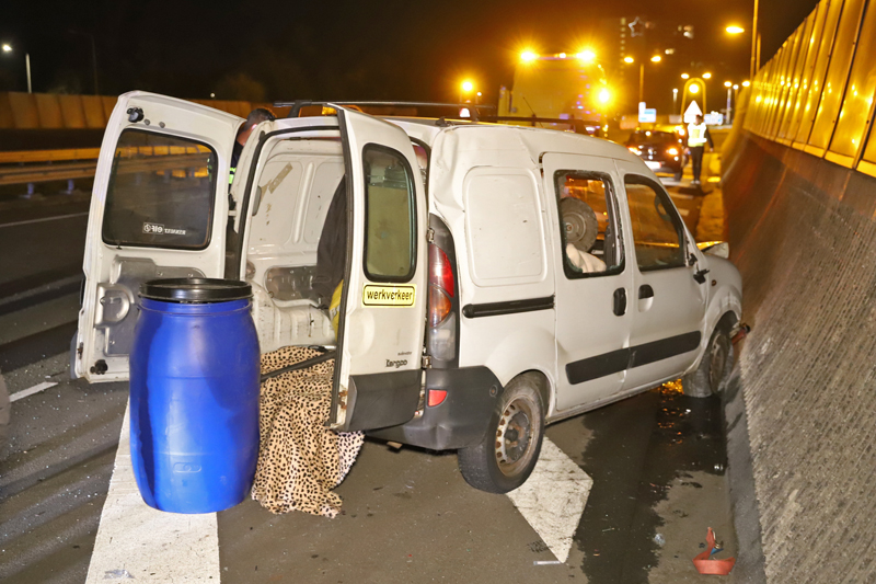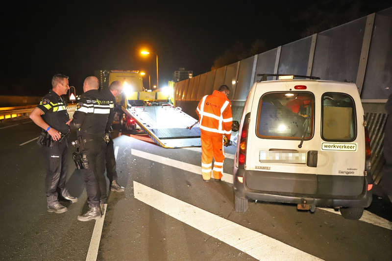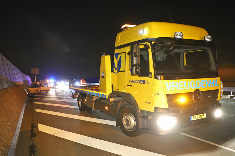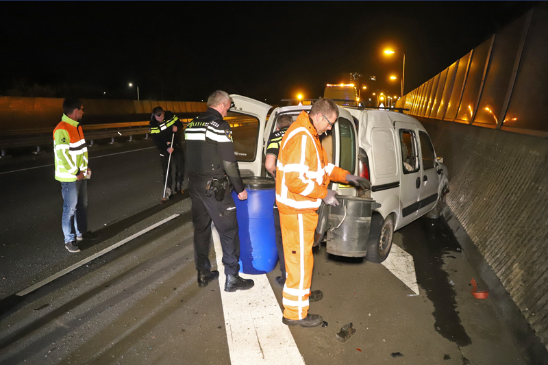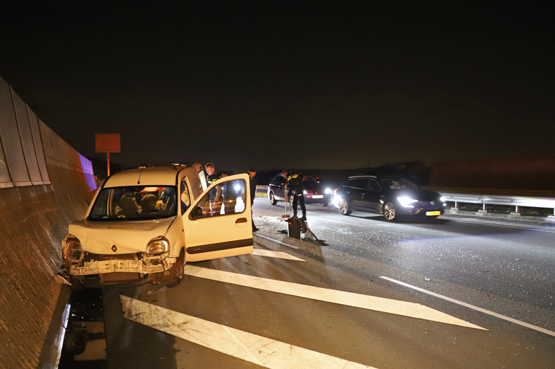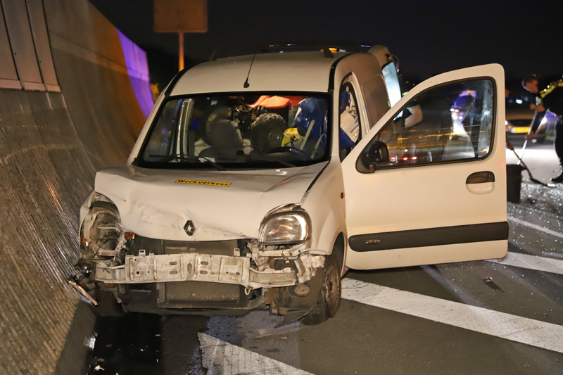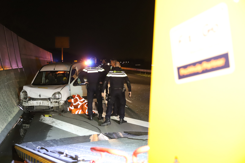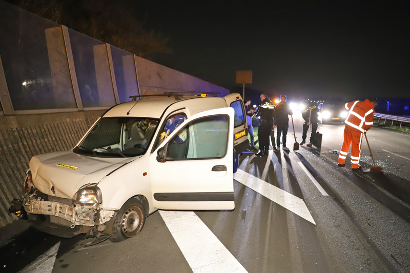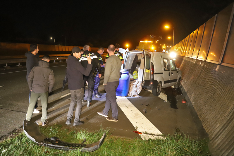De man knalde eerst op de vangrail waarna deze over de 2 rijbanen schoot en tegen een betonnen geluidswal tot stilstand kwam. Automobilisten die achter het busje reden stopte meteen en schoten de man te hulp. Deze bleek niet gewond te zijn geraakt bij het ongeval.