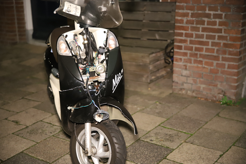 Zowel de scooter als de geparkeerde auto raakten beschadigd.