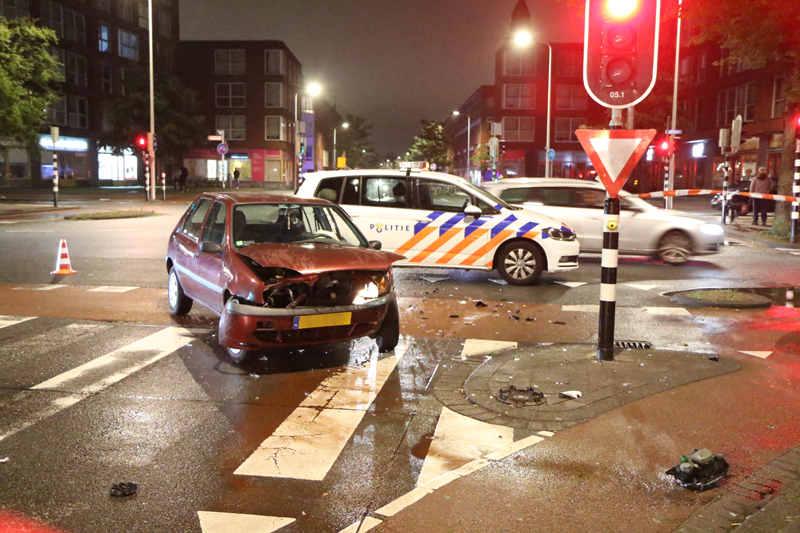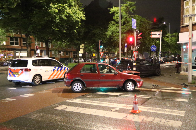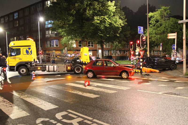 Op de kruising met De La Reyweg reed één van de bestuurders door rood. Dit eindigde in een flinke knal. Een auto kwam tegen een paal tot stilstand.