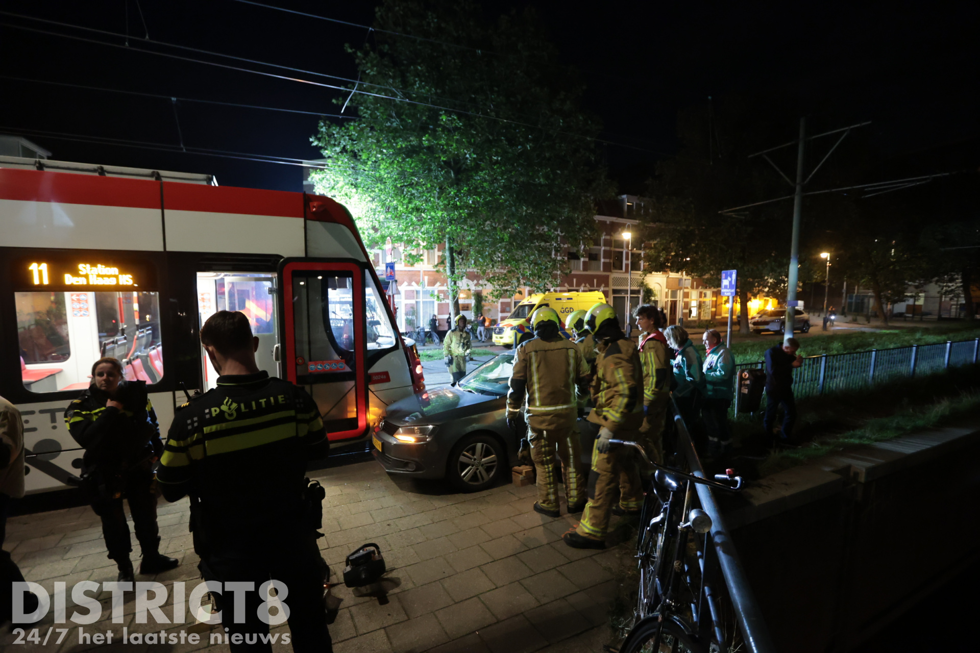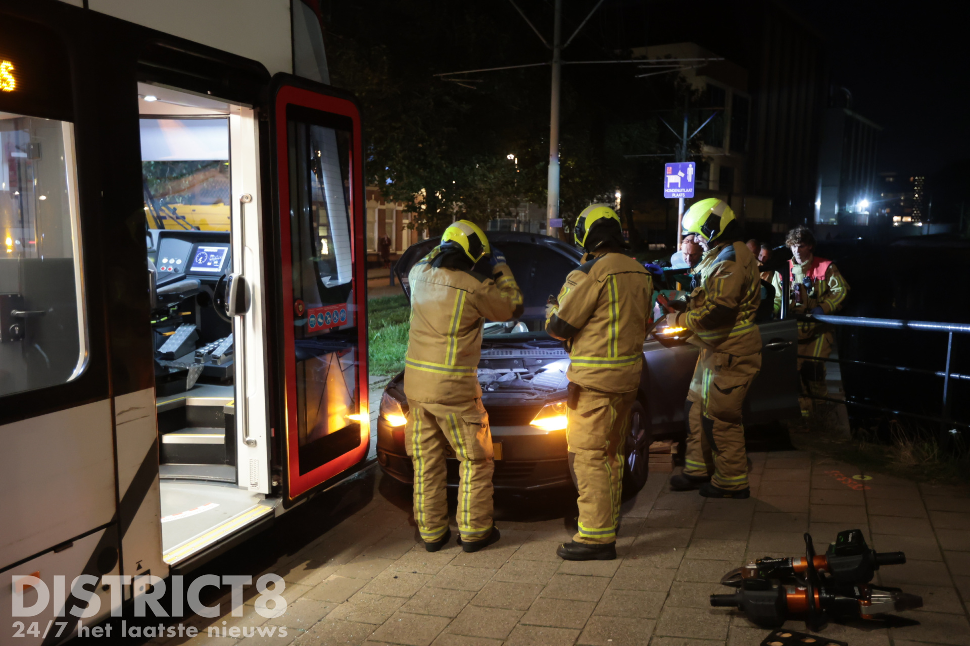 Den Haag – Op de Conradkade kruising Newtonstraat in Den Haag is zondagavond 29 september een bestuurster gewond geraakt nadat zij met haar auto in botsing kwam met een tram.