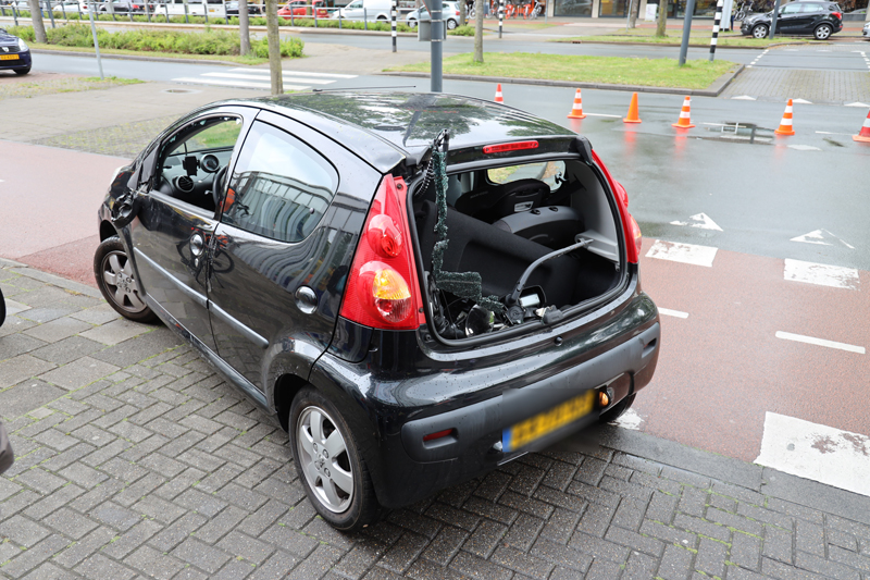 Een berger heeft de auto even later weer op vier wielen gezet, de schade aan de auto is enorm. Hoe de auto op z’n kant terecht is gekomen is niet bekend.