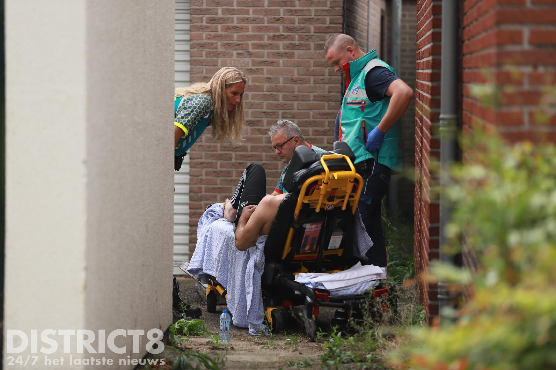 De gewonde bewoner is na onderzoek door het ambulancepersoneel overgebracht naar het ziekenhuis. De gealarmeerde traumahelikopter kon na enkele rondjes boven het incident weer retour.