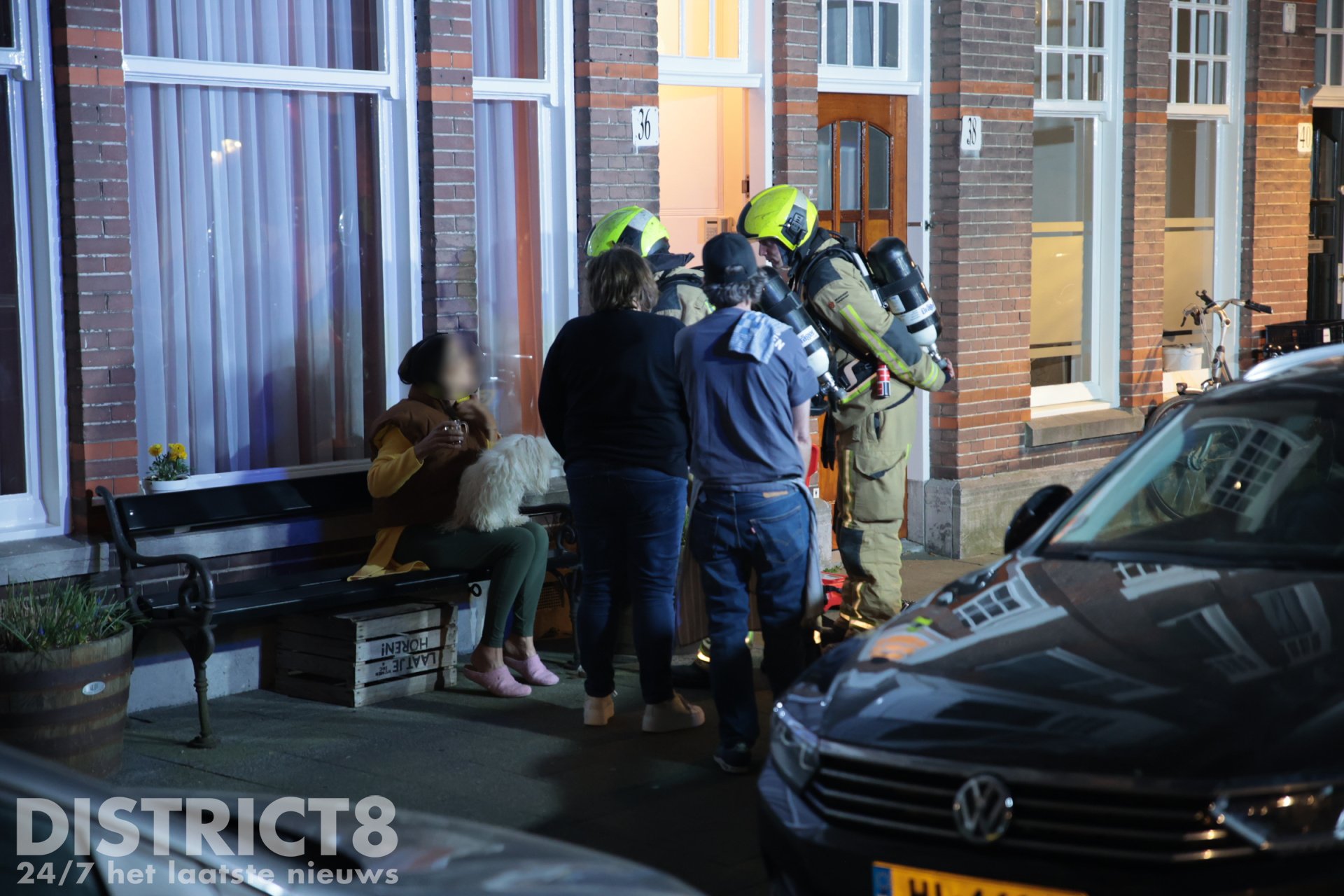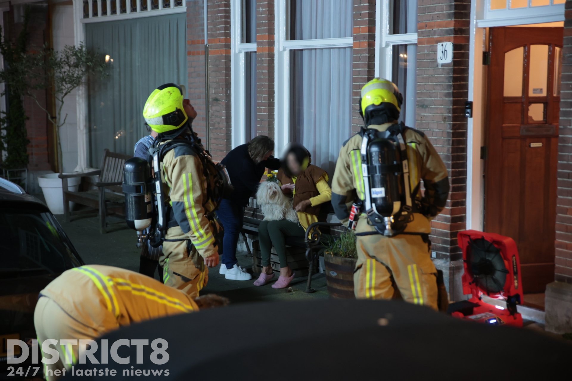 De bewoner en haar hondje stonden tijdelijk op straat. De straat was enige tijd geblokkeerd vanwege de hulpverlening.