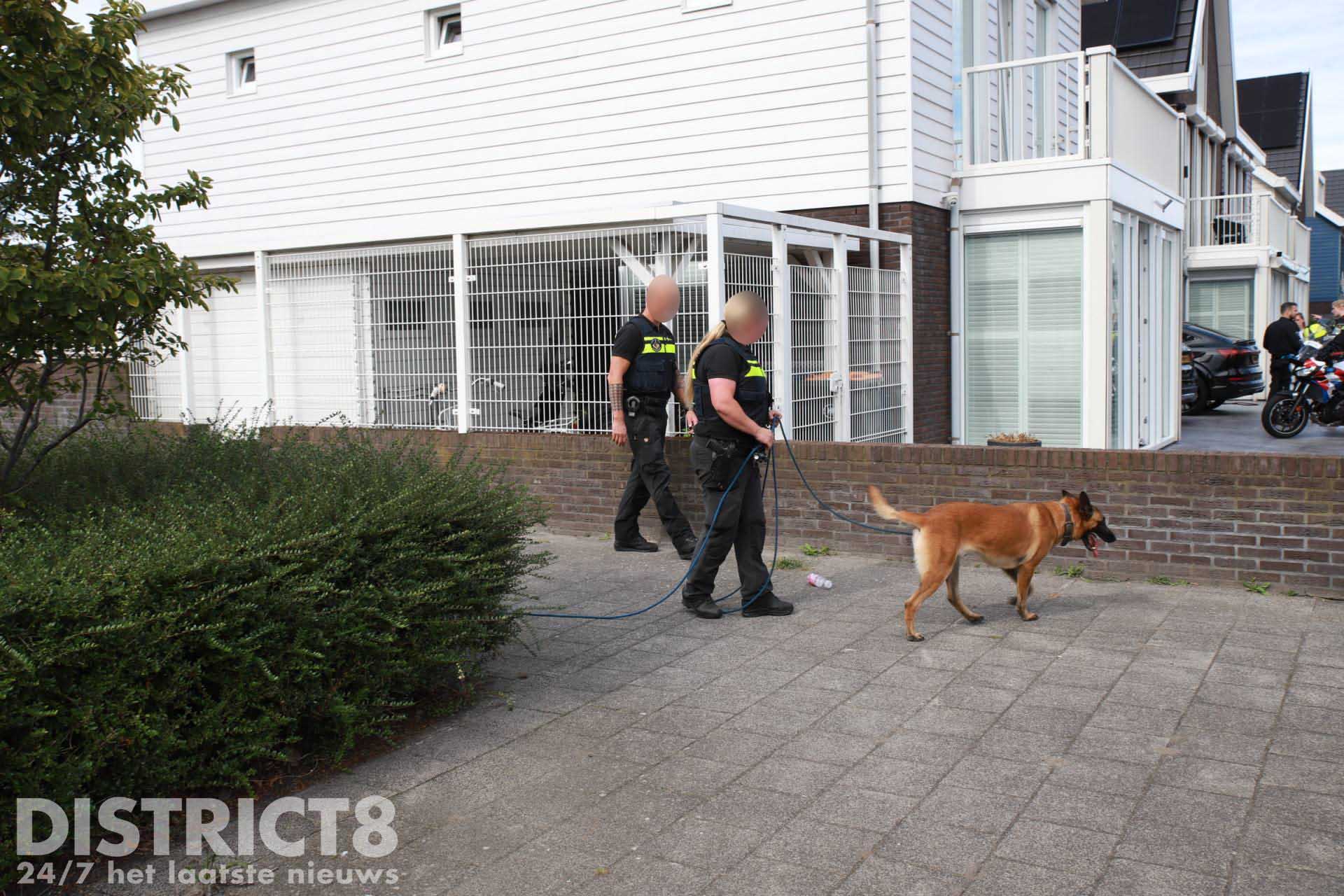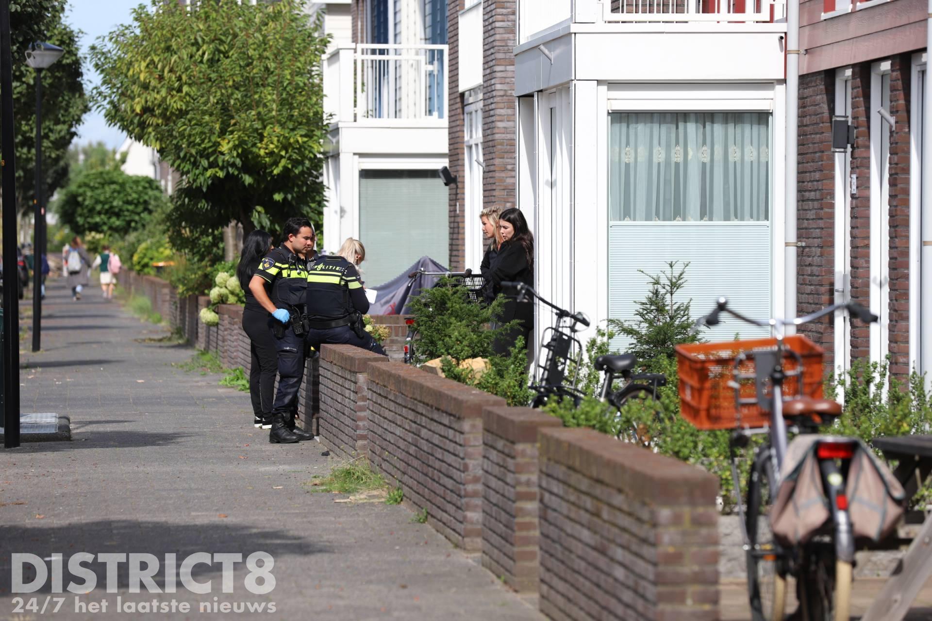 Een speurhondengeleider van de politie heeft met haar hond de omgeving afgezocht. De Forensische Opsporing (FO) gaat samen met de recherche onderzoek doen op het plaats delict.
