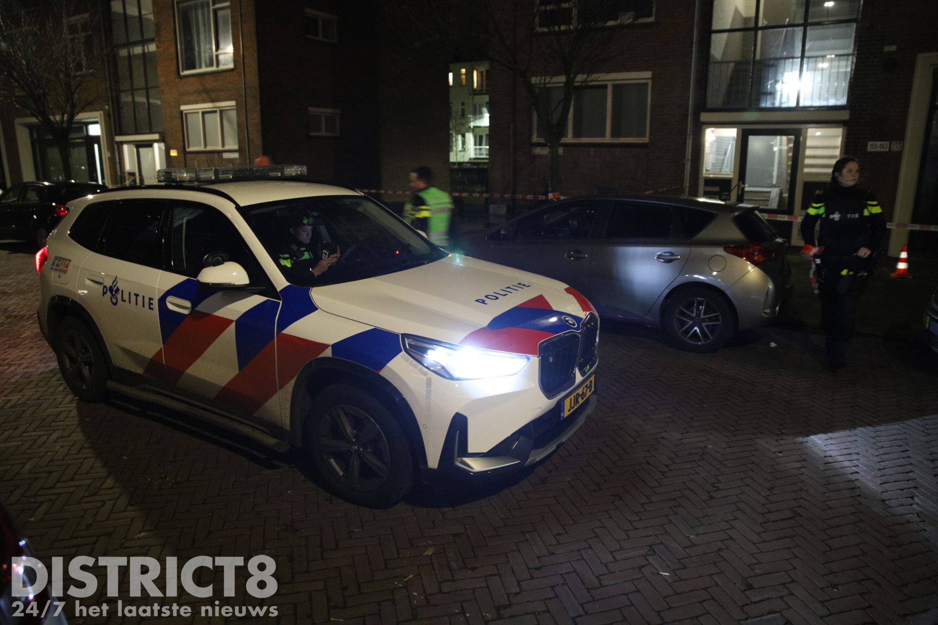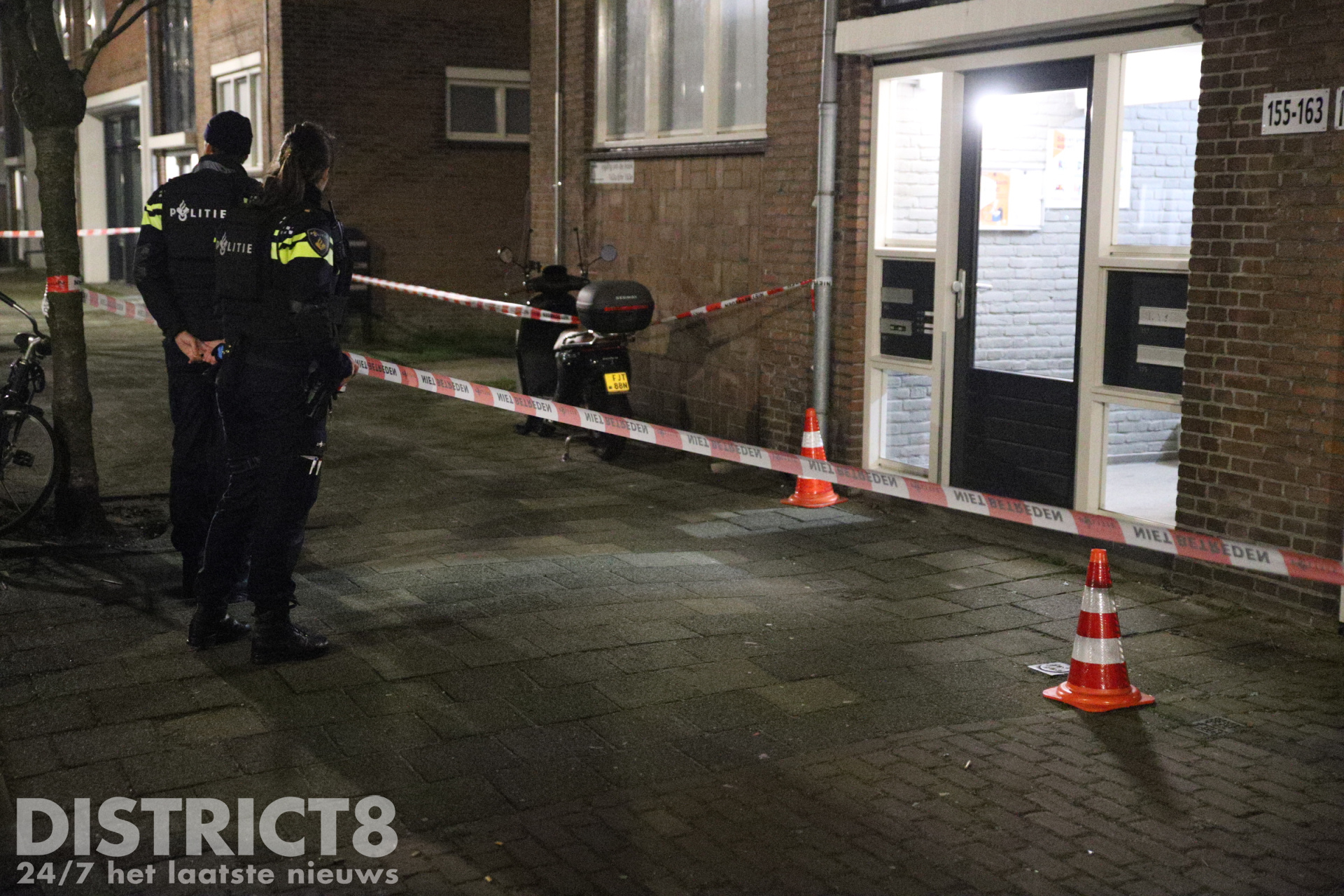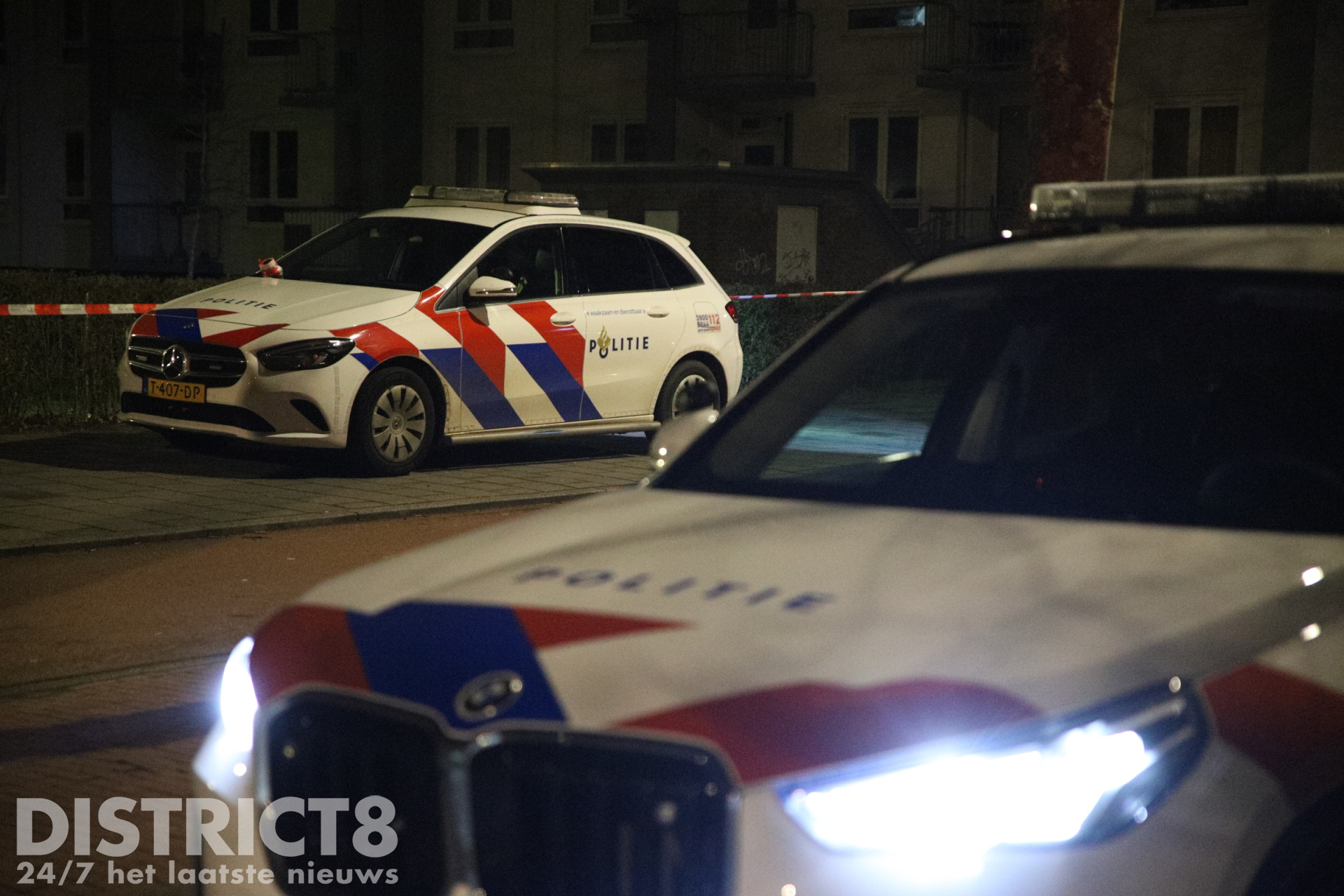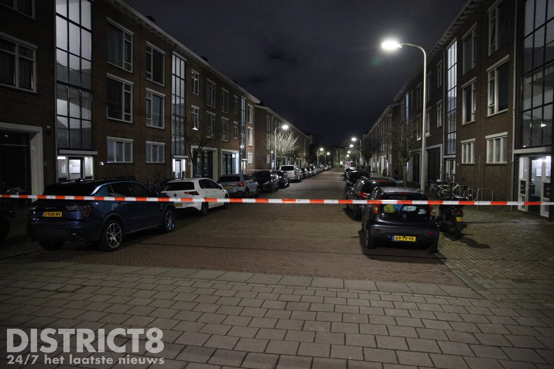 Na het incident is de verdachte rennend gevlucht in de richting van de Erasmusweg. De politie heeft verschillende delen van de straat afgezet met lint en deze ingericht als Plaats Delict. Voor een portiek staan twee pylonnen met daaronder kogelhulzen.