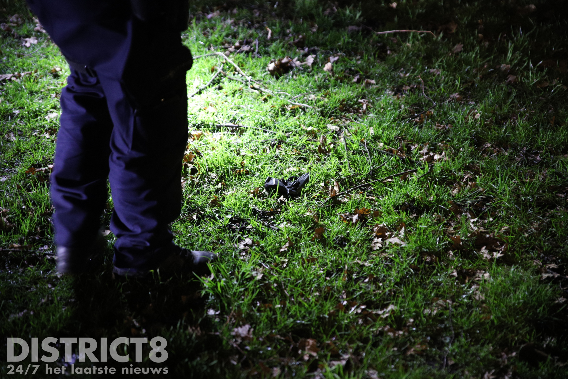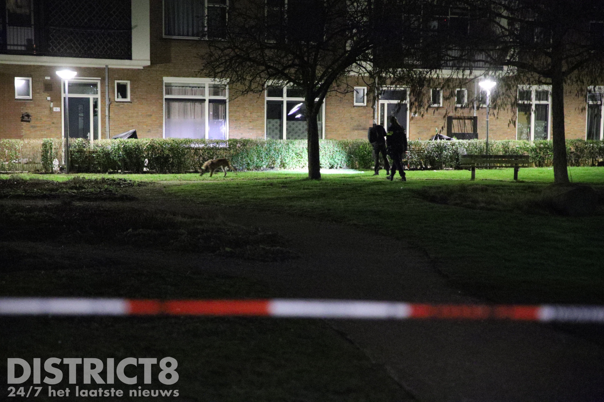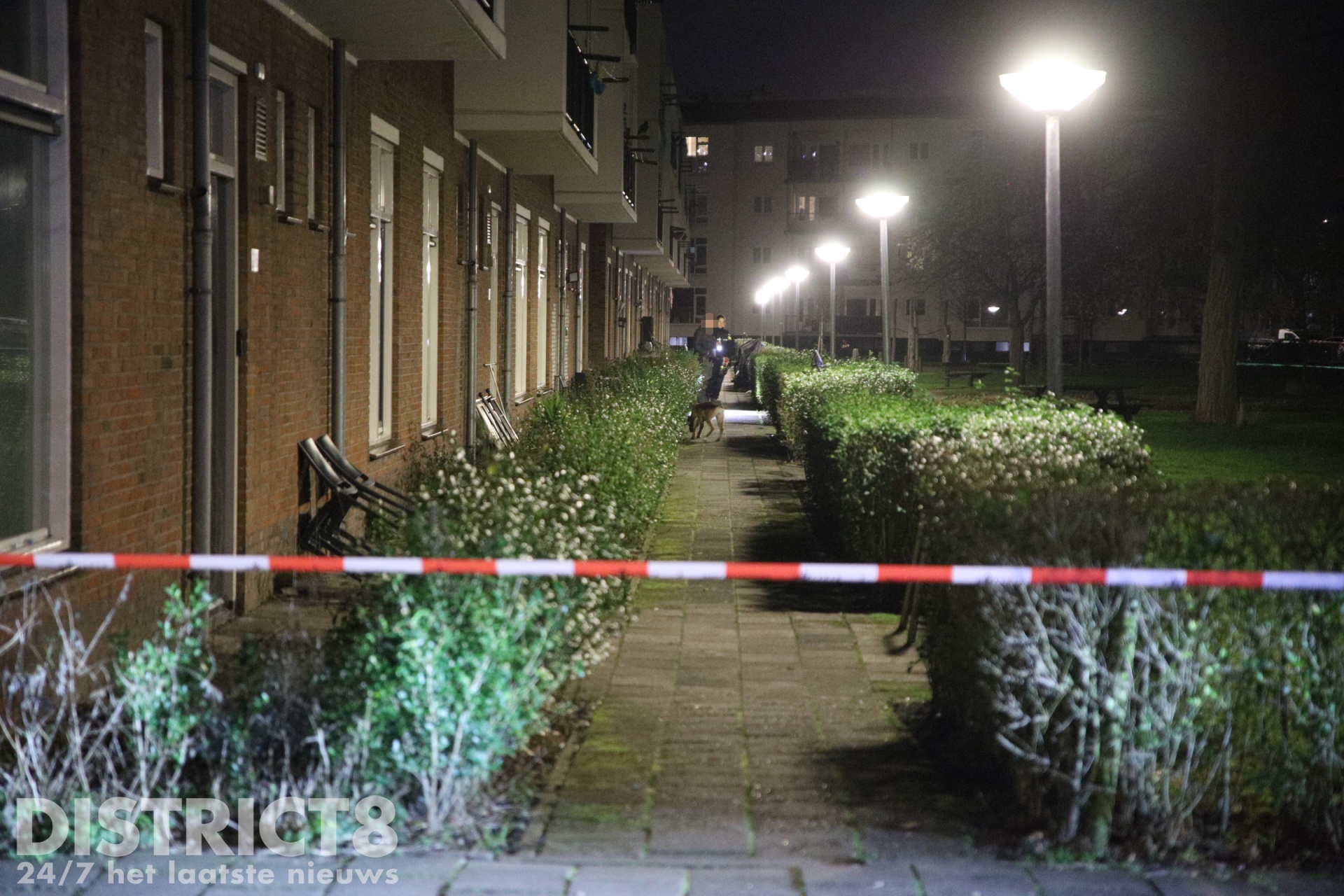Een speurhond is ter plaatse gekomen om te zoeken naar het vuurwapen. Deze zou de verdachte hebben weggegooid. Deze is uiteindelijk door de speurhond aangetroffen op de Cannenburglaan.