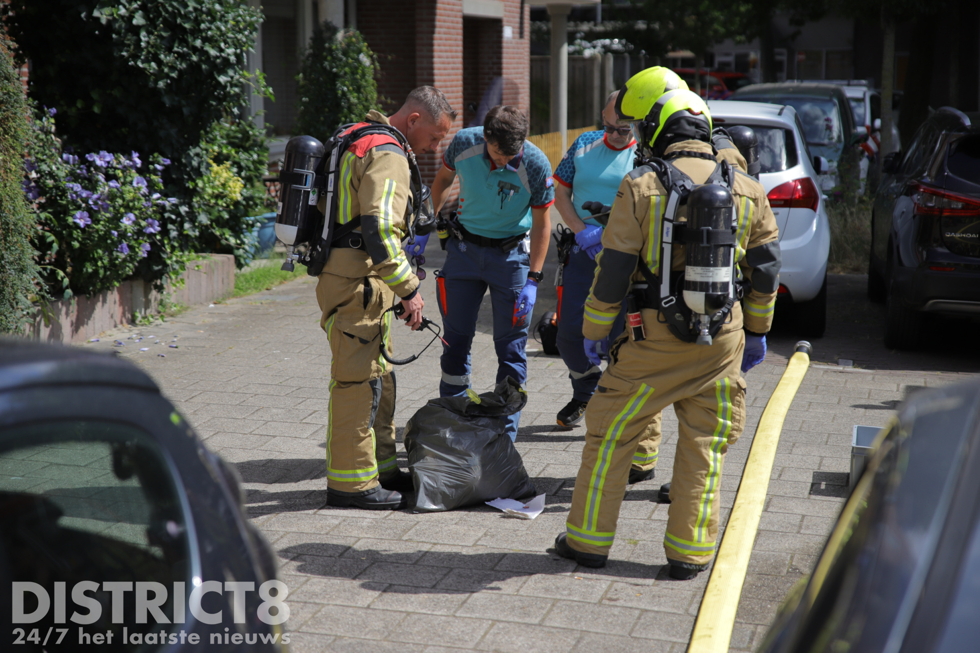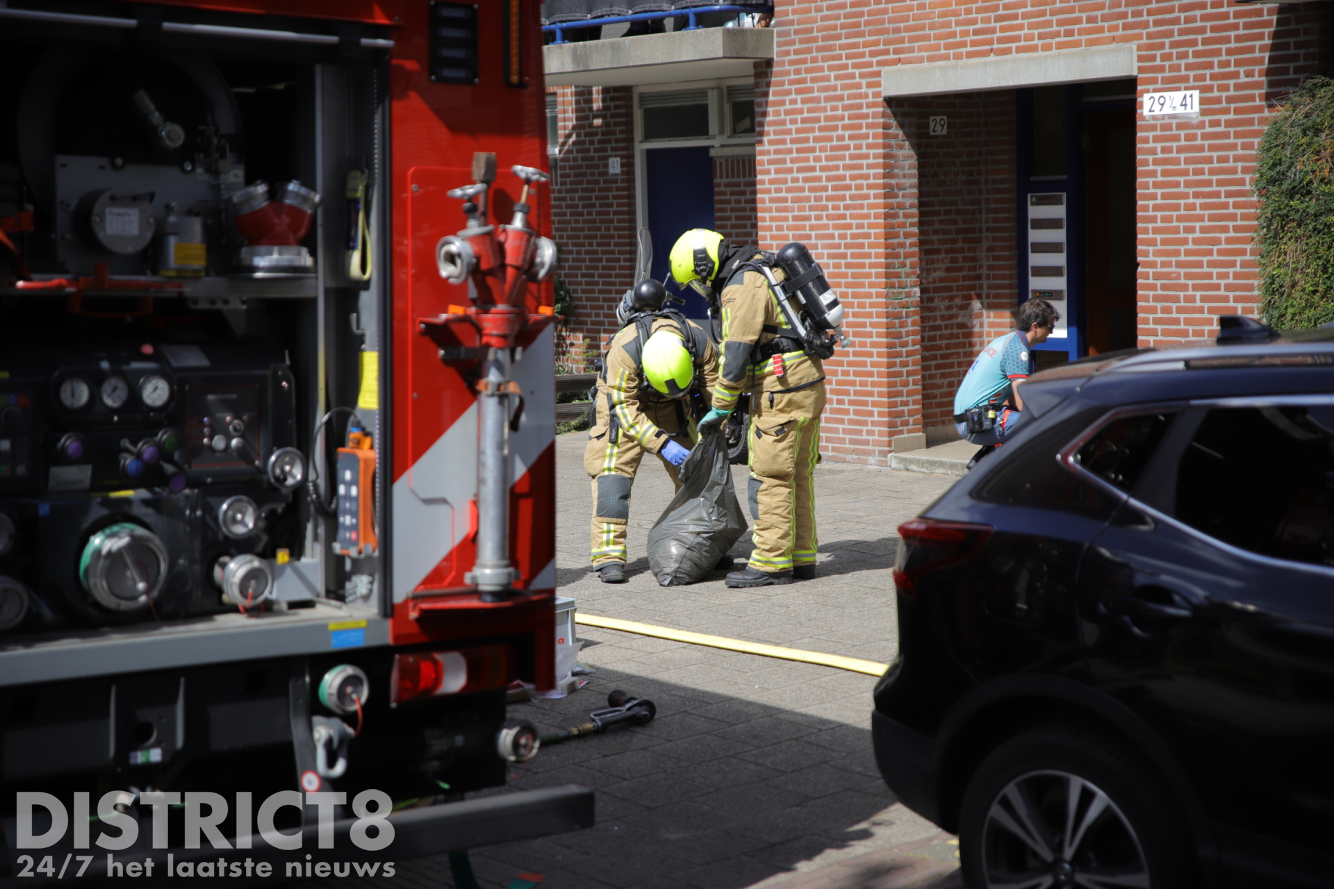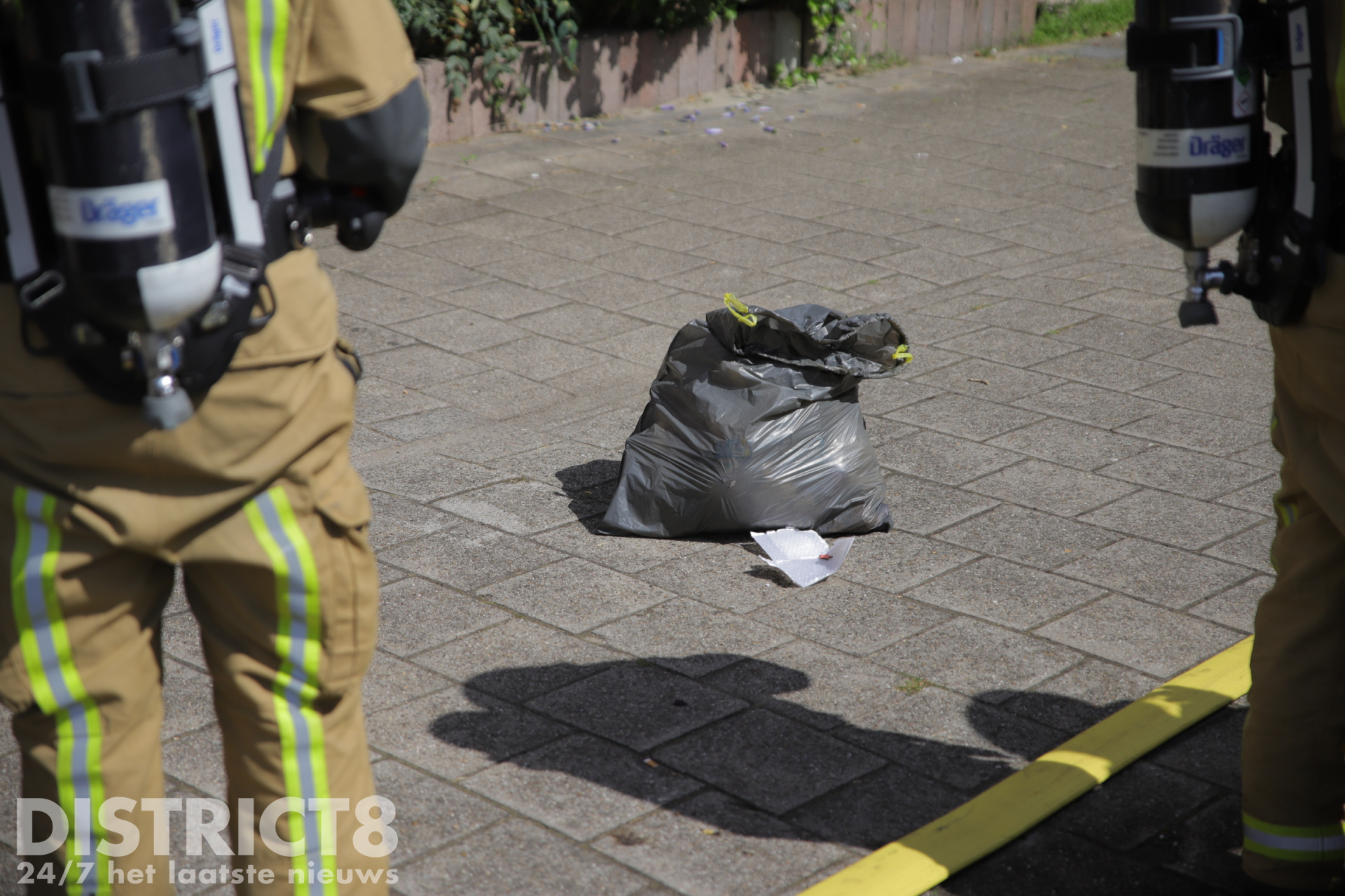 De hulpdiensten kwamen met spoed ter plaatse en hebben onderzoek gedaan. De brandweer heeft de vuilniszak met envelop naar buiten gebracht. De politie gaat verder onderzoek doen naar de envelop en de inhoud.
