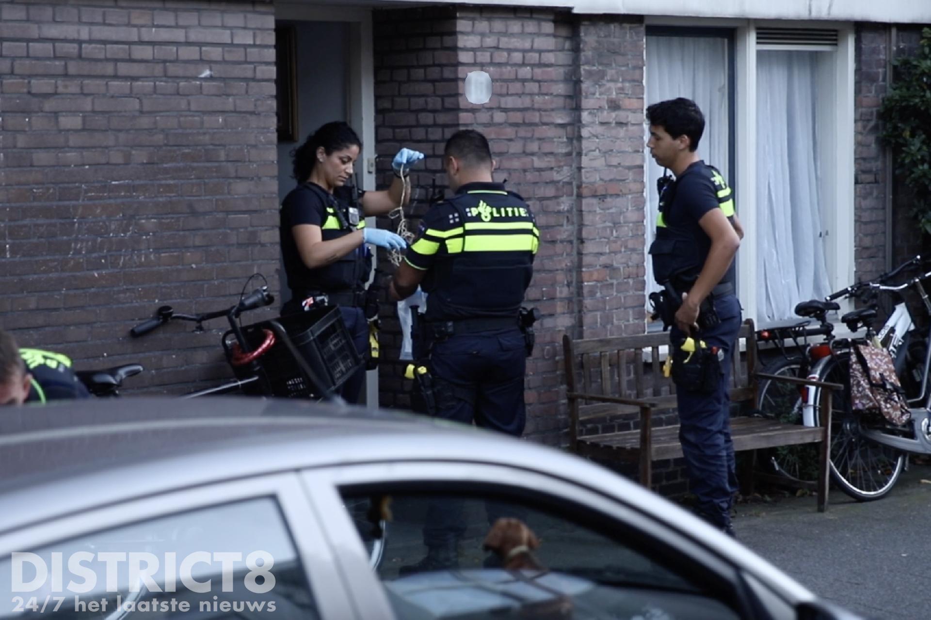 De politie heeft een deel van de straat afgezet voor sporenonderzoek.