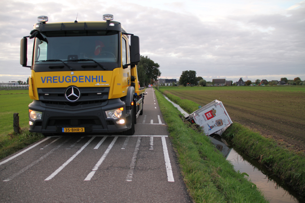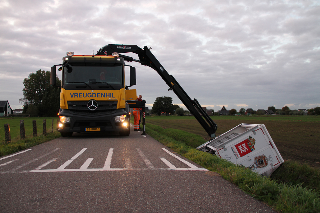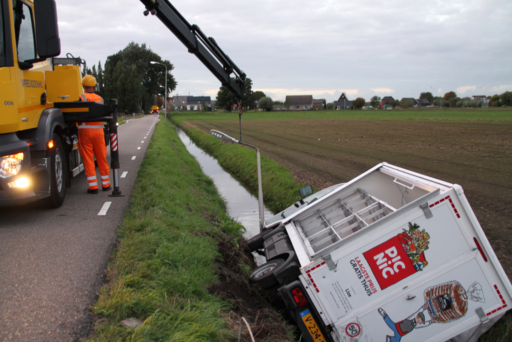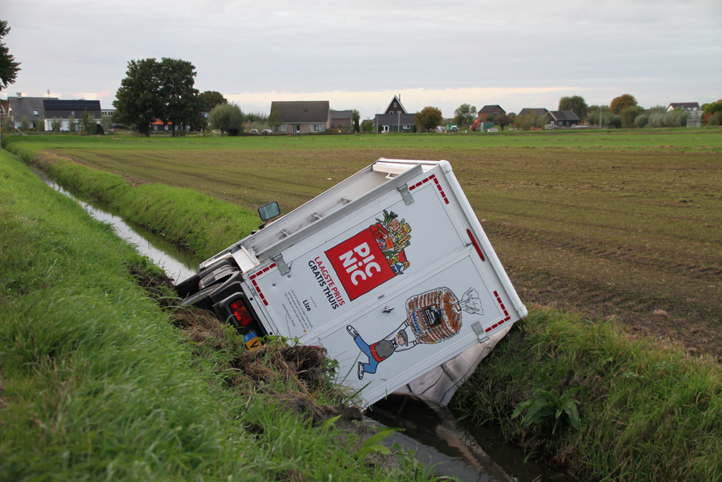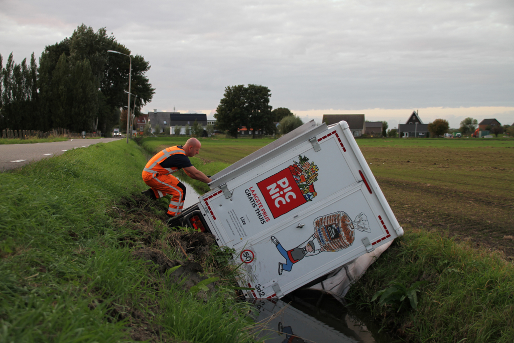 Pijnacker – Op de Bovenmolenweg tussen Berkel en Pijnacker is een bezorgwagentje van Picnic omgeslagen en vervolgens in een greppel beland.