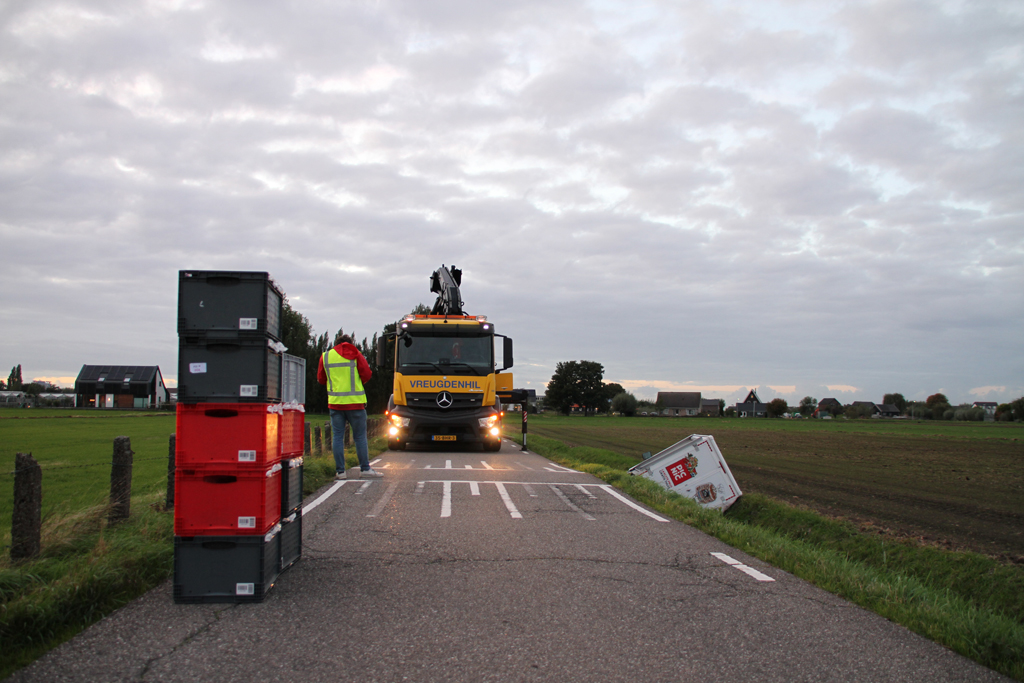 De kratten met boodschappen zijn overgedragen aan een collega. Vanwege het ongeval is de Bovenmolenweg nog langere tijd gestremd voor het verkeer.