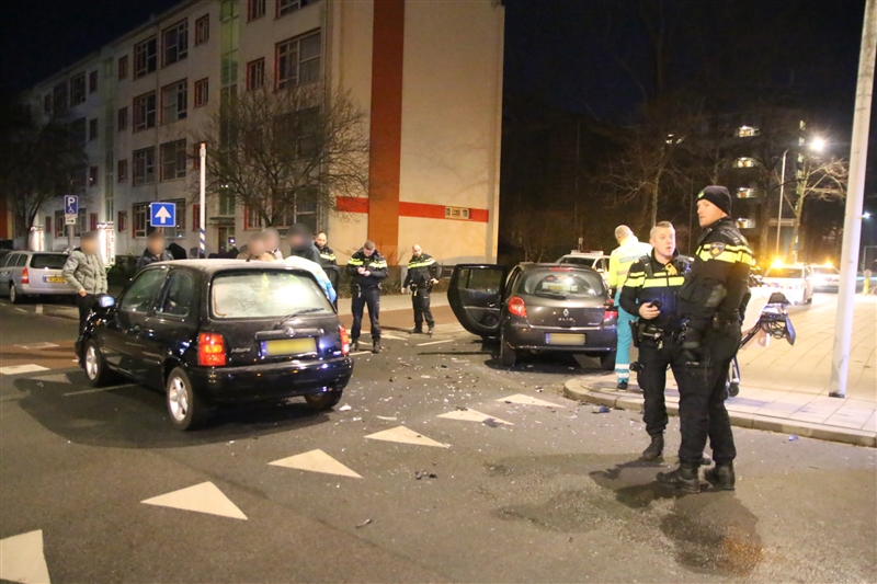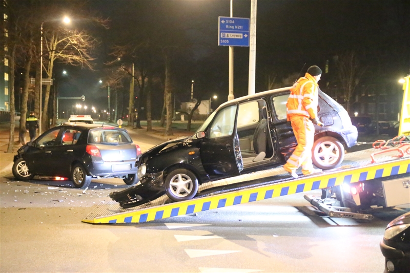 Twee auto’s botste frontaal op elkaar, waarna een auto al tollend tot stilstand kwam. Beide auto’s raakte door de klap total loss. Een inzittende van een auto raakte gewond en is met rug- en nekklachten naar het Haga ziekenhuis vervoerd. Verder raakte niemand anders gewond. De kruising was door de aanrijding tijdelijk afgesloten. Auto’s moesten tijdelijk omrijden. Vreugdenhil kwam de beide zwaar beschadigde auto’s bergen. De verkeerspolitie heeft kort onderzoek gedaan naar het ongeval.