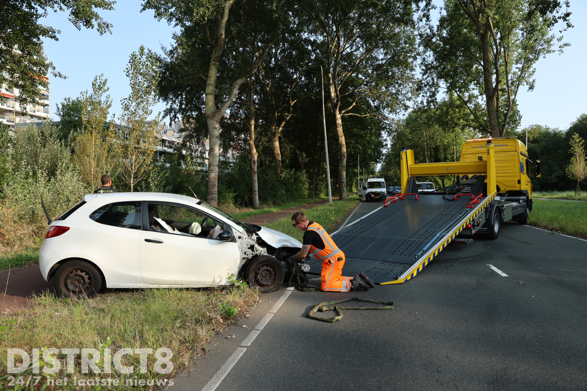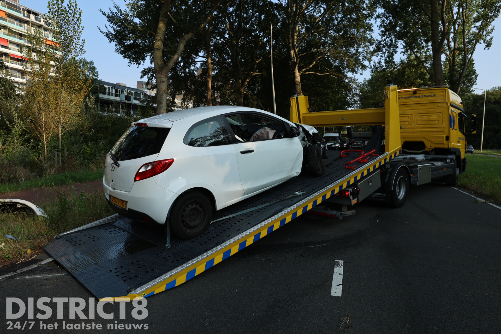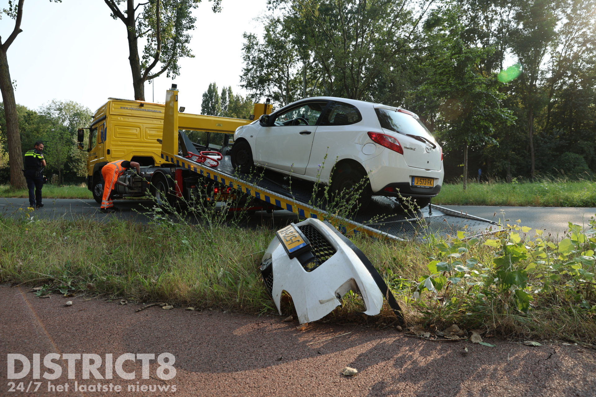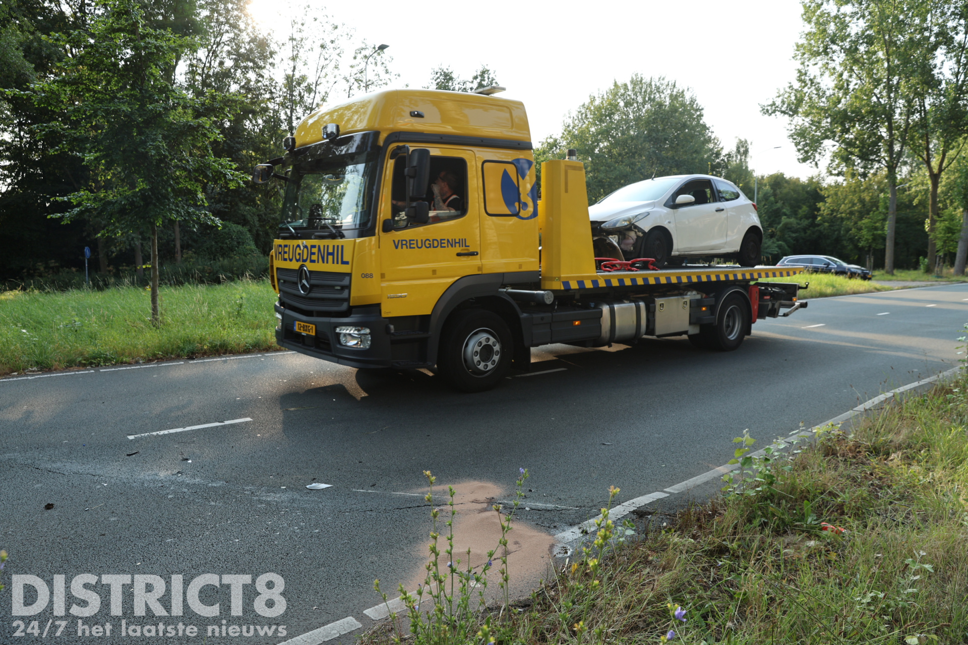 Een berger van Vreugdenhil kwam ter plaatse om de auto af te slepen. Tijdens de bergingswerkzaamheden werd de weg tijdelijk volledig afgesloten.