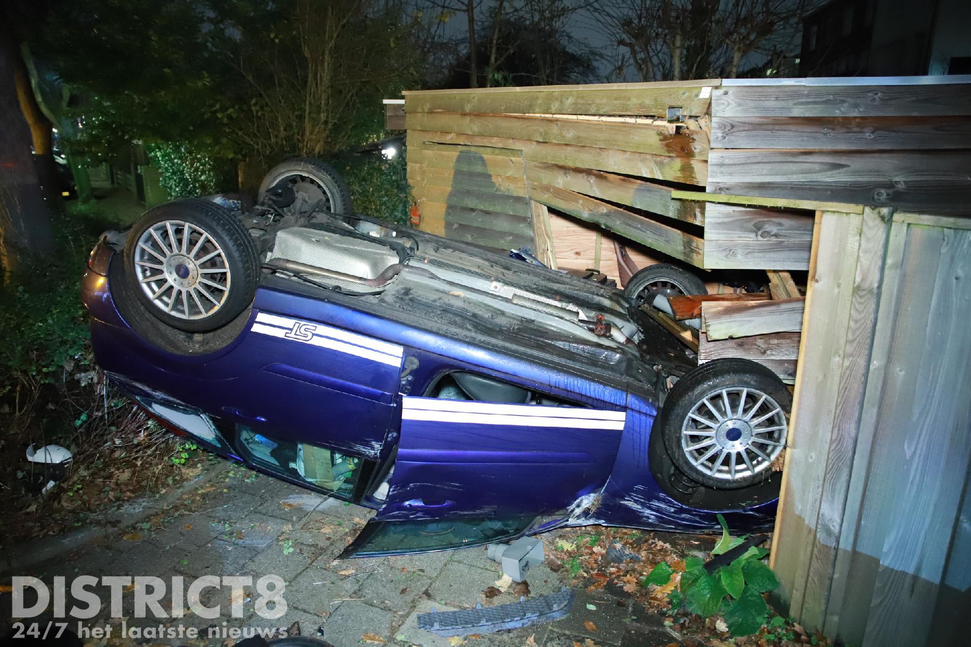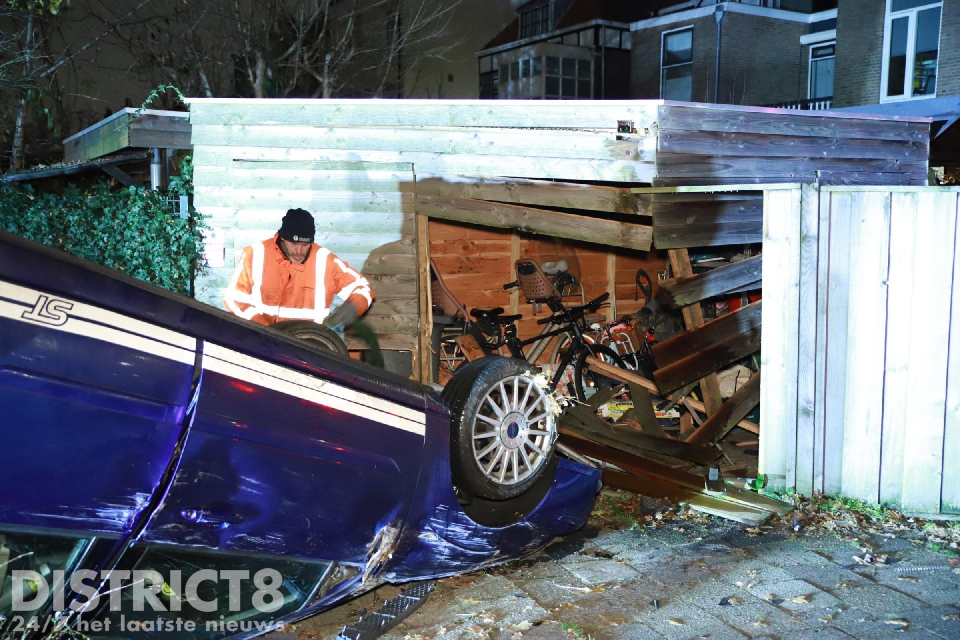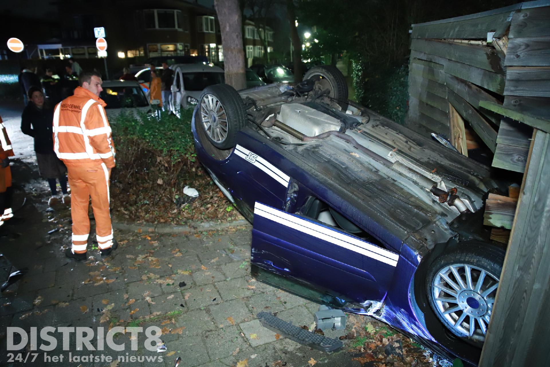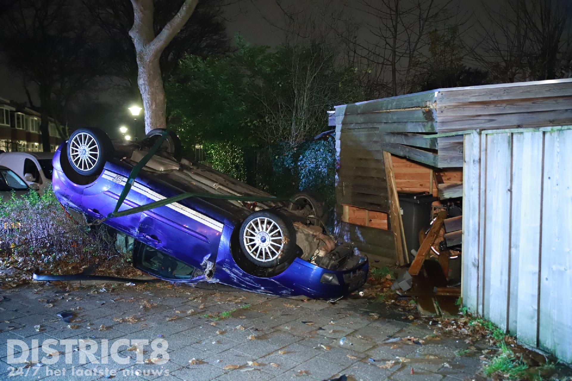 Rijswijk – Op de Acacialaan in Rijswijk heeft zondagavond 11 december een bizar ongeval plaatsgevonden. Een auto is hierbij op z’n dak dwars door een schutting en een schuur geschoten.