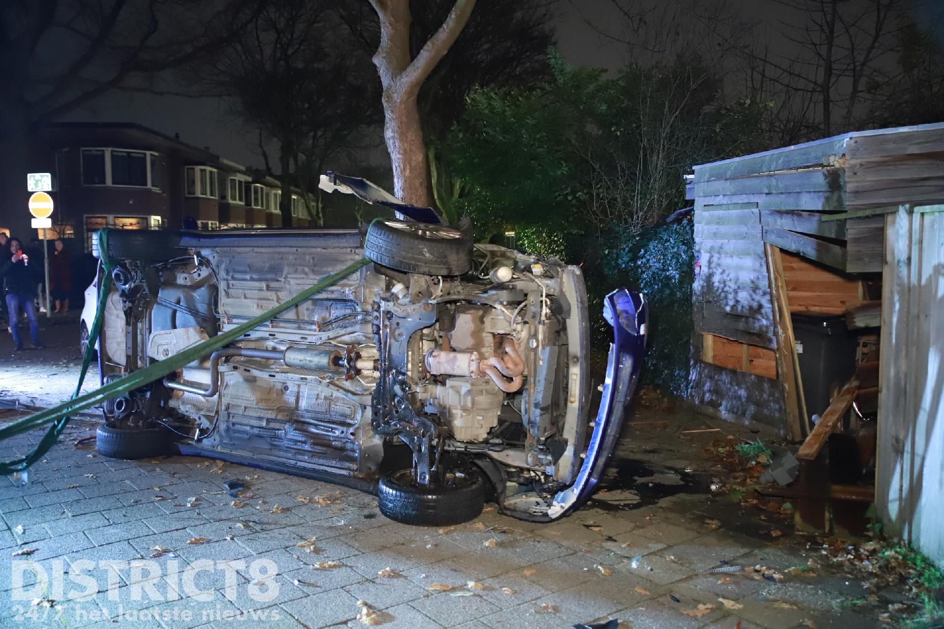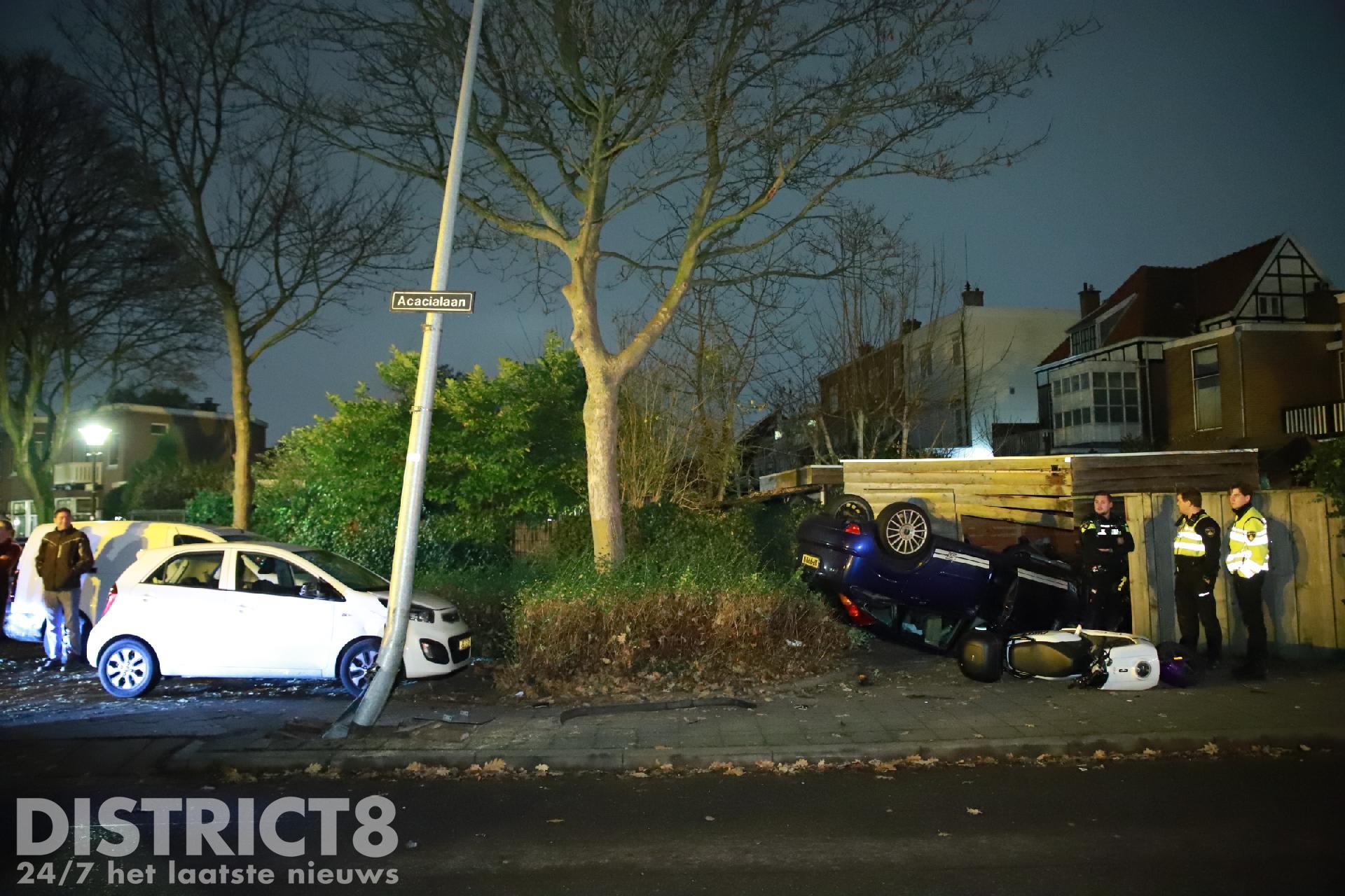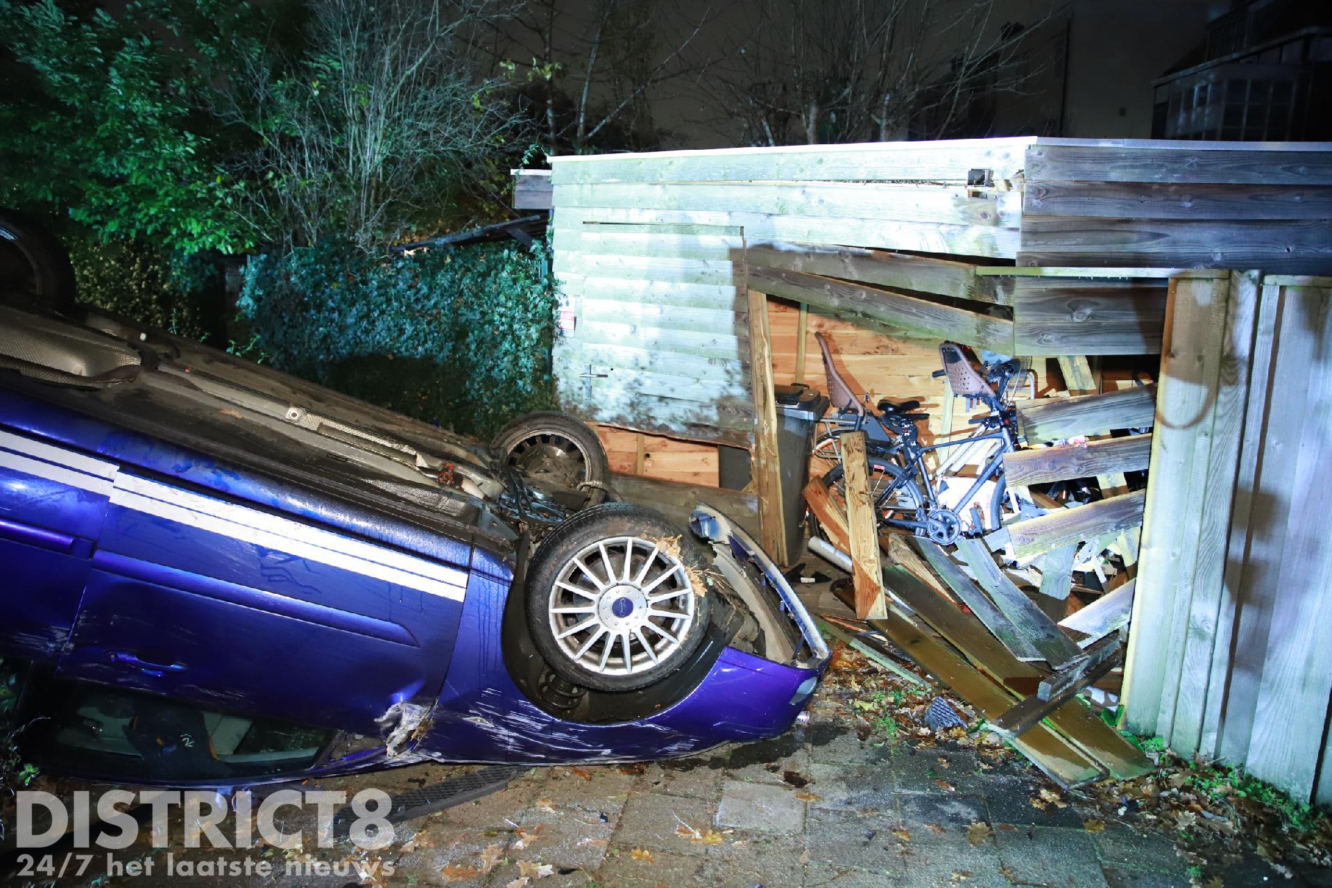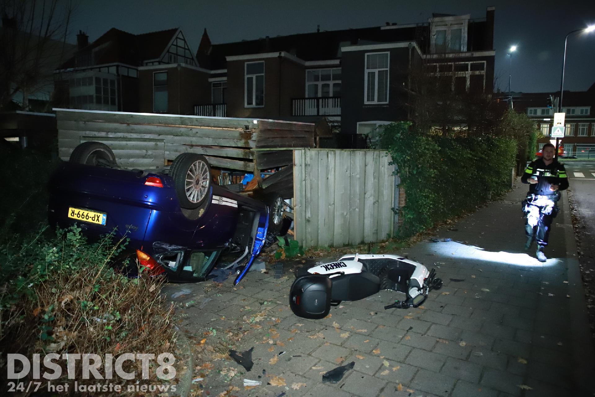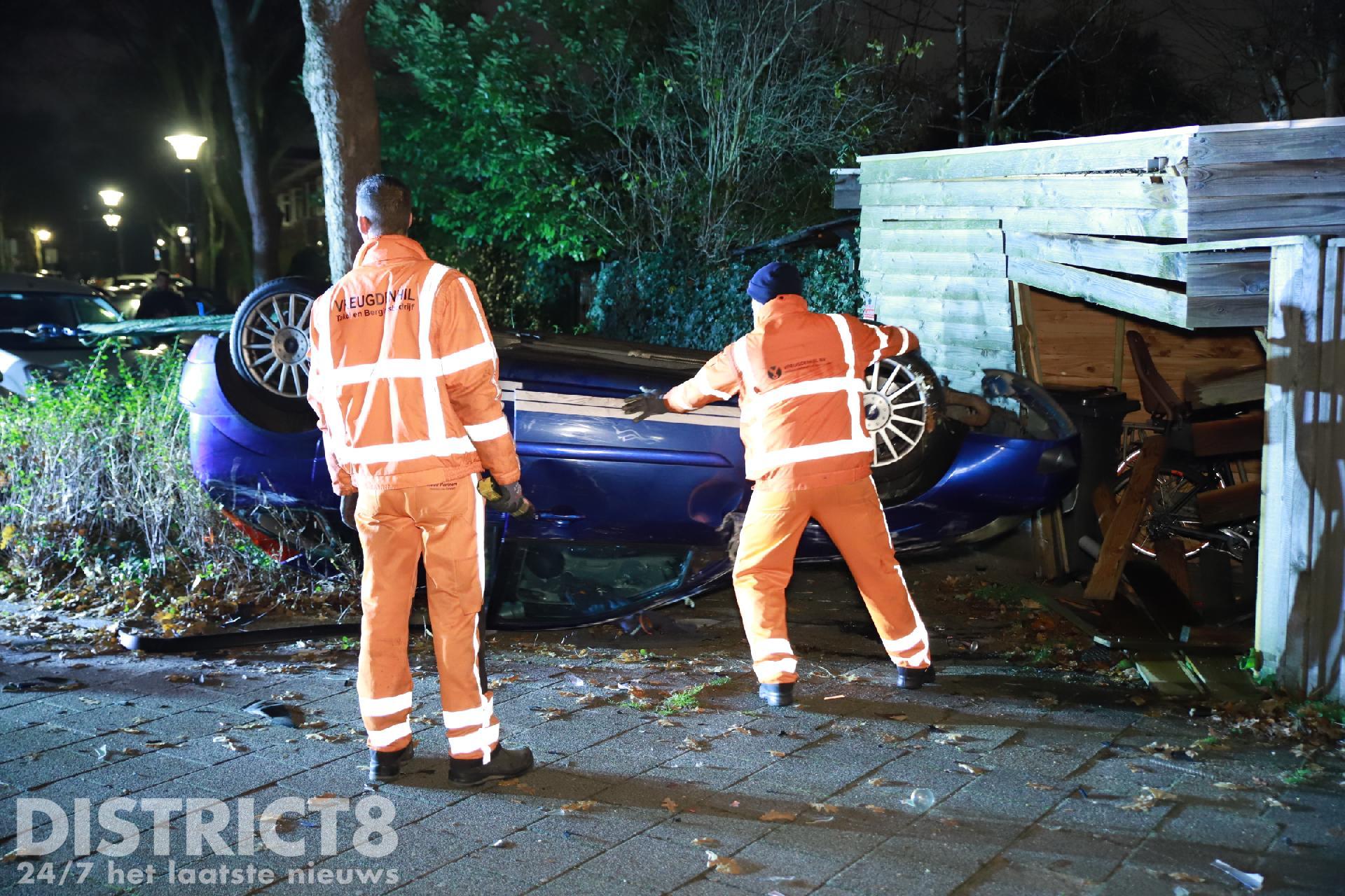 Rijswijk – Op de Acacialaan in Rijswijk heeft zondagavond 11 december een bizar ongeval plaatsgevonden. Een auto is hierbij op z’n dak dwars door een schutting en een schuur geschoten.