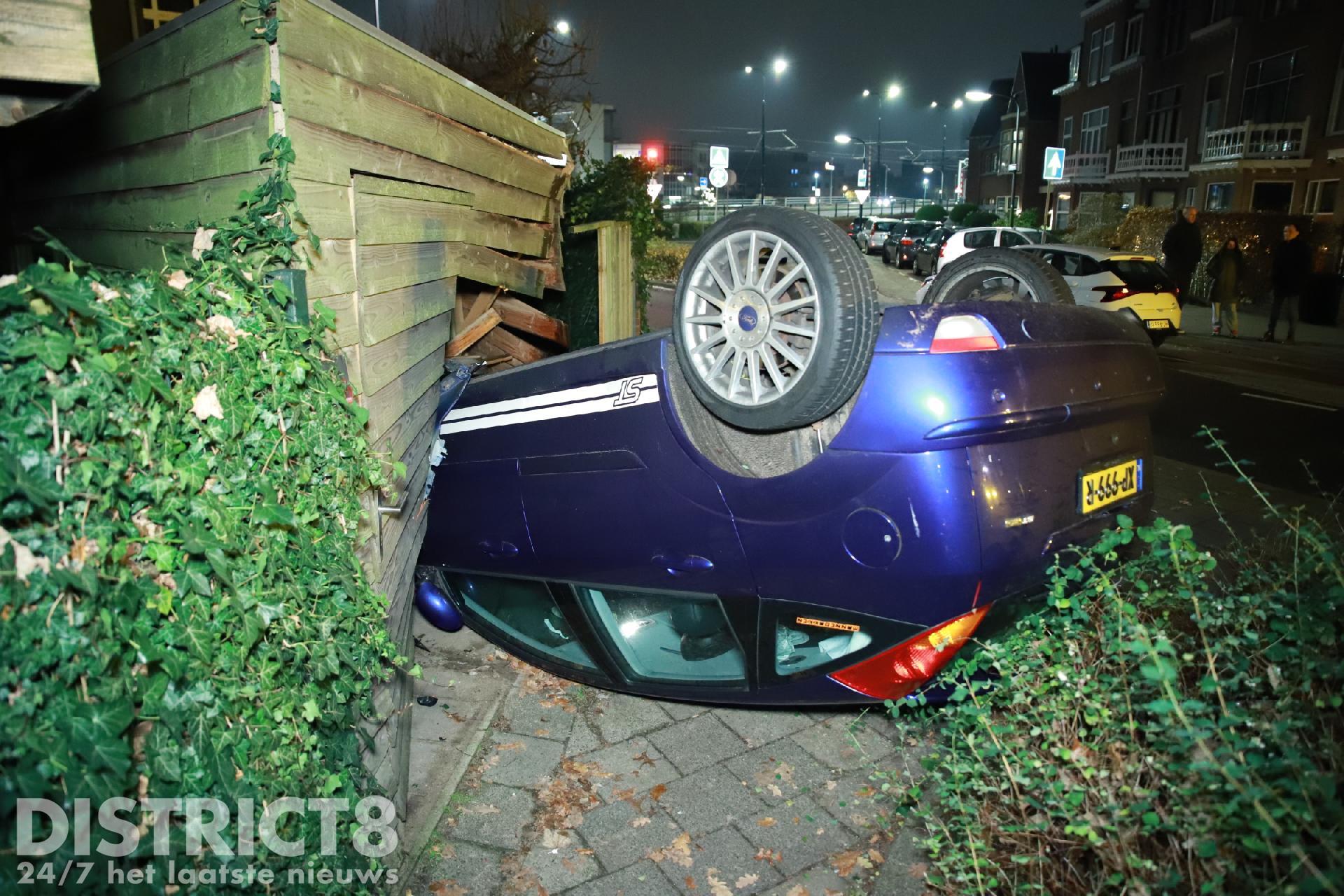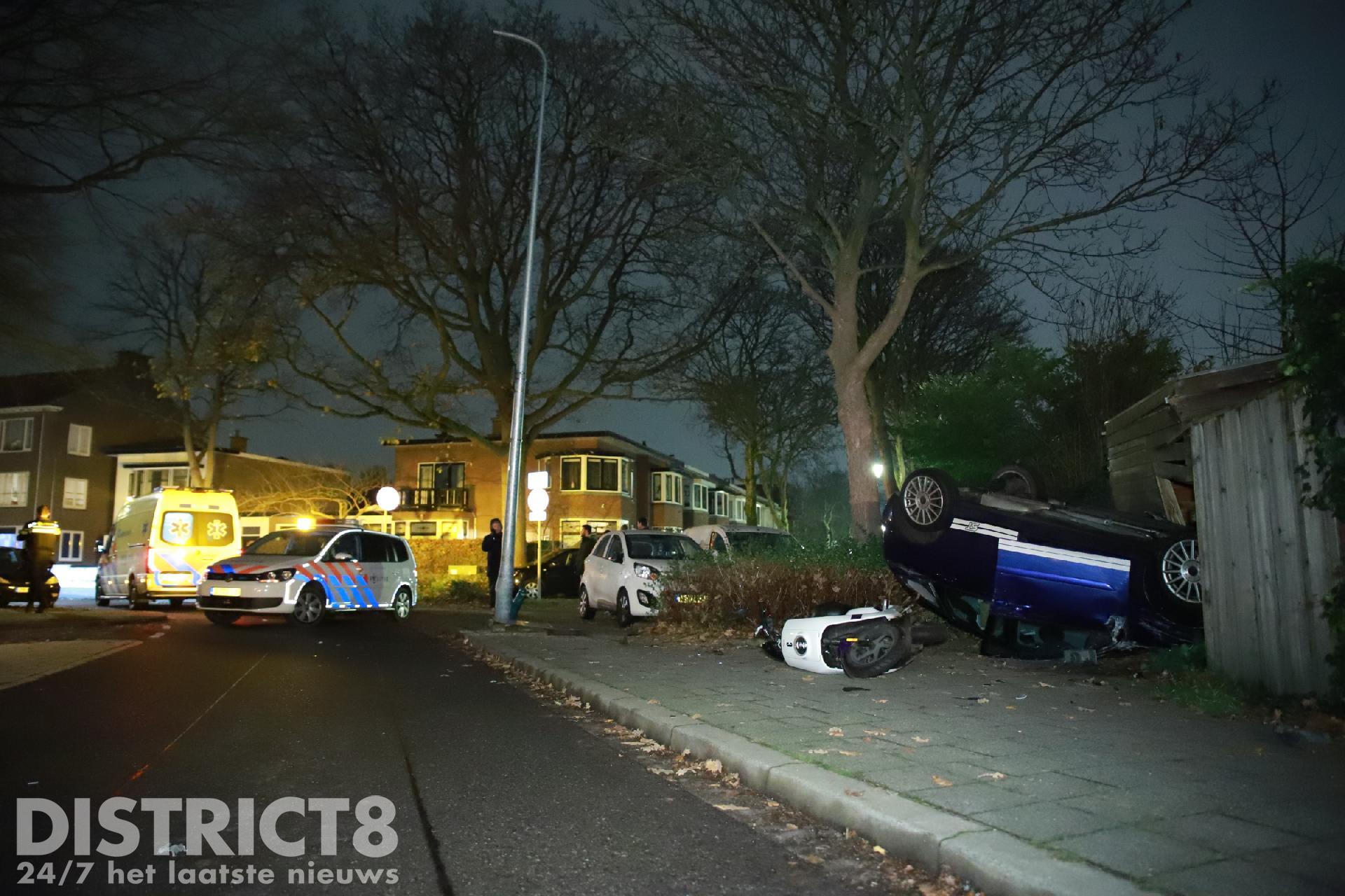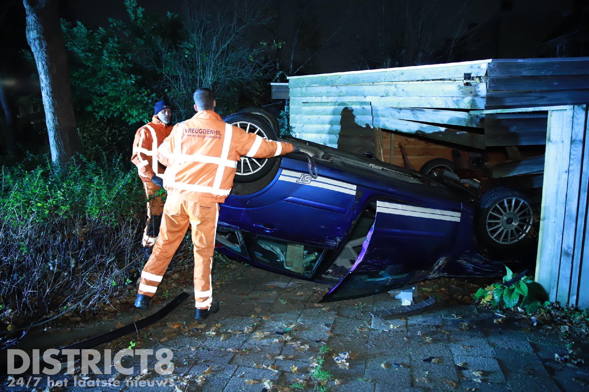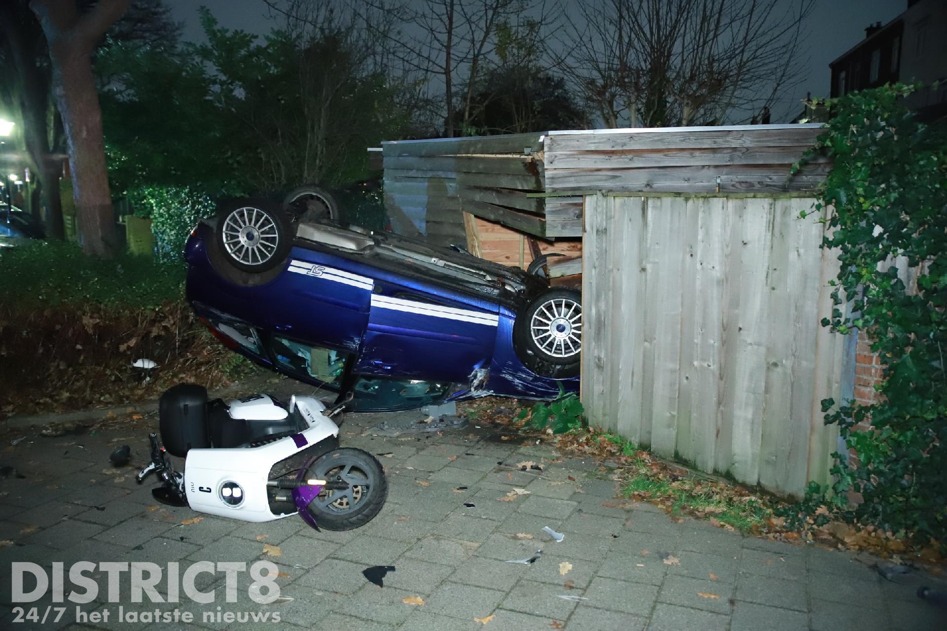 Rijswijk – Op de Acacialaan in Rijswijk heeft zondagavond 11 december een bizar ongeval plaatsgevonden. Een auto is hierbij op z’n dak dwars door een schutting en een schuur geschoten.