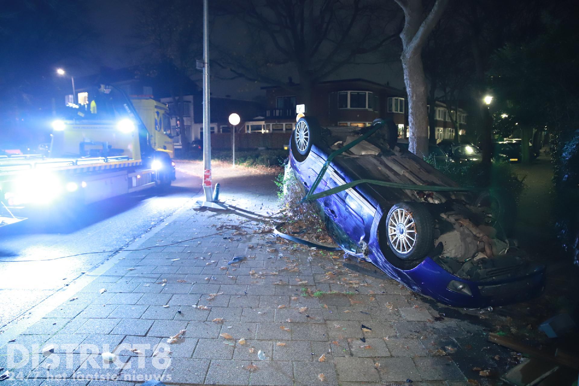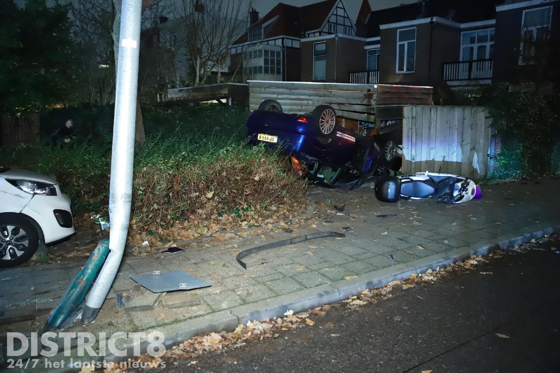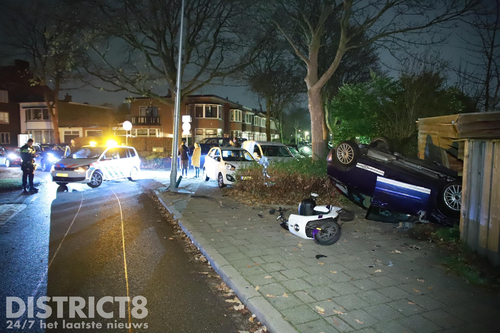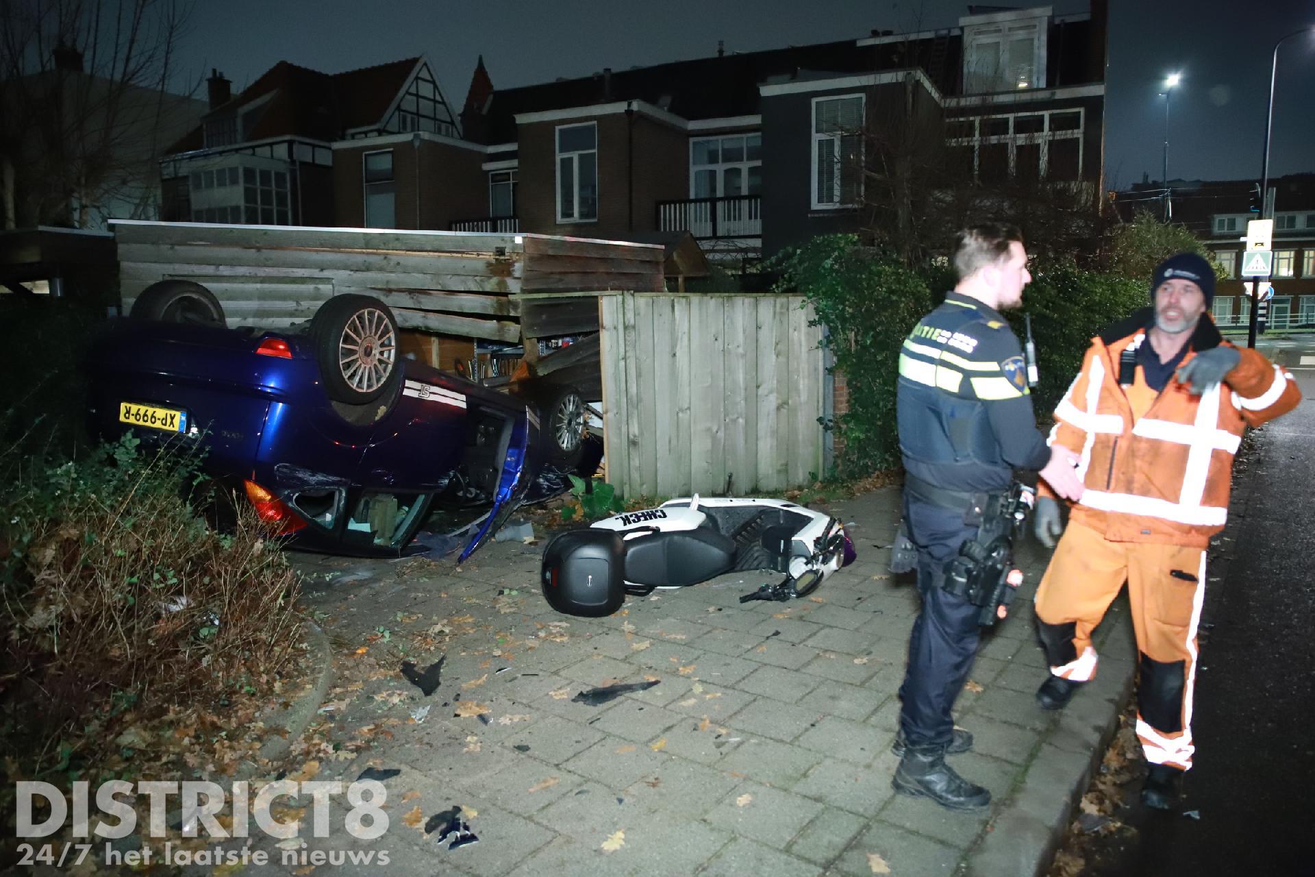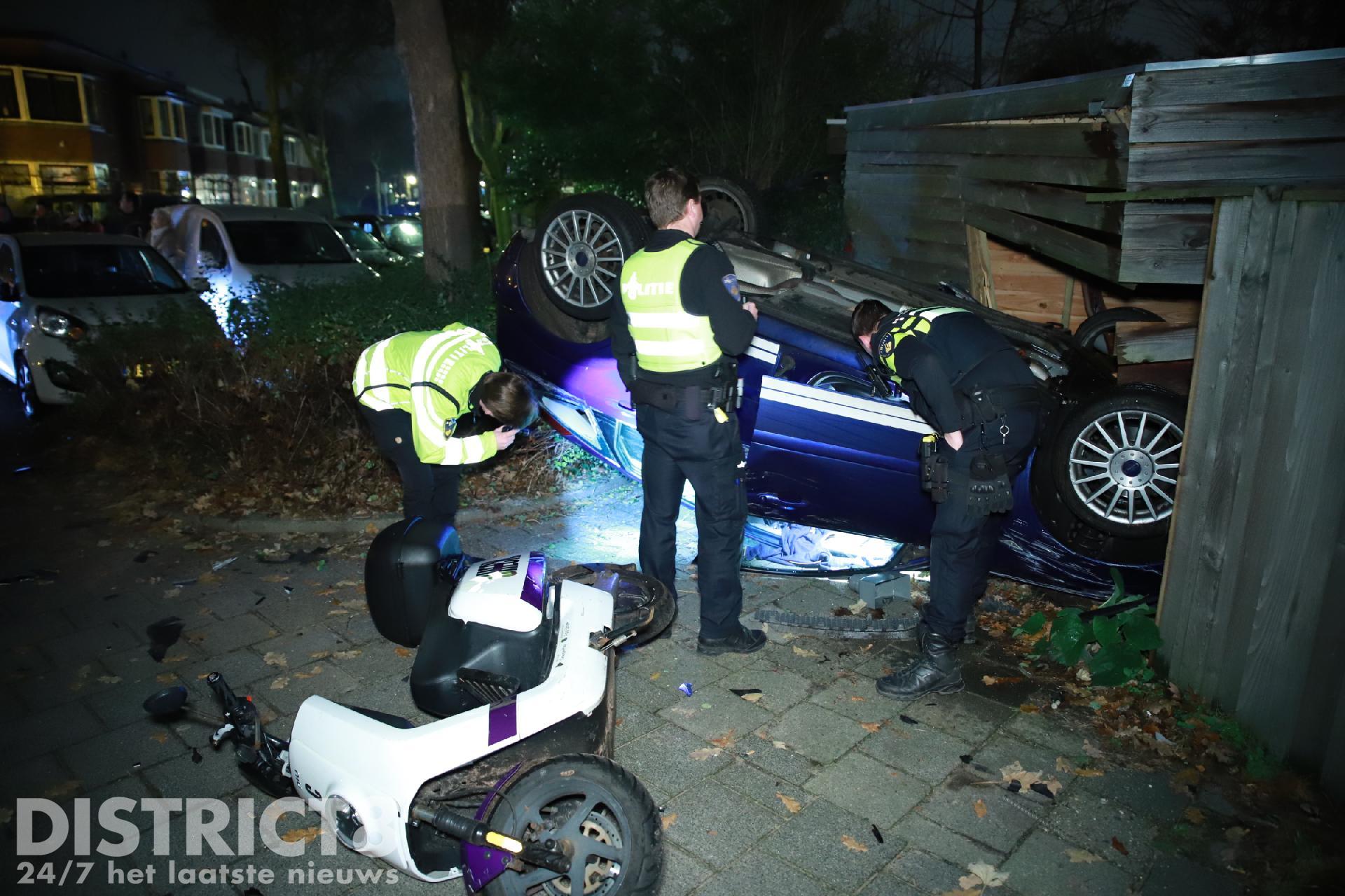 Rijswijk – Op de Acacialaan in Rijswijk heeft zondagavond 11 december een bizar ongeval plaatsgevonden. Een auto is hierbij op z’n dak dwars door een schutting en een schuur geschoten.