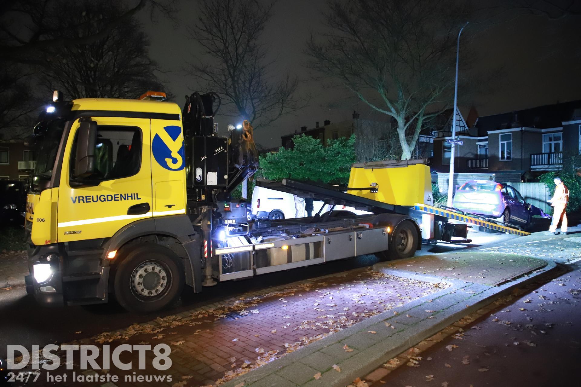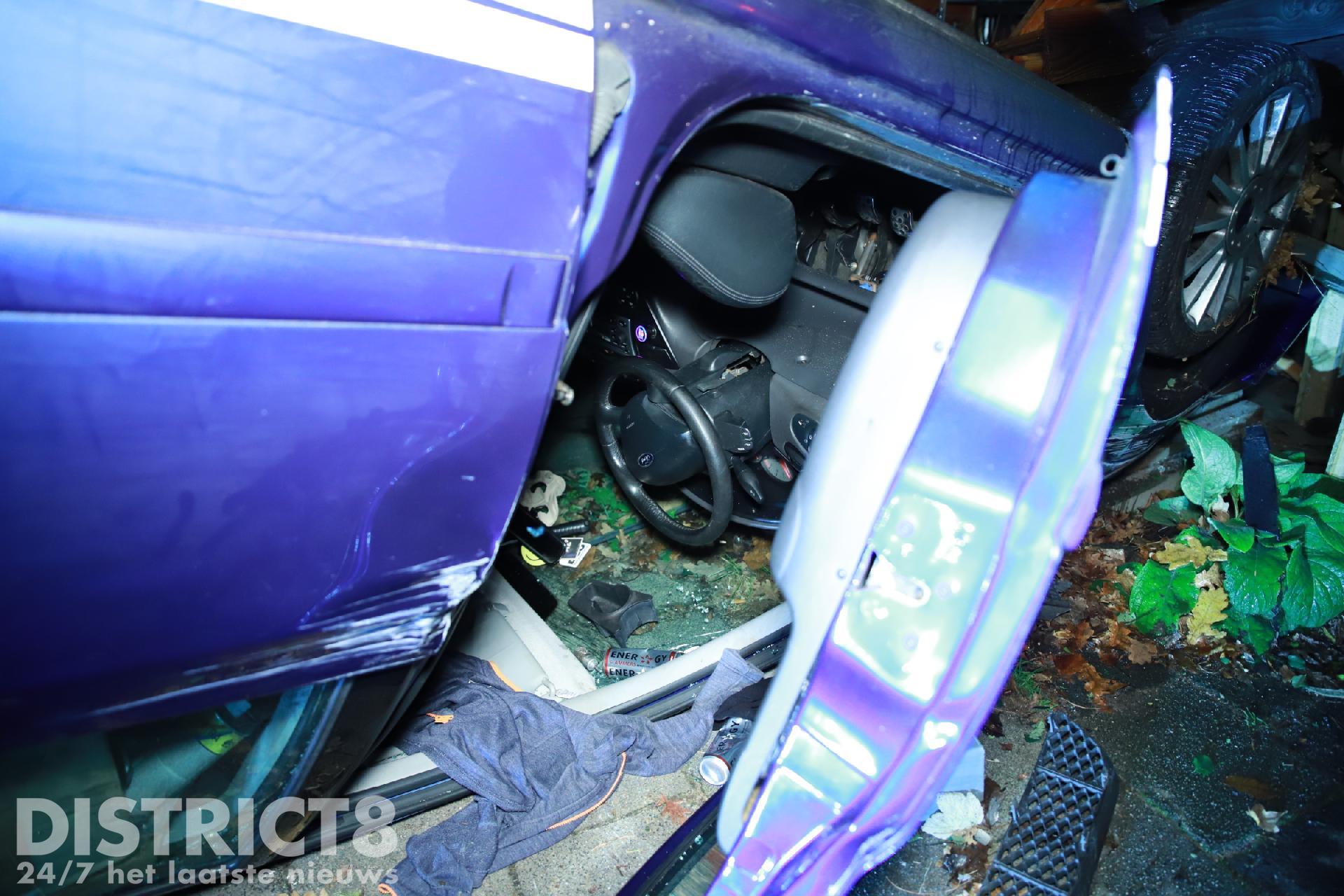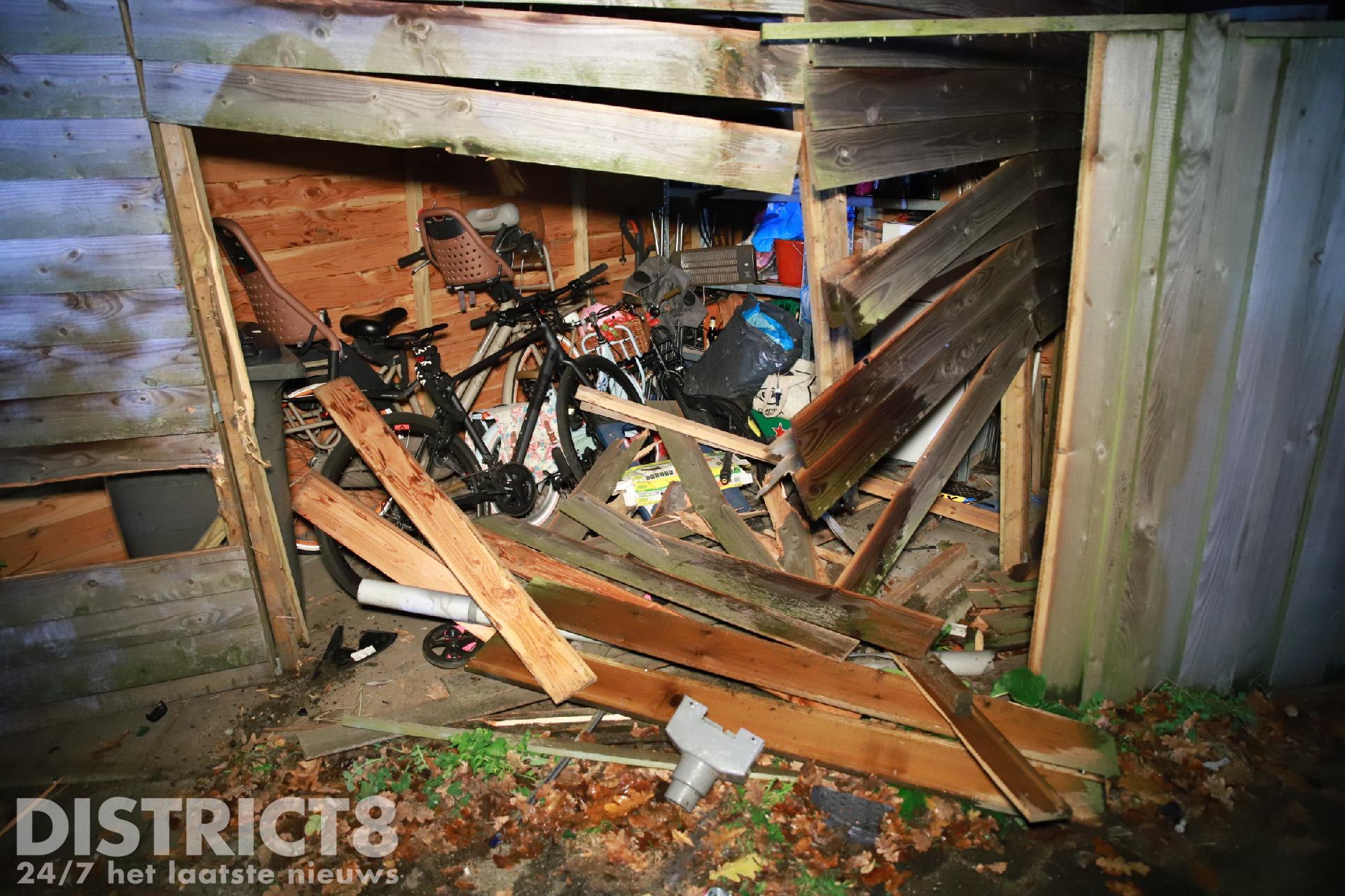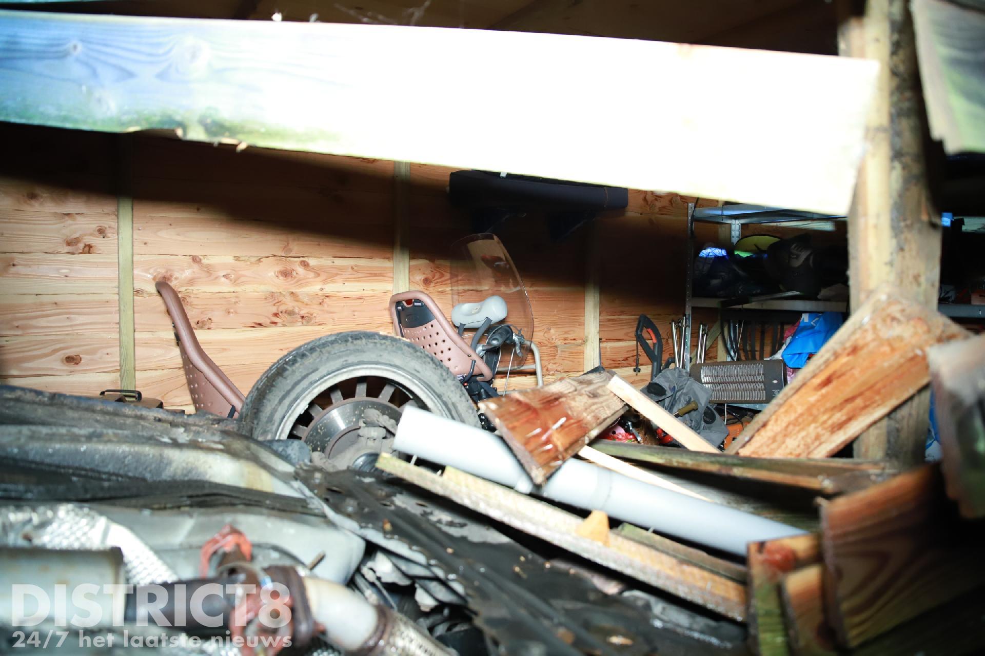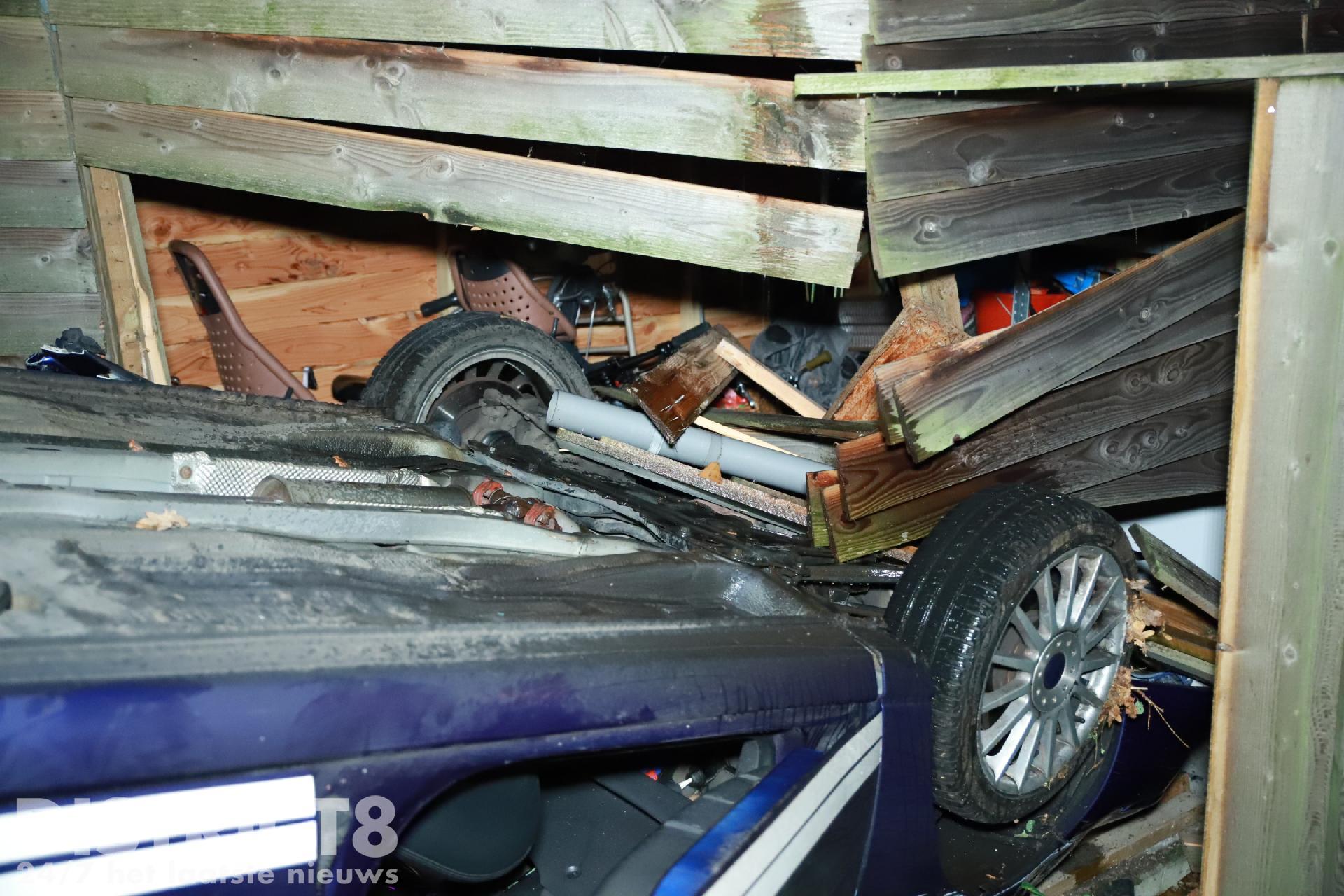 Een berger van Vreugdenhil heeft het voertuig afgesleept. De schade aan de schuur is enorm.