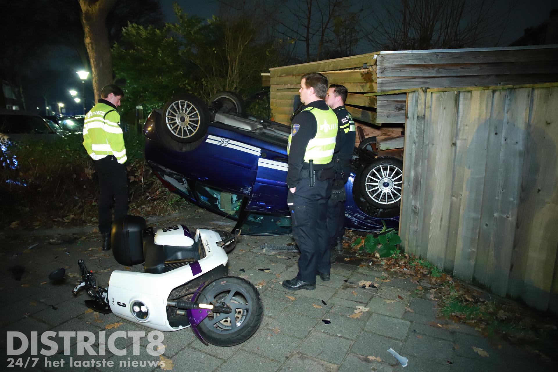 Het ongeval vond plaats rond half elf. Een automobilist merkte dat zijn remmen het niet deden. Hij ramde een geparkeerde auto, een lichtmast en een deelscooter. De auto kwam op z’n dak terecht en schoof enkele meters verder door. Voordat het voertuig tot stilstand kwam ramde hij eerst een schutting en een schuur van een woning. Het schuurtje en de schutting liepen enorme schade op.