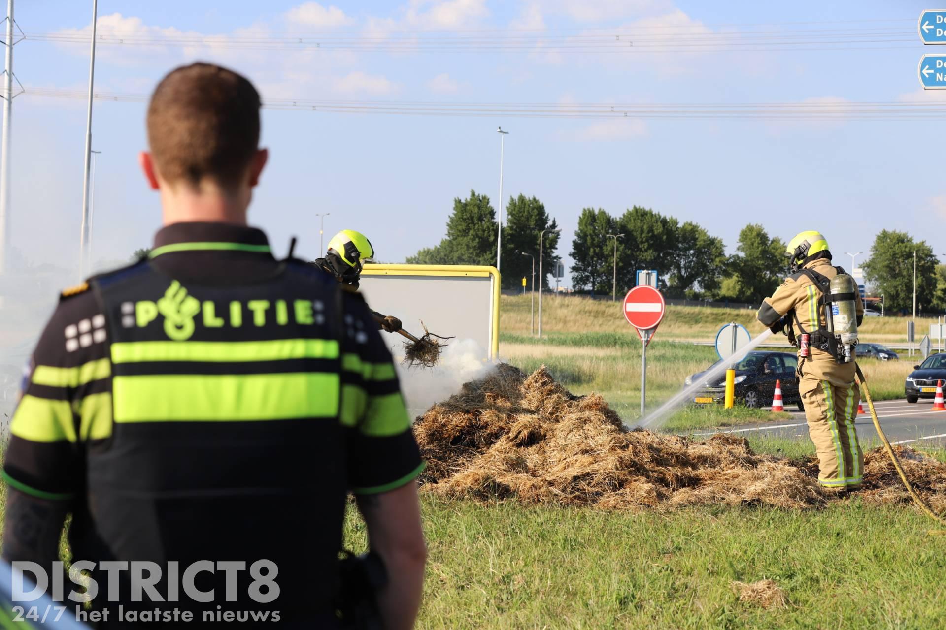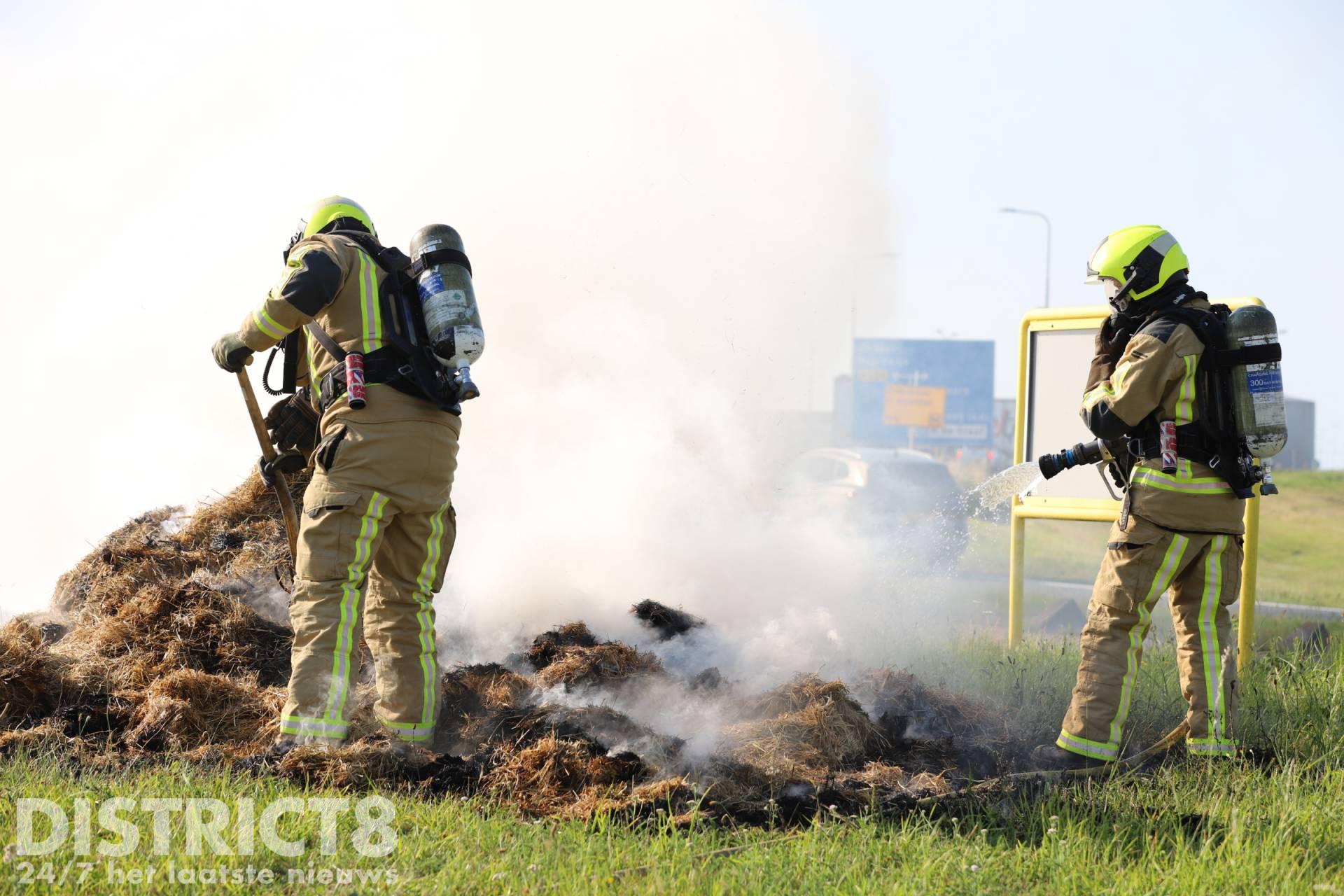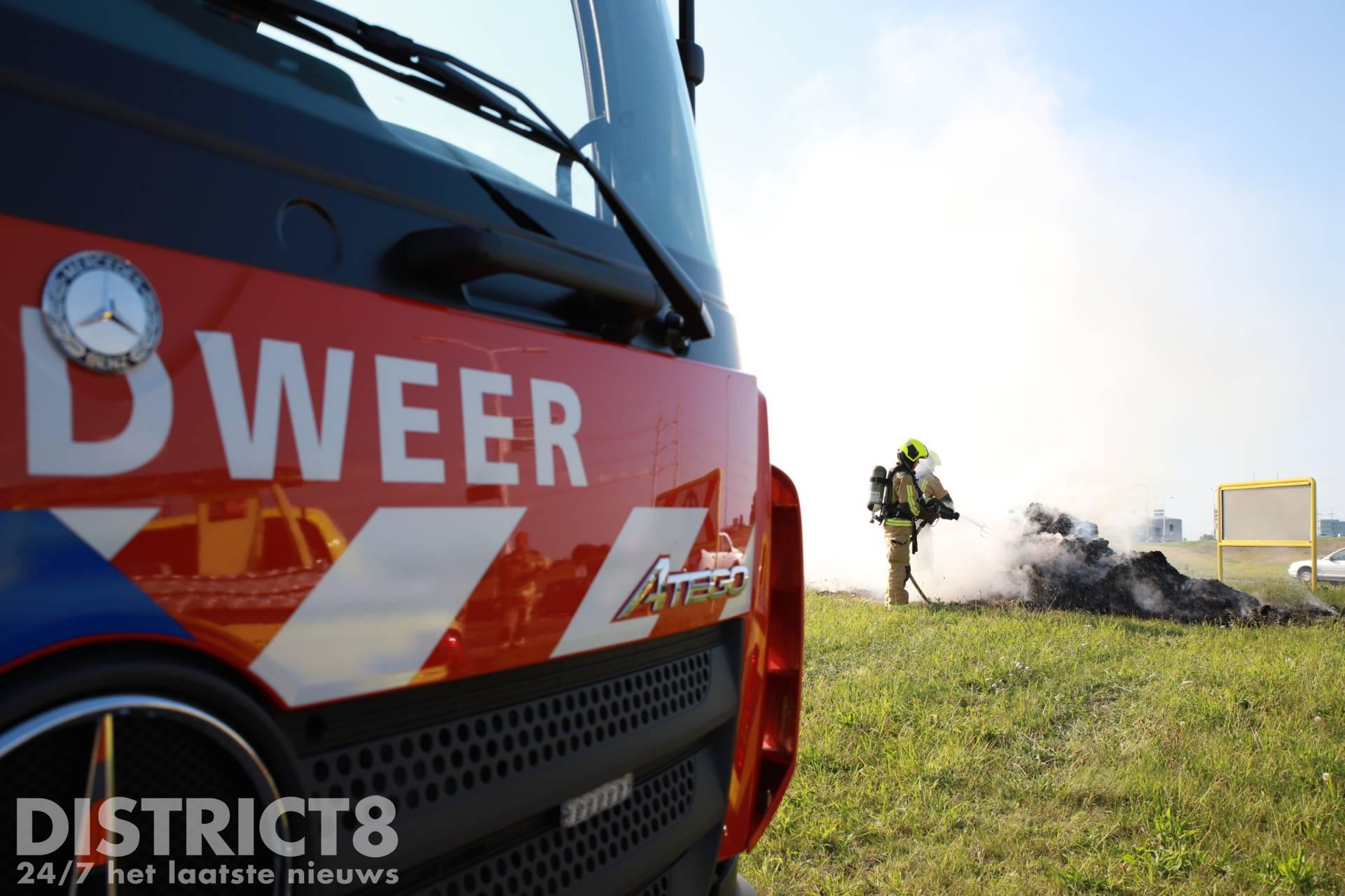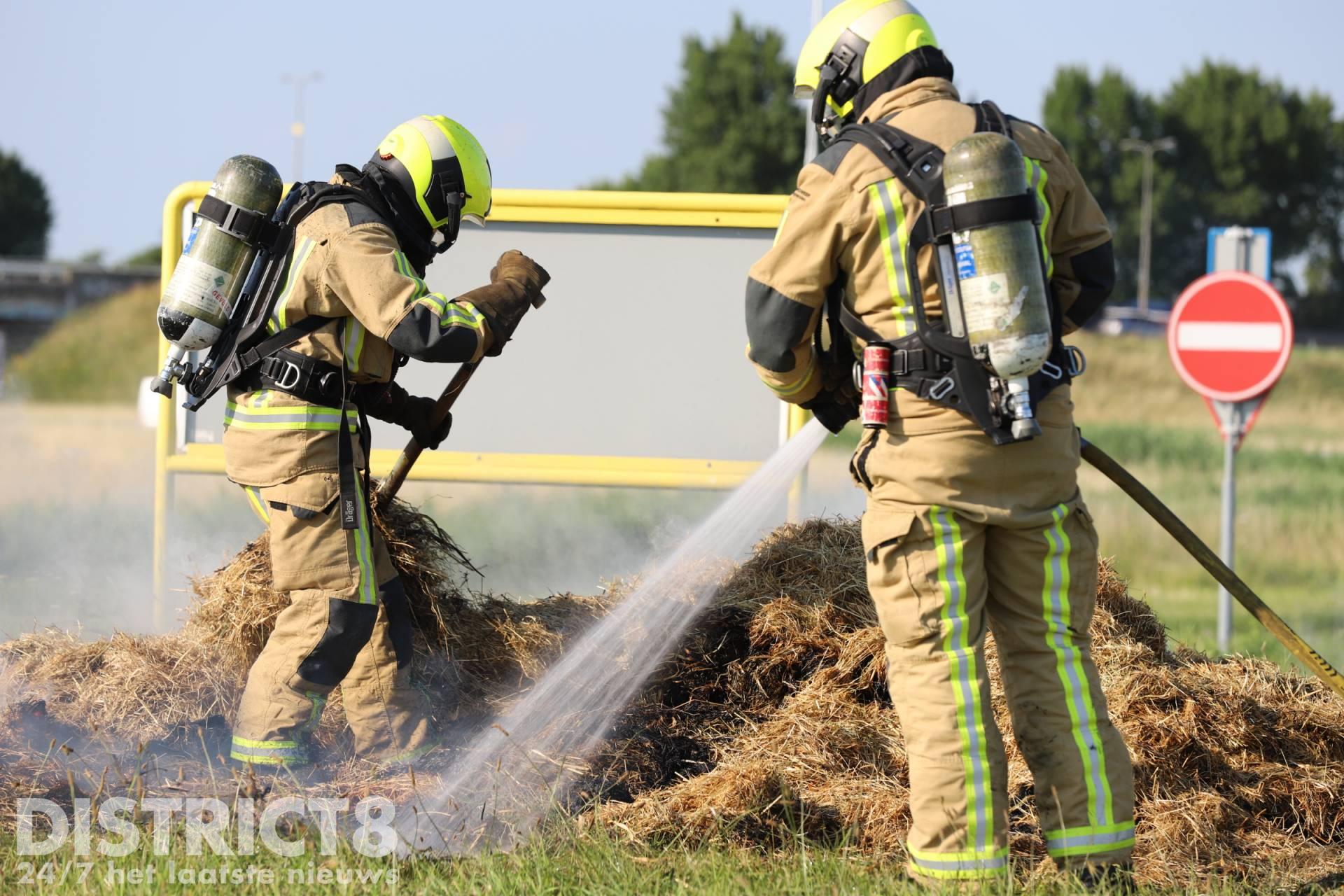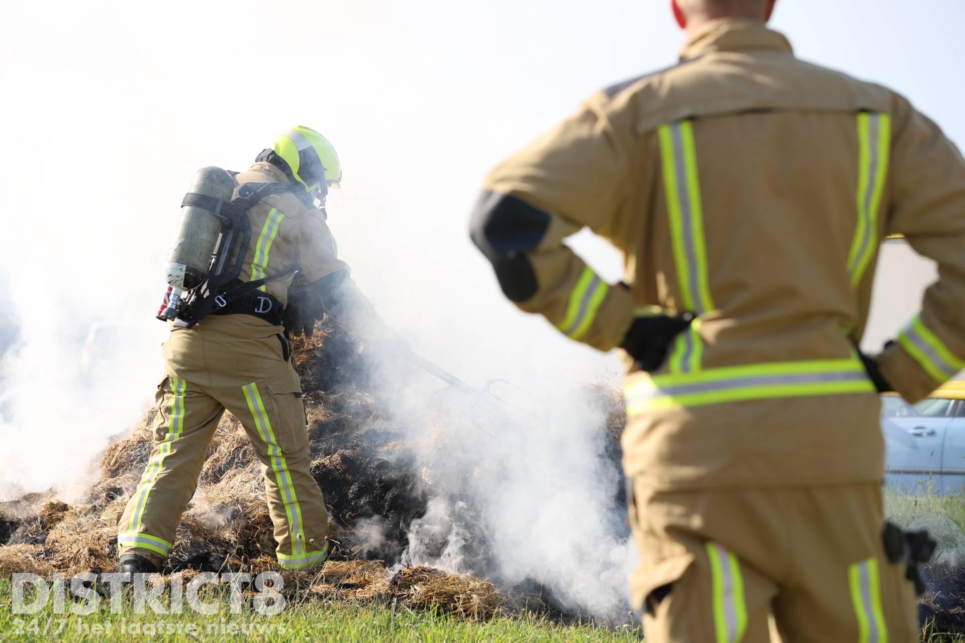 De brandweer moest eraan te pas komen om het vuur te blussen. Doormiddel van hooivorken werden de balen uit elkaar getrokken om het vuur volledig uit te krijgen.