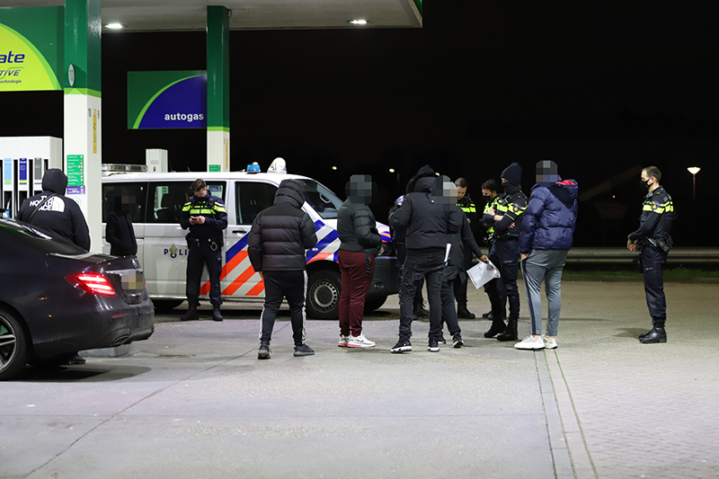 Bij de meldkamer kwamen meerdere meldingen binnen over een groep mensen die bij het tankstation stonden te dansen. Aangezien het ten tijde van de melding al na 21:00 was werd de politie aangestuurd.