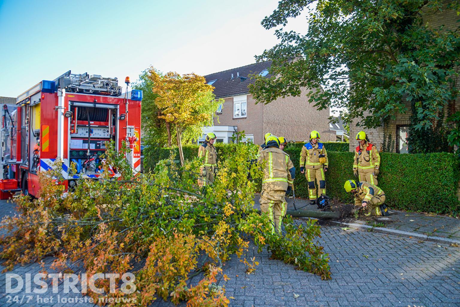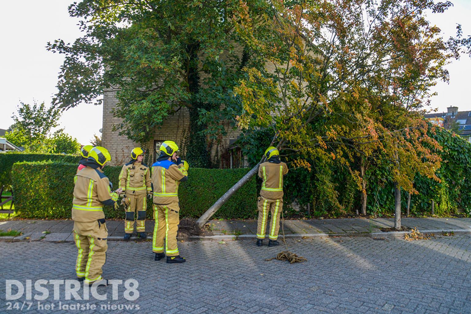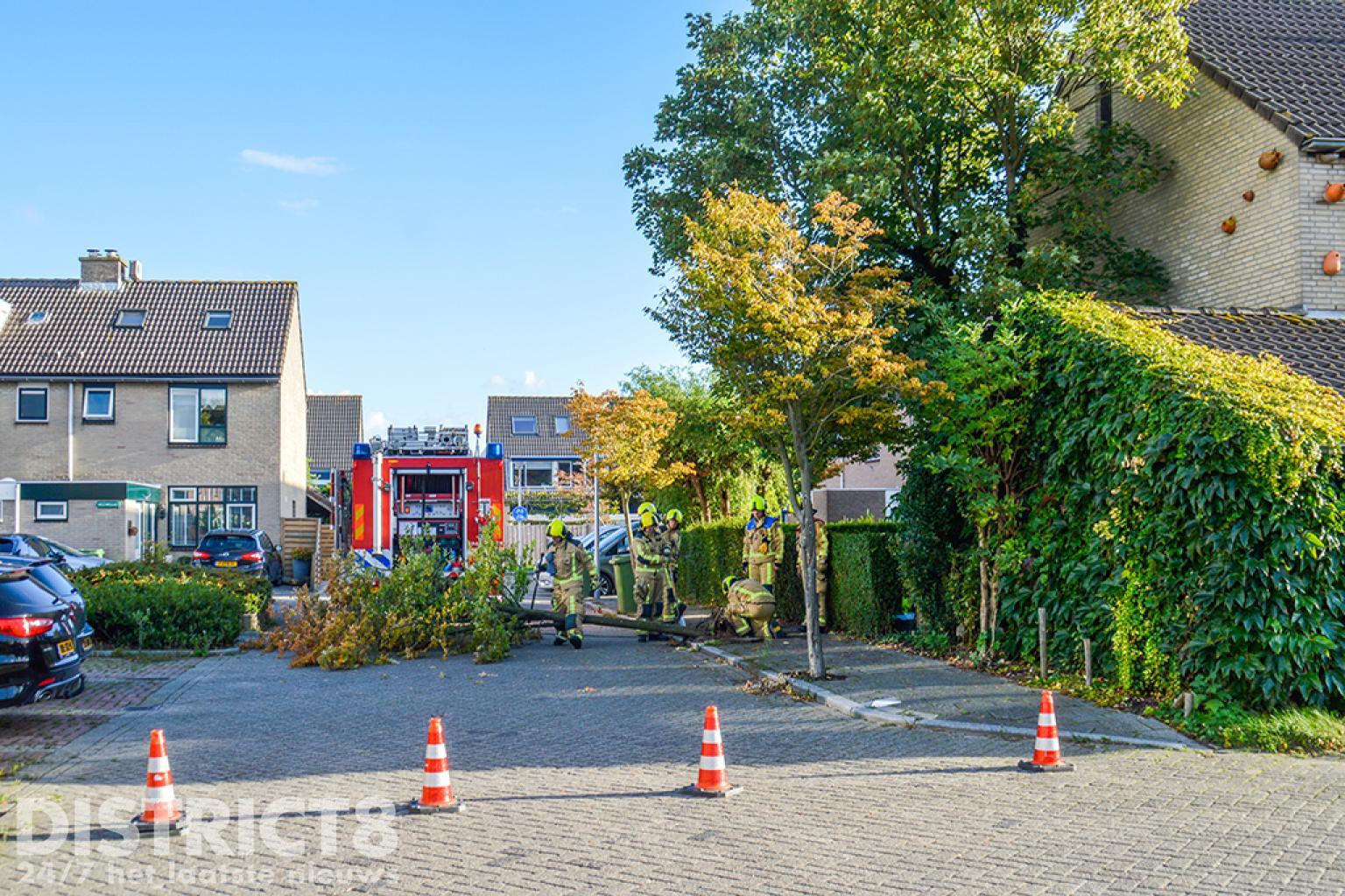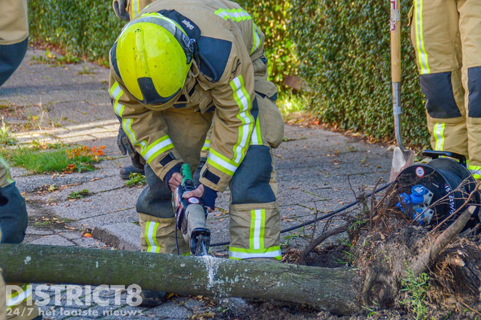 De brandweer heeft de boom omver getrokken en daarna in stukken gezaagd.