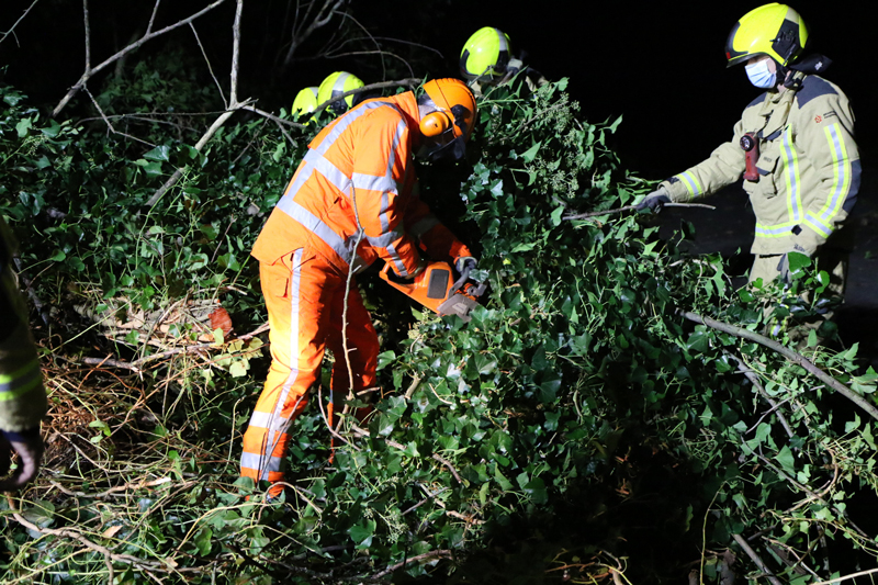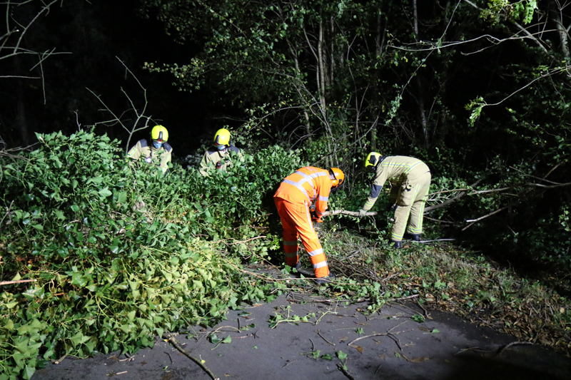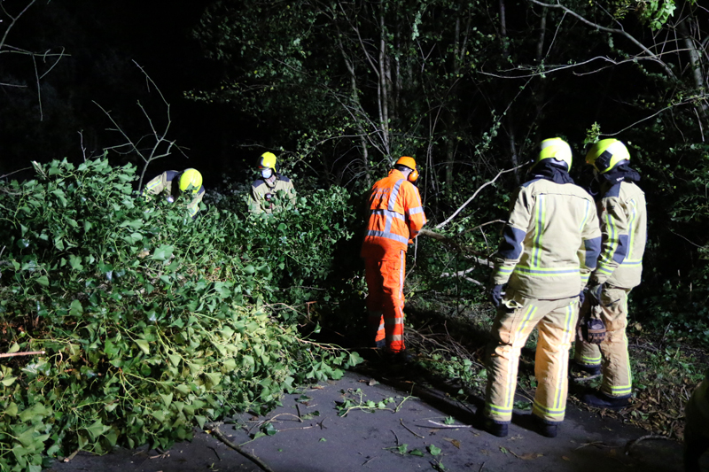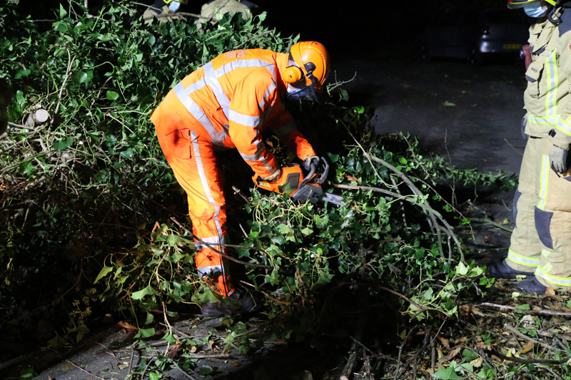 De brandweer kwam ter plaatse en heeft de boom in stukken gezaagd zodat de doorgang weer vrij is.