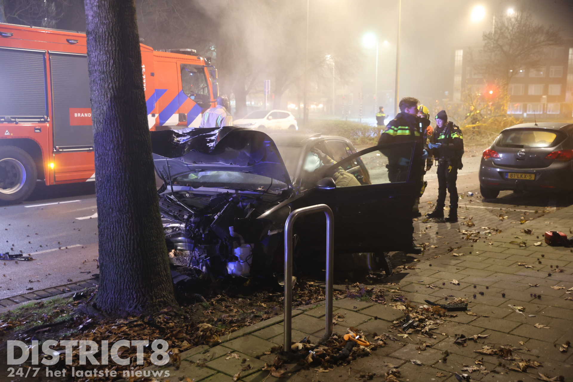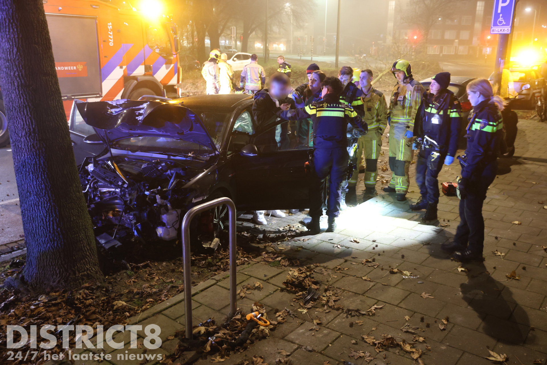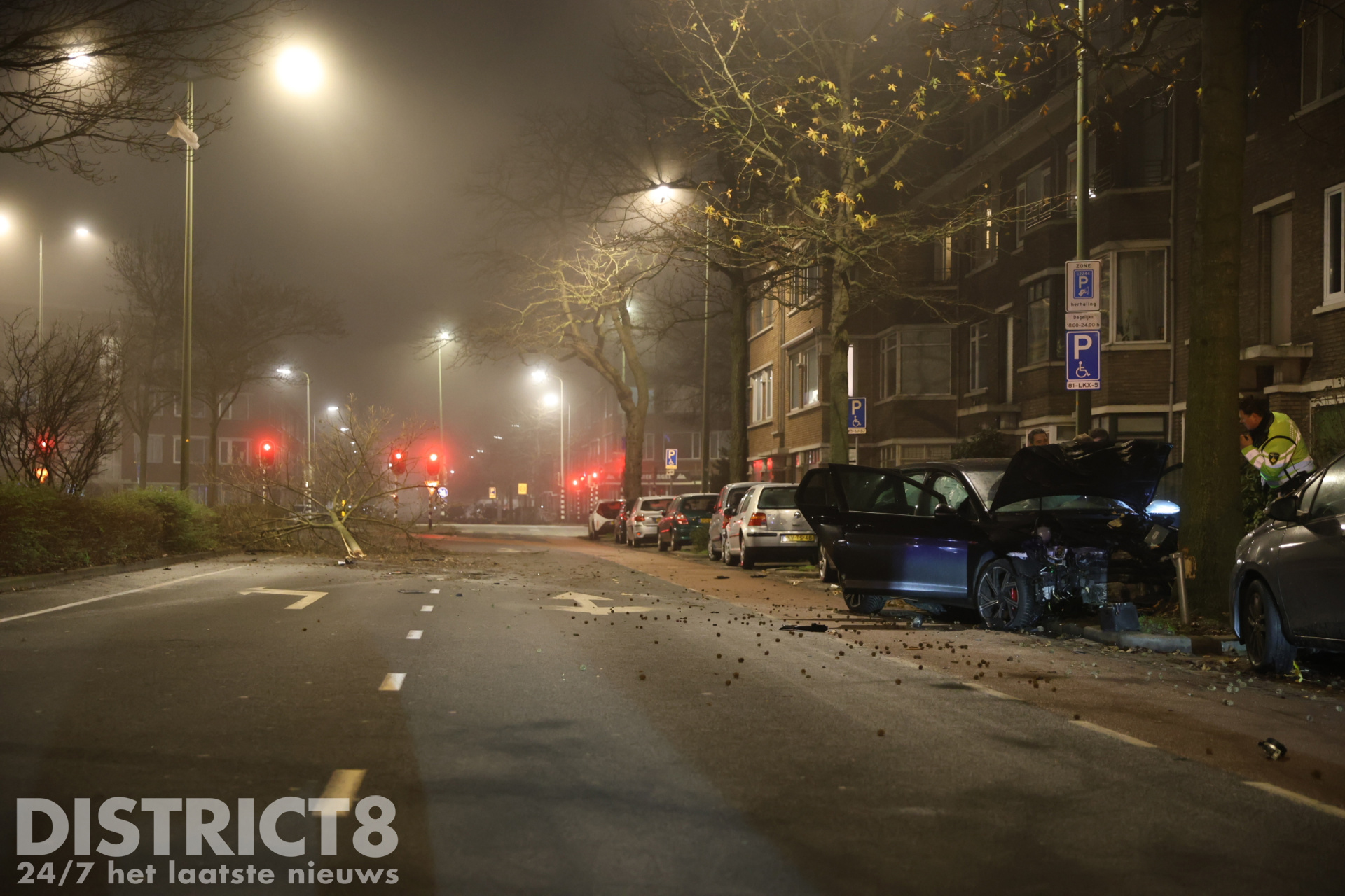 Boom uit de grond en gewonde bestuurder bij flinke aanrijding Vreeswijkstraat Den Haag