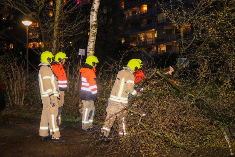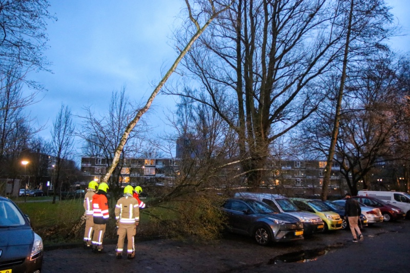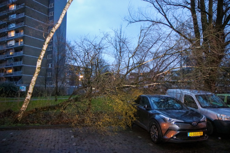 Schiedam – De maandag begon rustig de wind was gaan liggen maar nam in de middag weer flink toe. Twee bomen aan het Chopinplein werden hier het “slachtoffer” van.