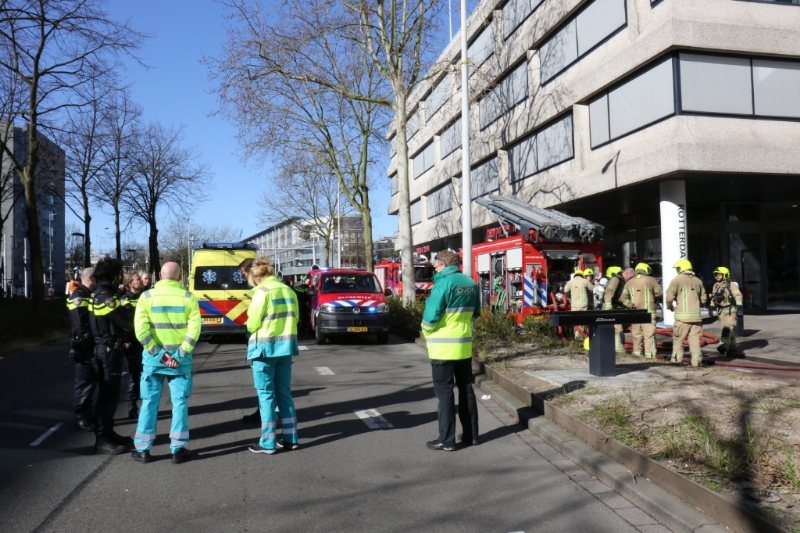 Rotterdam – Dinsdagochtend is er door een onbekende oorzaak brand uitgebroken bij een kantoorpand op de Westblaak.