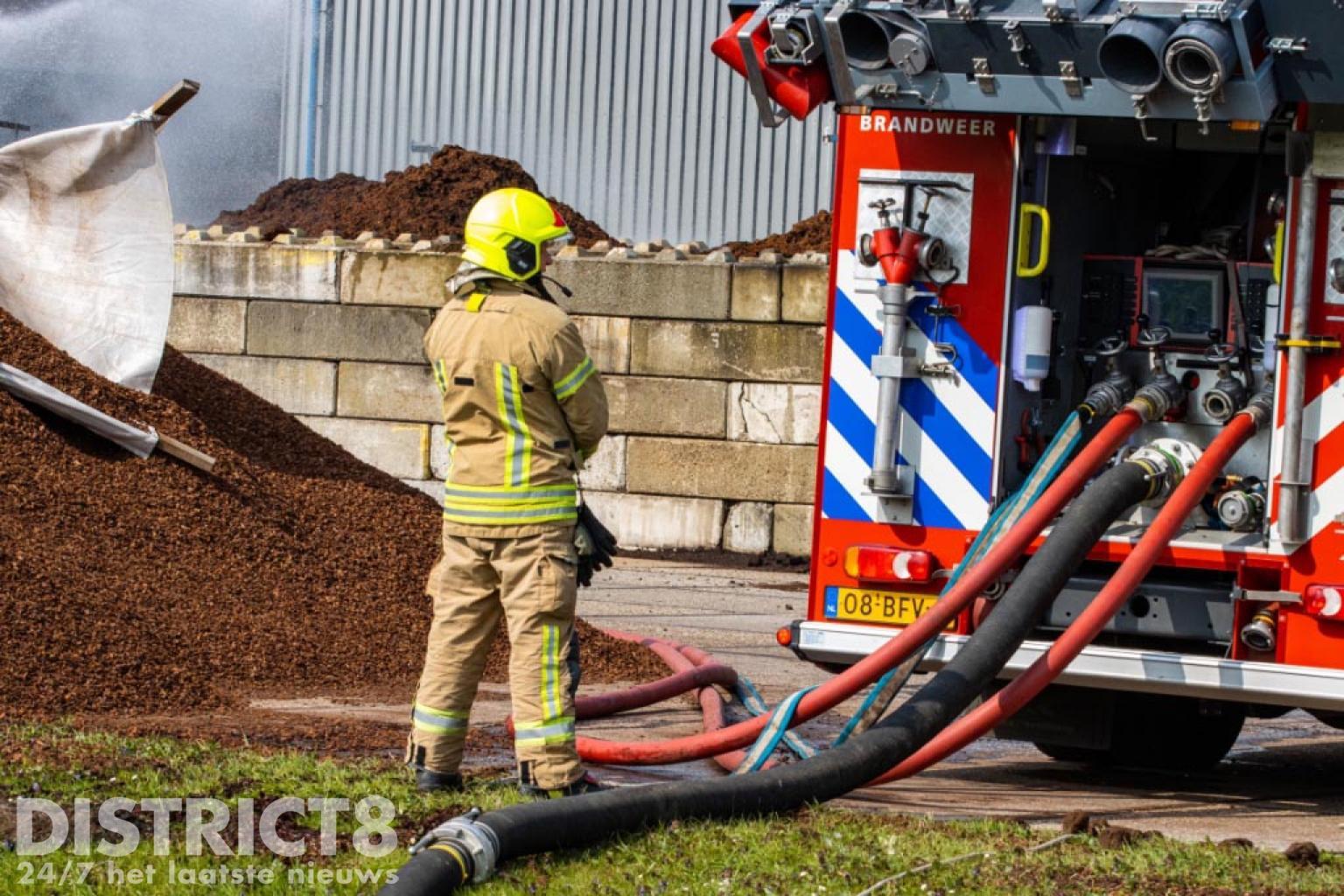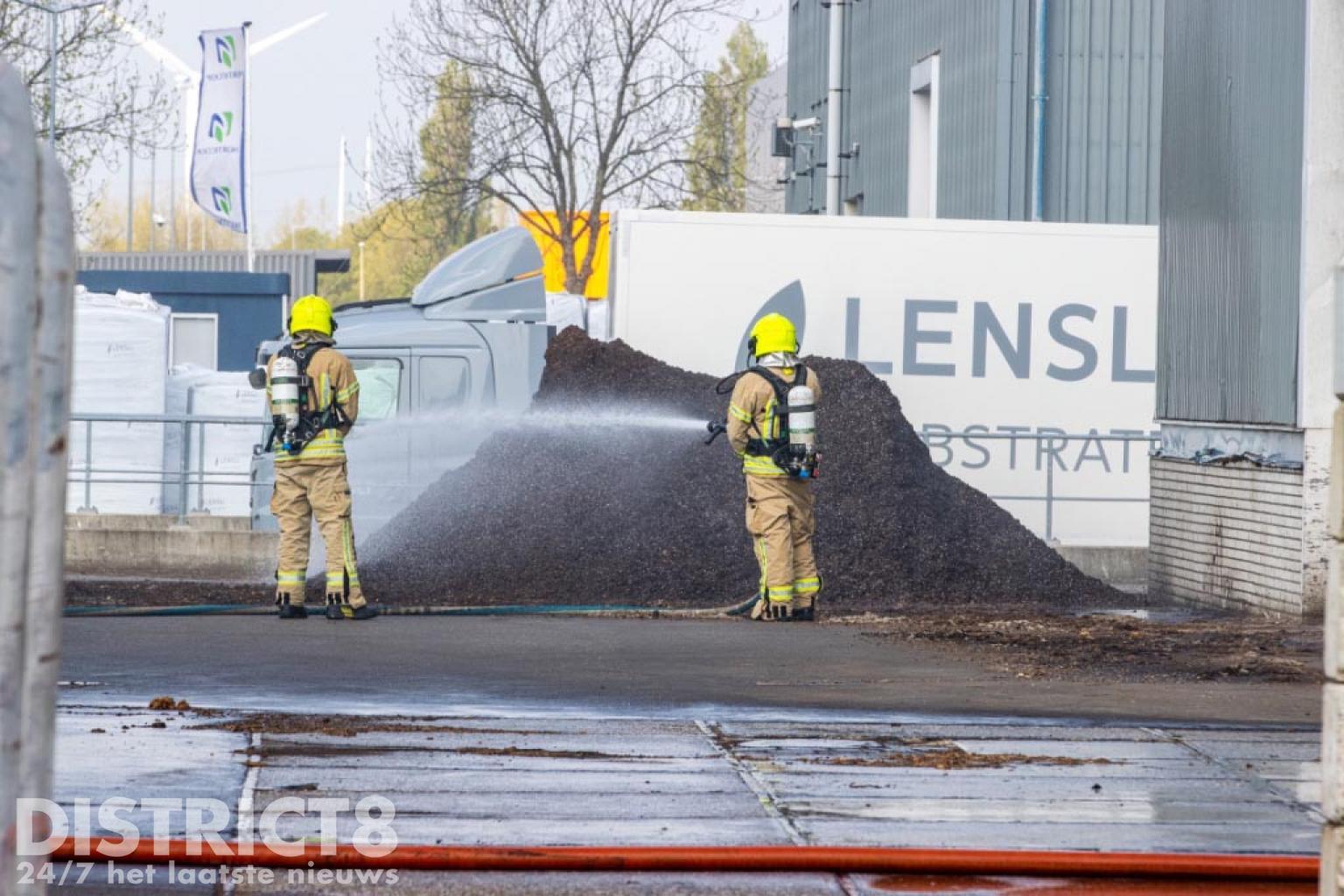 De brandweer was met meerdere voertuigen aanwezig. In een berg met potgrond was broei ontstaan. Brandweerlieden zijn bezig enige tijd bezig geweest met het blussen van de brand. Via onder andere een hoogwerker is de berg geblust.