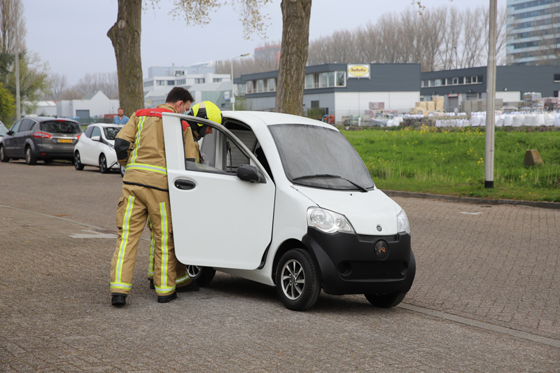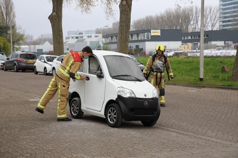 Even na half elf ontdekte een medewerker van de garage dat er rook uit de brommobiel kwam. Hij aarzelde geen seconde en pakte een brandblusser. Hierdoor kon hij het beginnende brandje snel blussen.