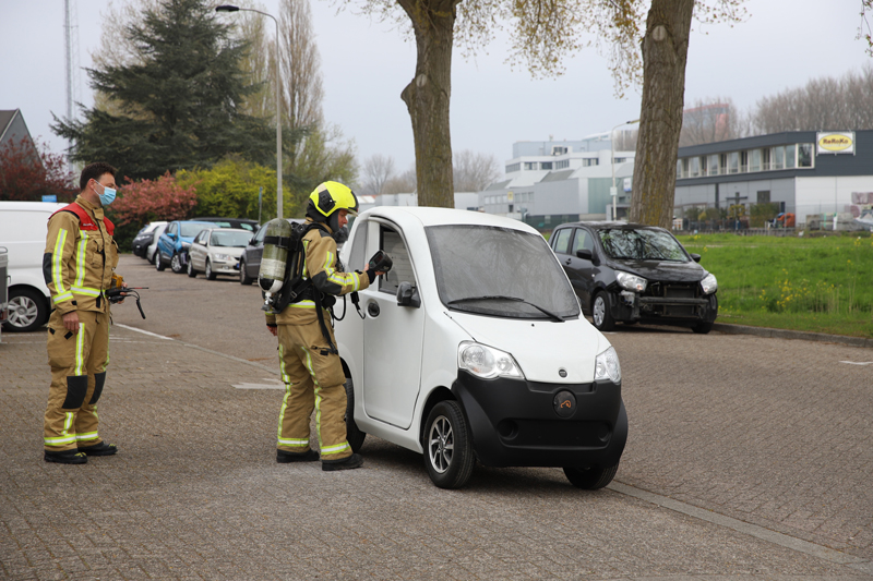 Delft – Op de Teslaweg in Delft heeft kort een brand gewoed in een brommobiel. Dit gebeurde voor de deur van de garage.