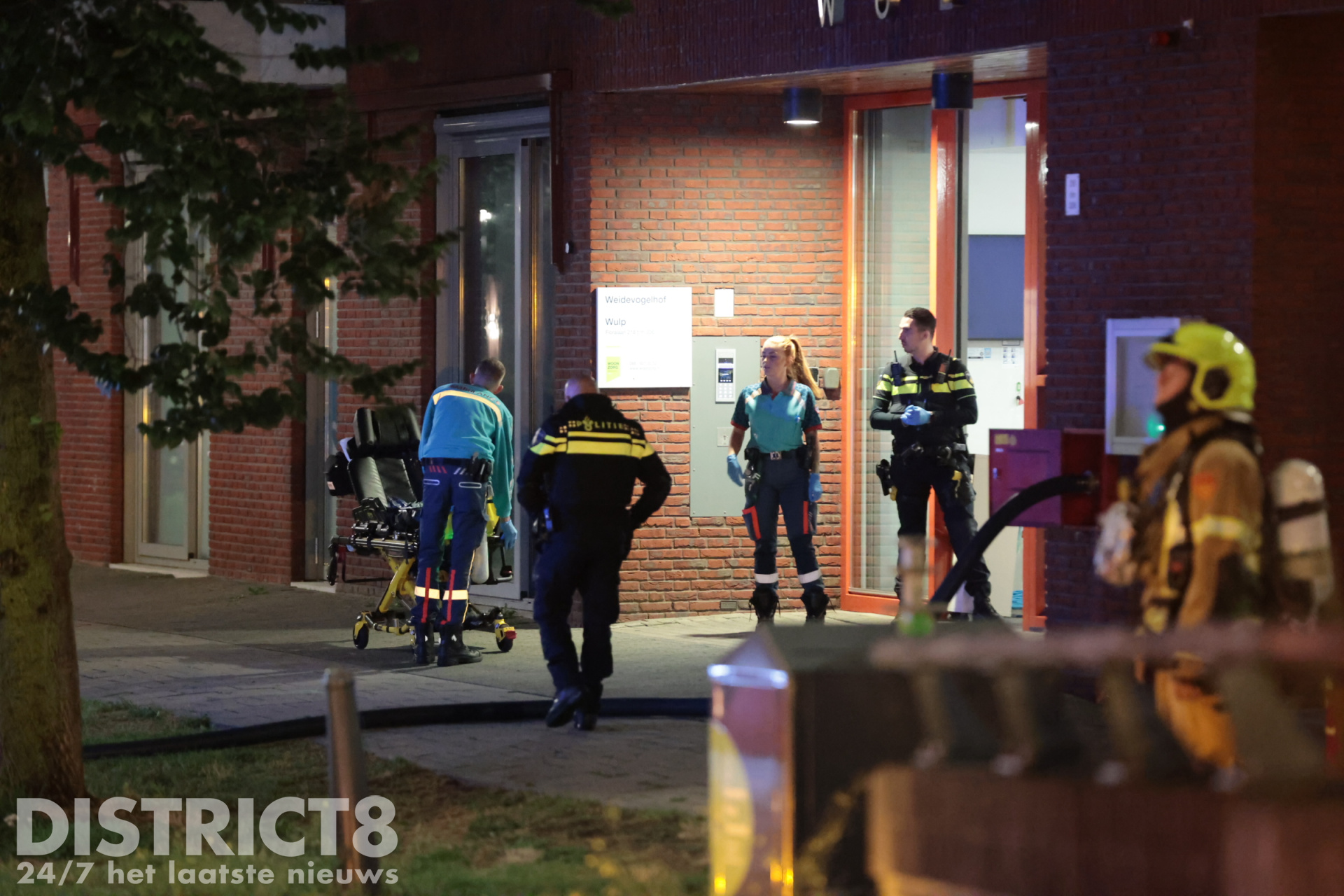 Naast de brandweer werd ook een ambulance met spoed opgeroepen. Een man is uit de woning gehaald en wordt door het ambulancepersoneel onderzocht op zijn verwondingen.