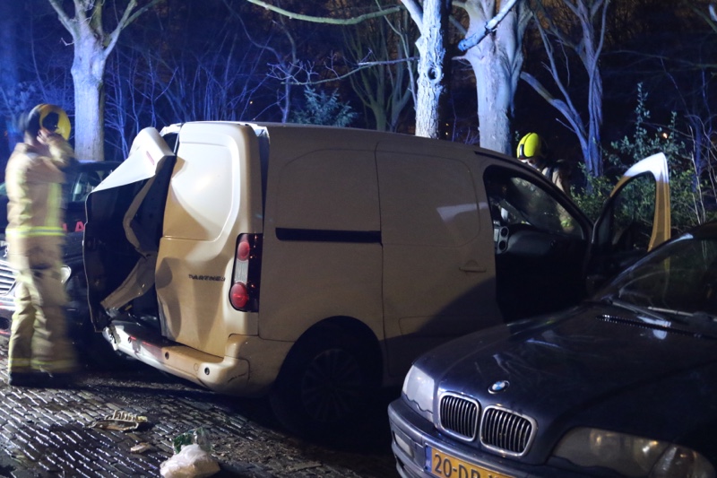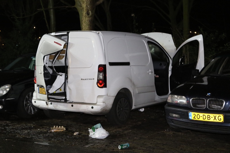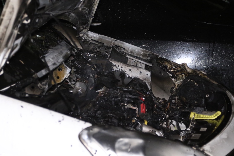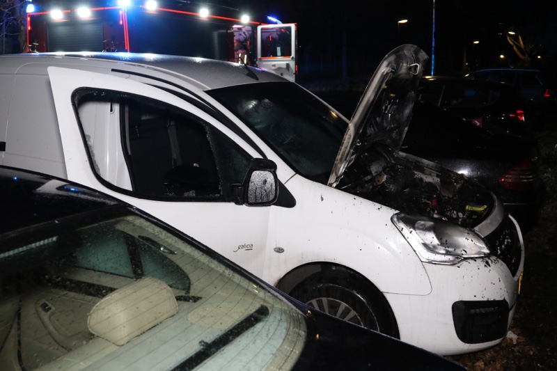 Brandstichting word niet uitgesloten. Een bergingsbedrijf zal het voertuig op halen.