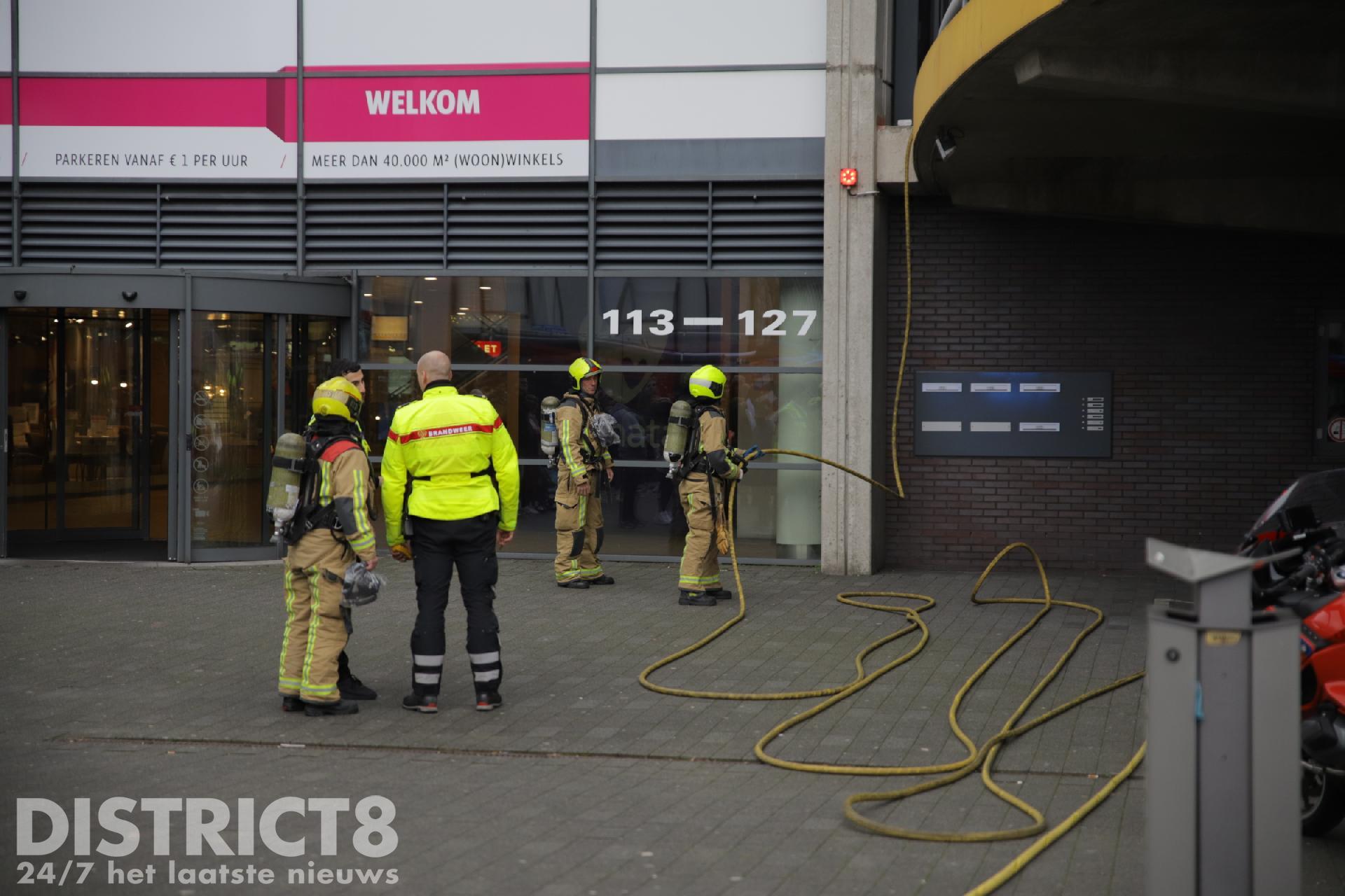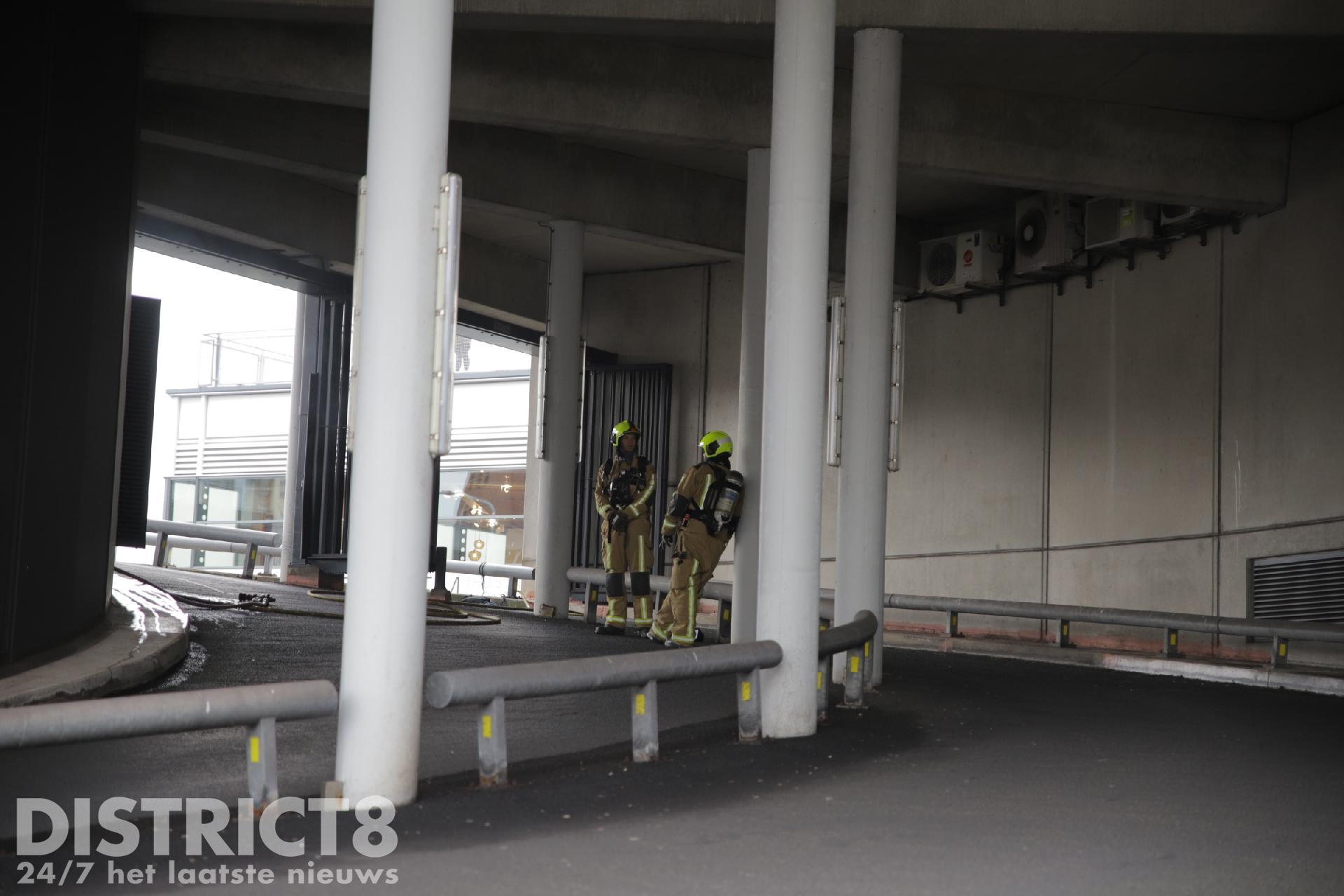 Er is geen rook te zien; wel is er een flinke brandgeur te ruiken. Een deel van het parkeerdek en de Megastores is uit voorzorg ontruimd. Het is vooralsnog onbekend wat er momenteel in brand staat.