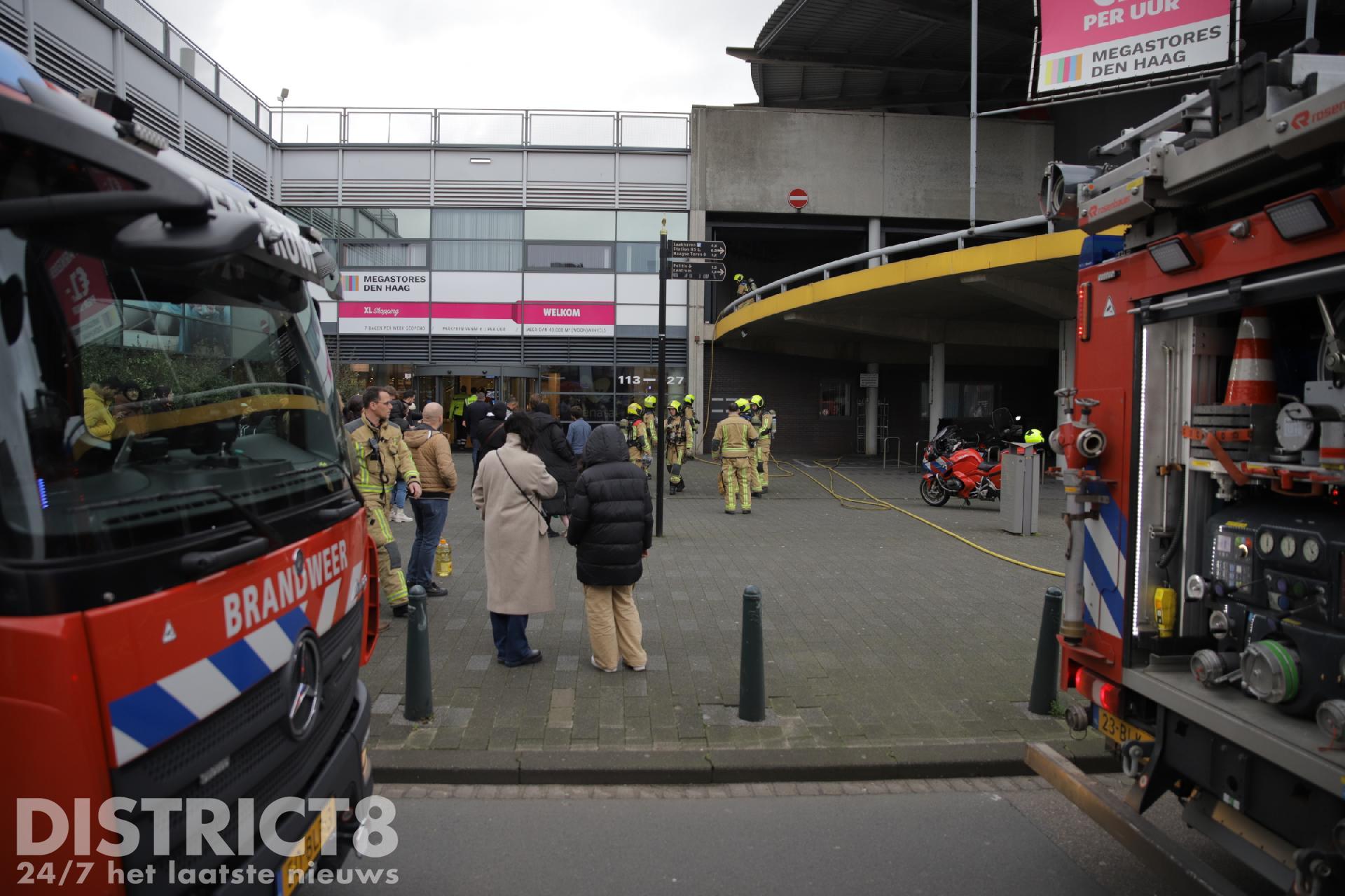 Den Haag – Donderdagmiddag 28 december zijn de brandweerlieden van kazernes Centrum en Laak uitgerukt voor een brand die woedt in de parkeergarage van de Megastores aan de Van der Kunstraat in Den Haag.