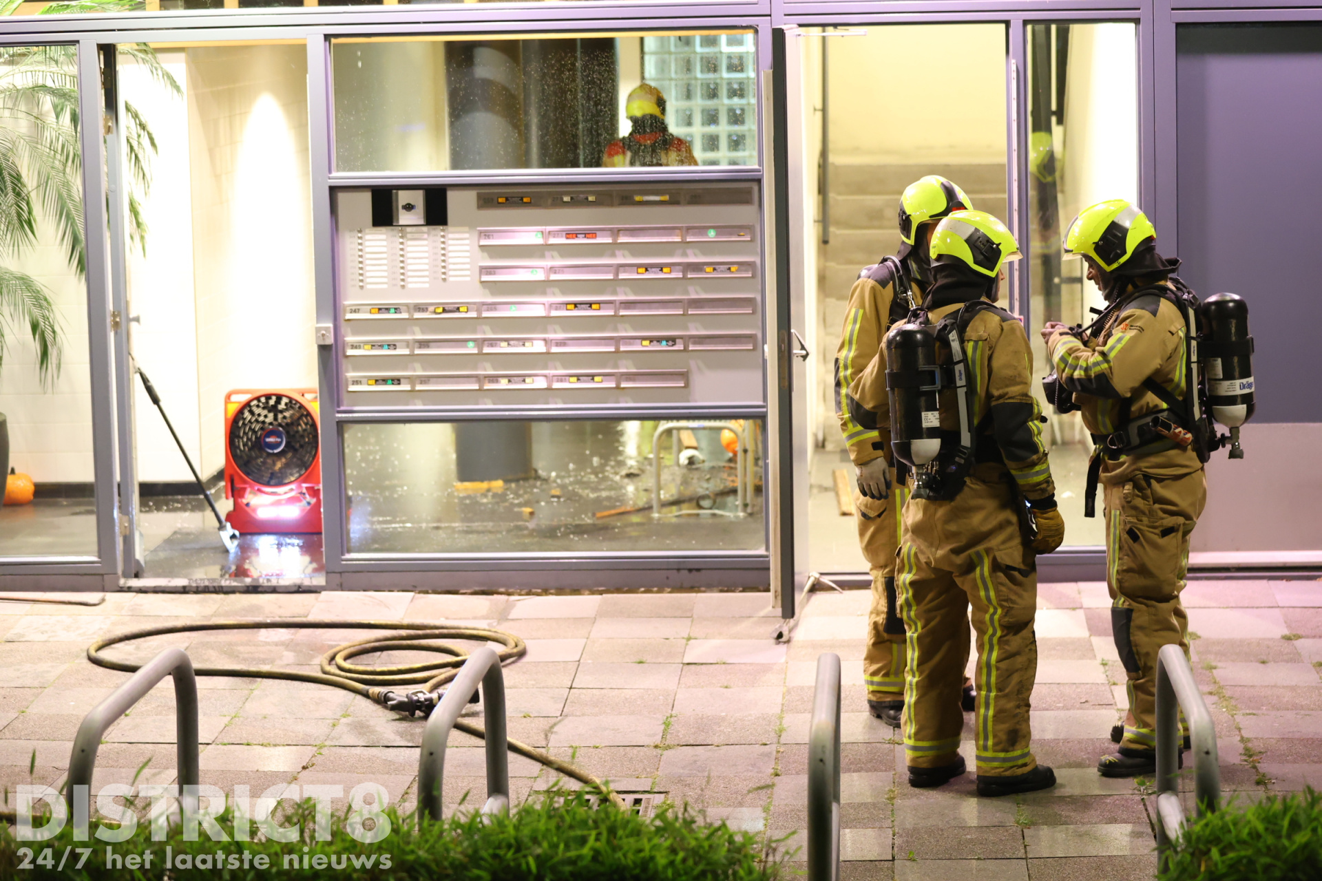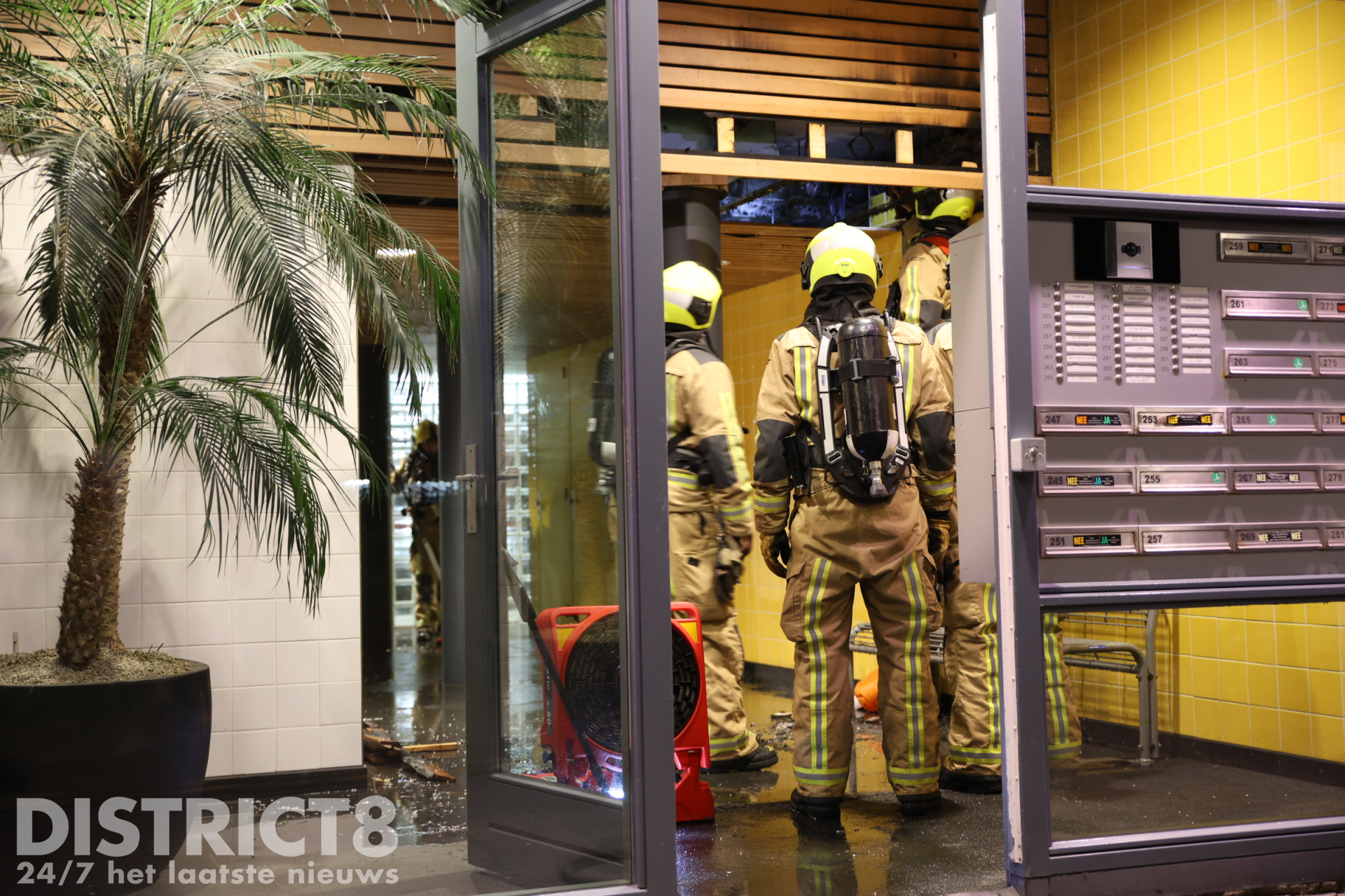 Den Haag – Dinsdagavond 13 mei is brand uitgebroken in het plafond van de entreehal van een flat aan het Klaverveld in Den Haag.
