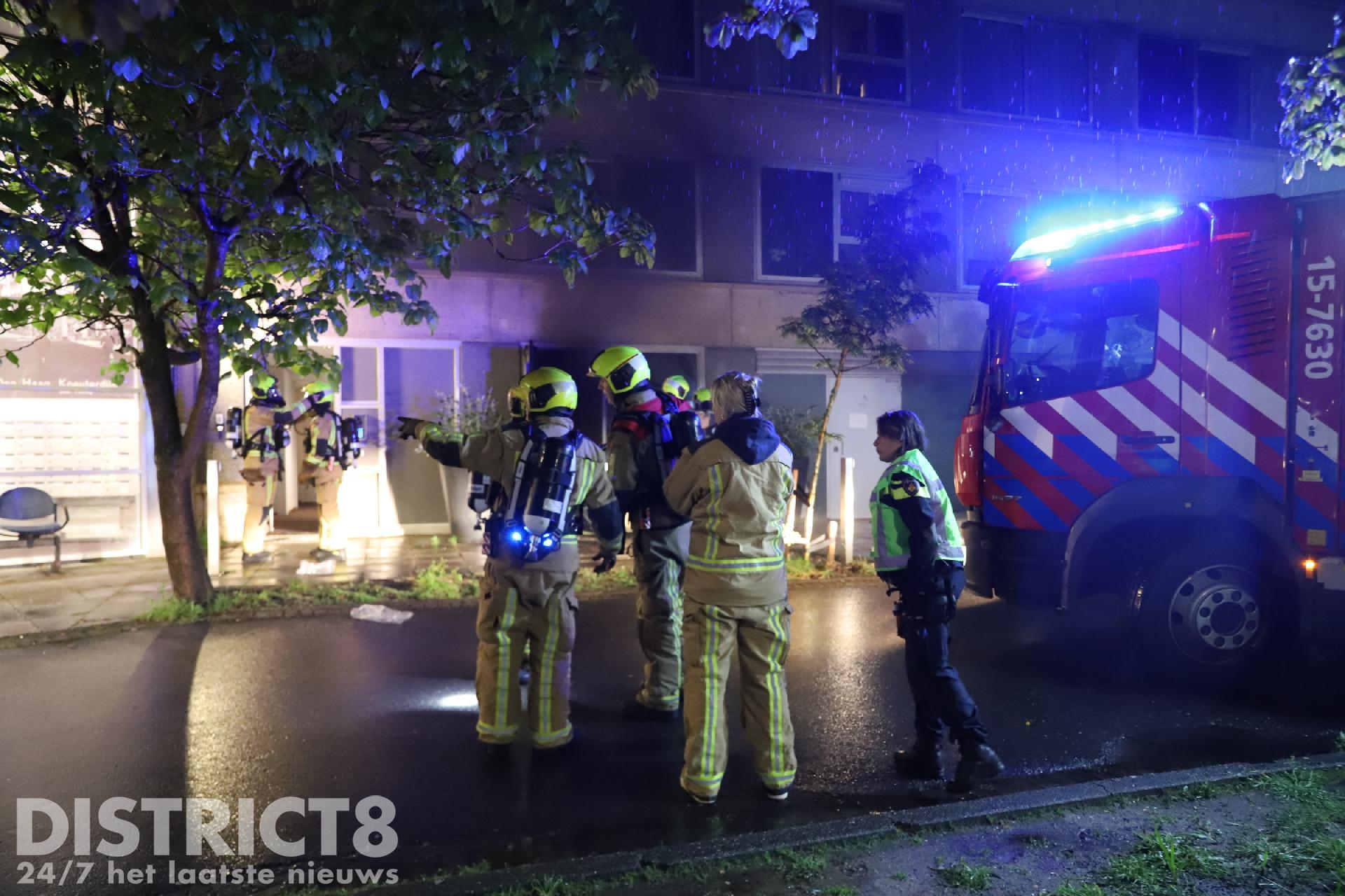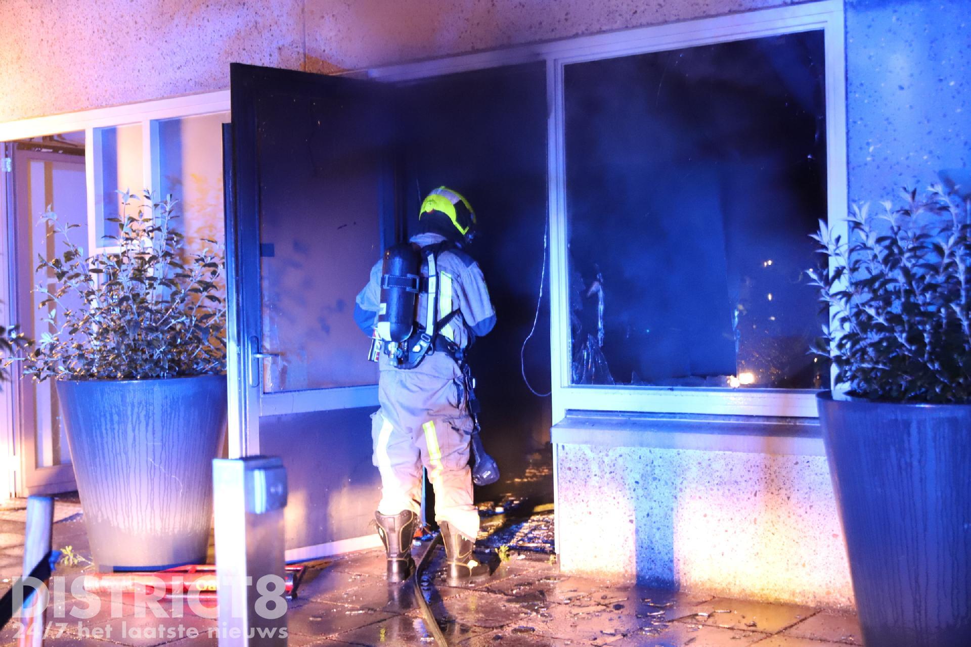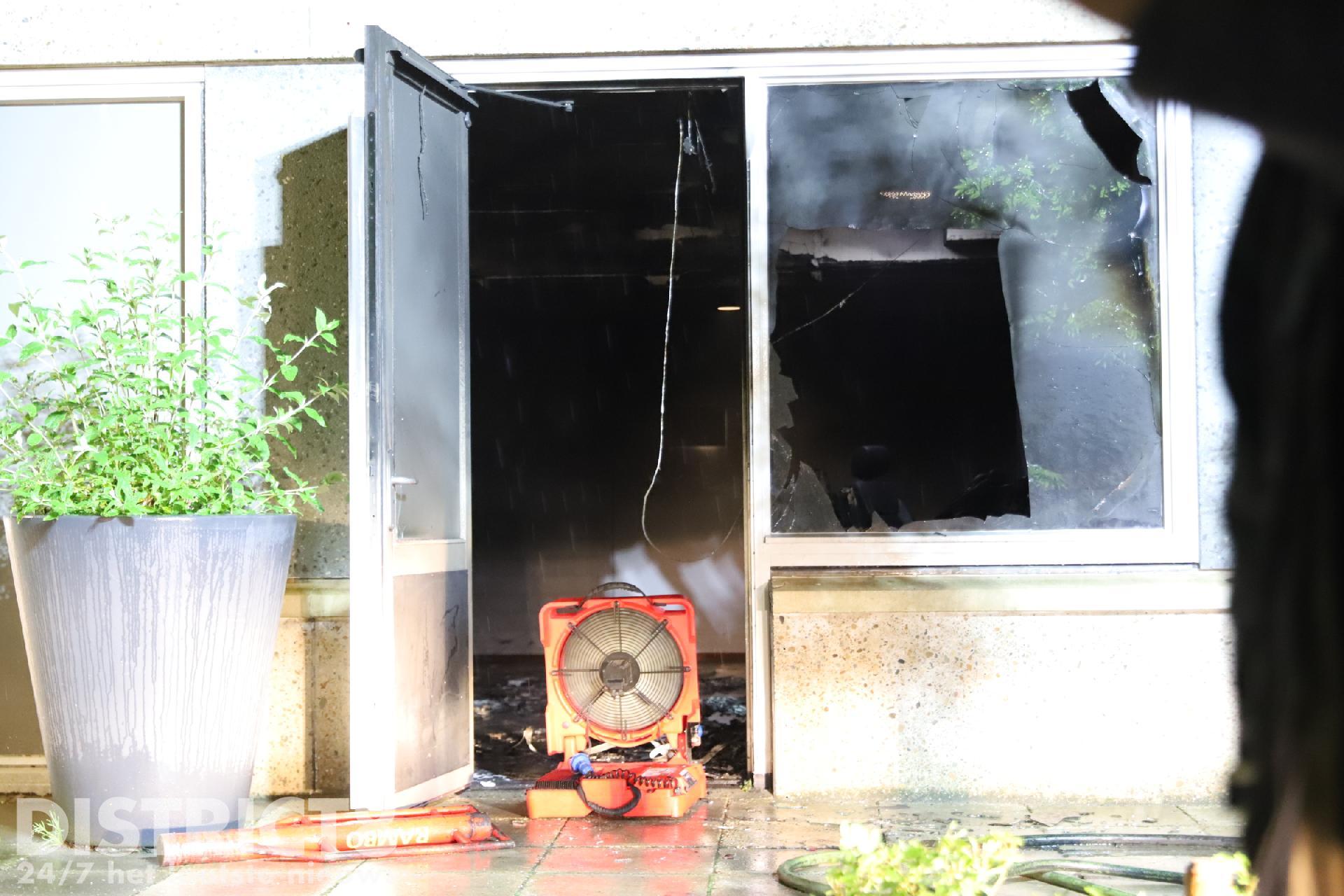 De brandweer werd eerst opgeroepen voor een buitenbrand. Eenmaal ter plaatse bleek er een flinke brand te woeden in een ruimte op de begane grond. De brandweerlieden hebben de deur moeten forceren om bij de brand te kunnen komen.