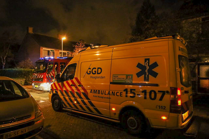 Een ambulance is ter plaatse gekomen om de bewoners na te kijken op rookinhalatie. Een vrouw en een kind zijn meegenomen naar het ziekenhuis.